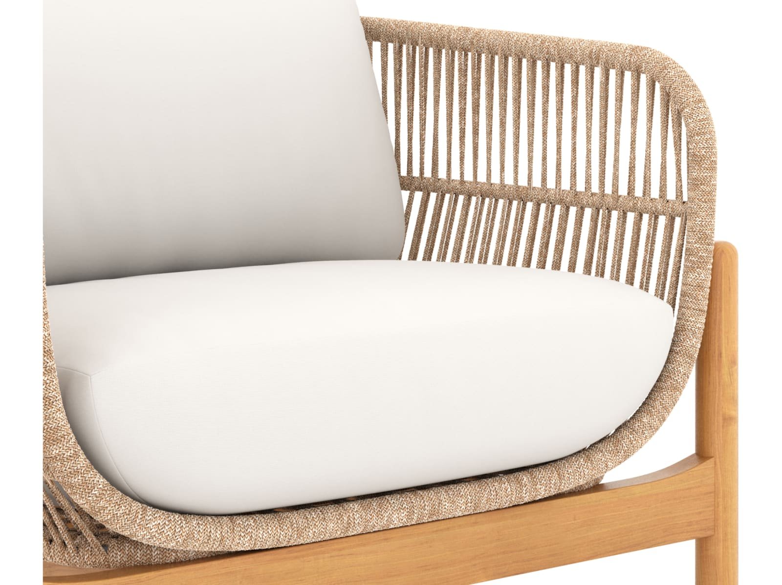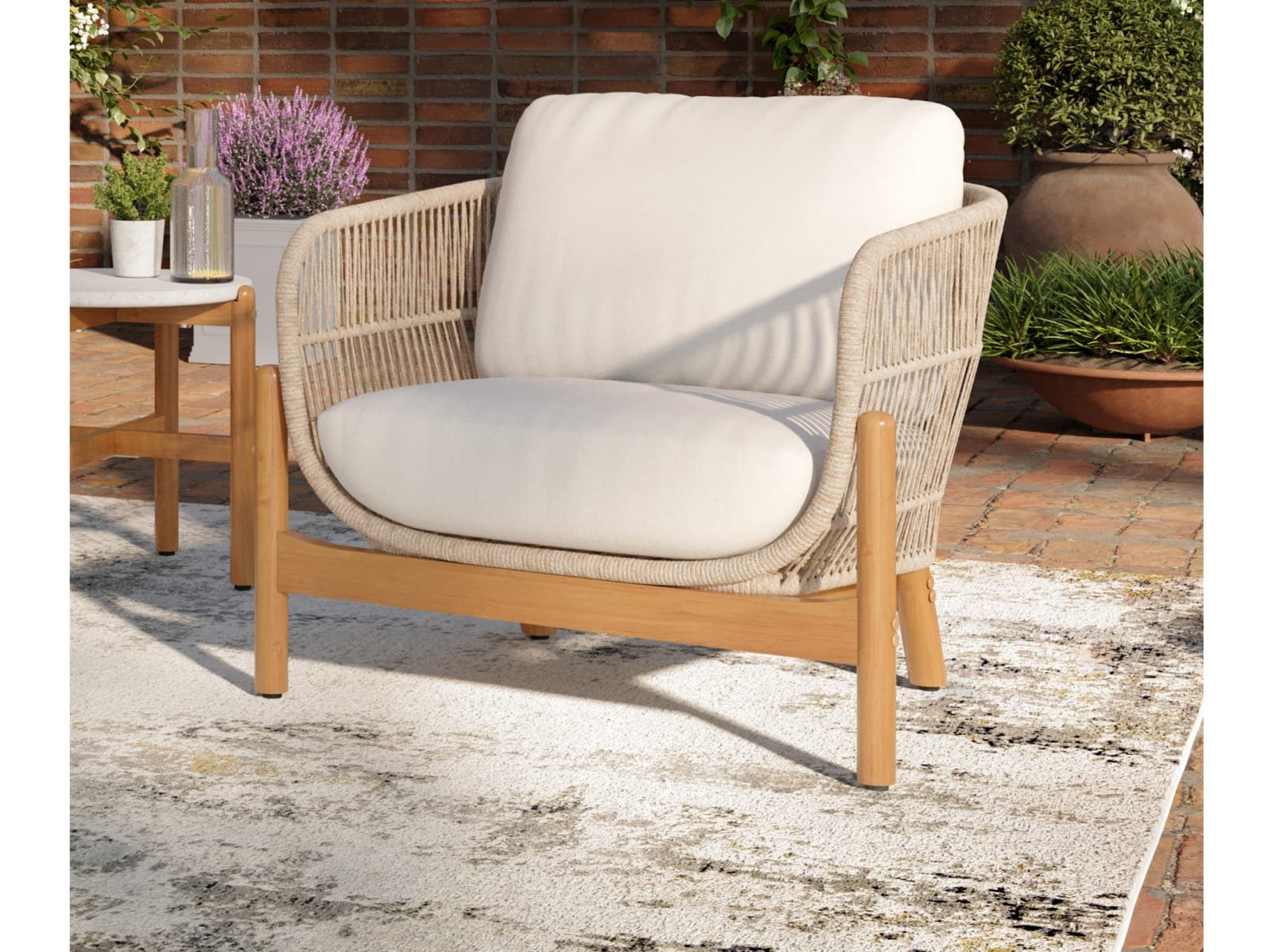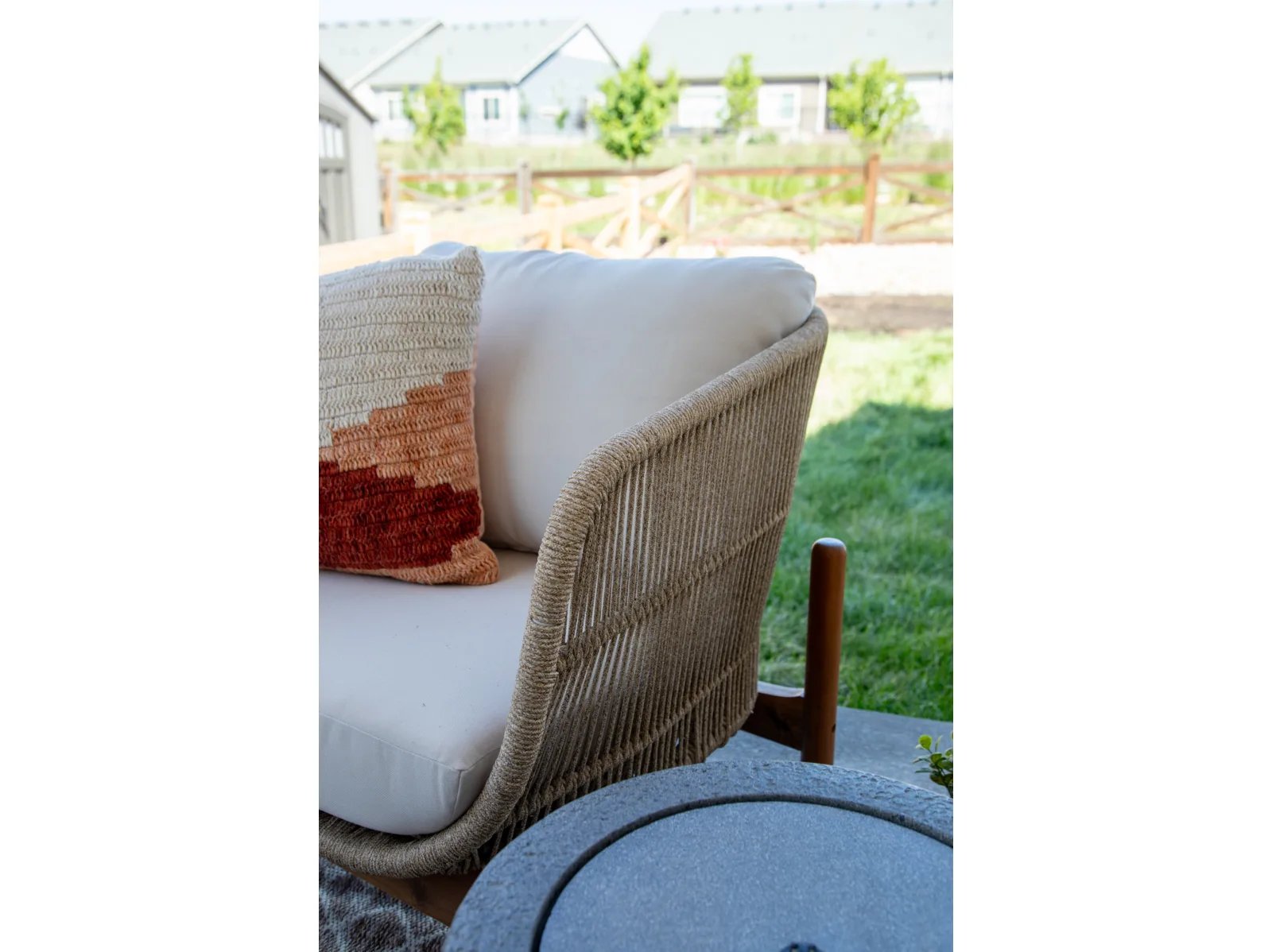 Introducing the Flowood Club Chair: a masterpiece of durability and comfort for your outdoor haven. Crafted from FSC Certified, Eco-Friendly Eucalyptus Solid Wood, this chair promises enduring quality. Its color-fast, weather-resistant fabric ensures vibrant hues that resist fading, mildew, and moisture, while the unique rope frame adds a touch of beachy charm. Crafted of ballistic nylon, the rope frame is abrasion and weather-resistant, providing unparalleled support. Sink into luxurious comfort with the high-density, 16cm foam cushions, offering resilient relaxation. With its relaxed transitional style, featuring light-colored rope frame and wood finishes complemented by natural linen fabric, this chair creates a welcoming outdoor retreat. Assembly is a breeze, taking approximately 10 minutes with easy-to-follow instructions provided. Elevate your outdoor lounging experience with the Flowood Club Chair, where durability meets casual elegance for unparalleled relaxation.