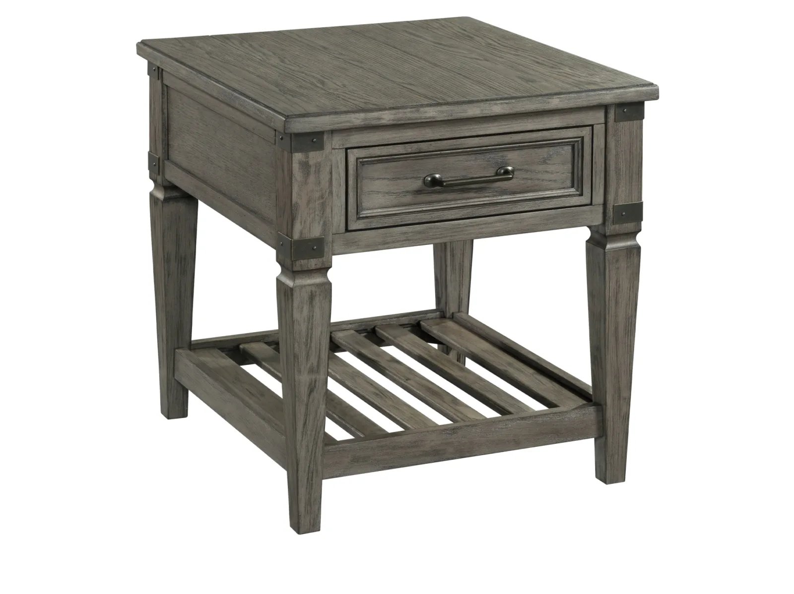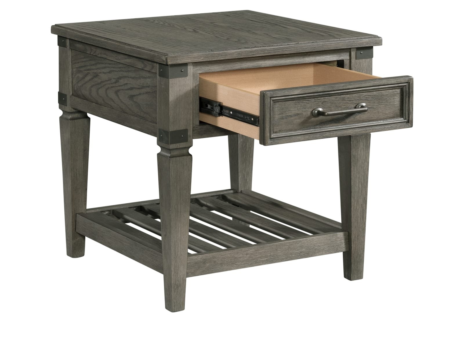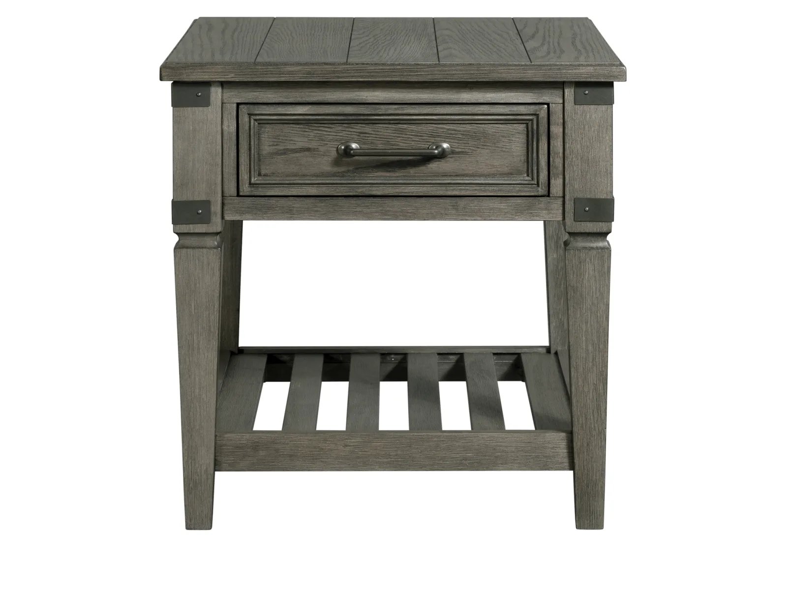 The Fowler Collection has a brushed pewter finish with wire brushed surfaces. Each piece features a metal corner accent and matching hardware.