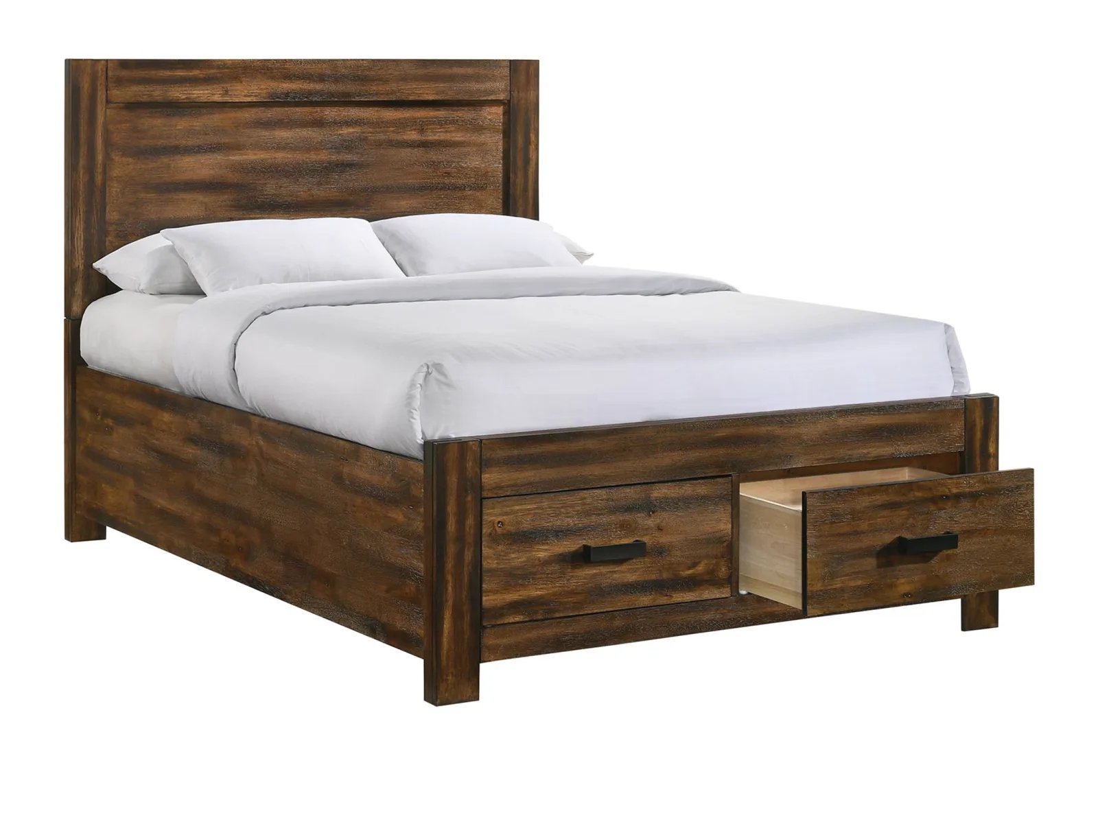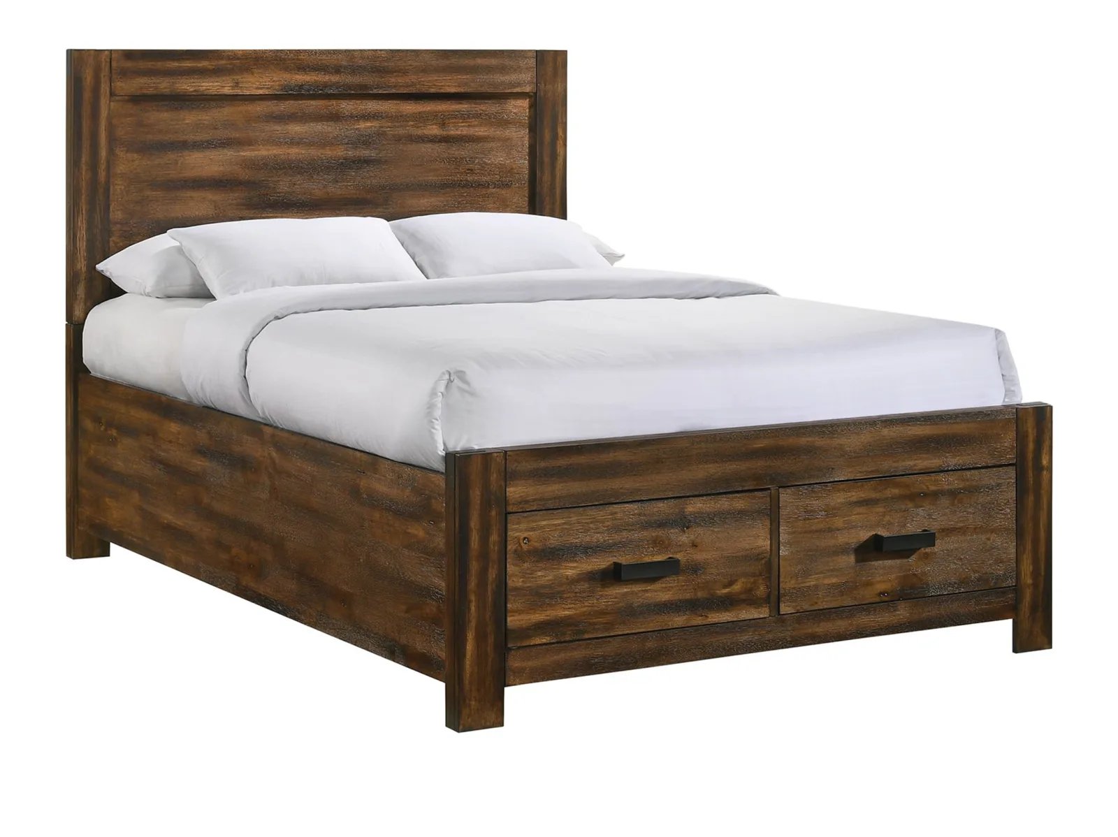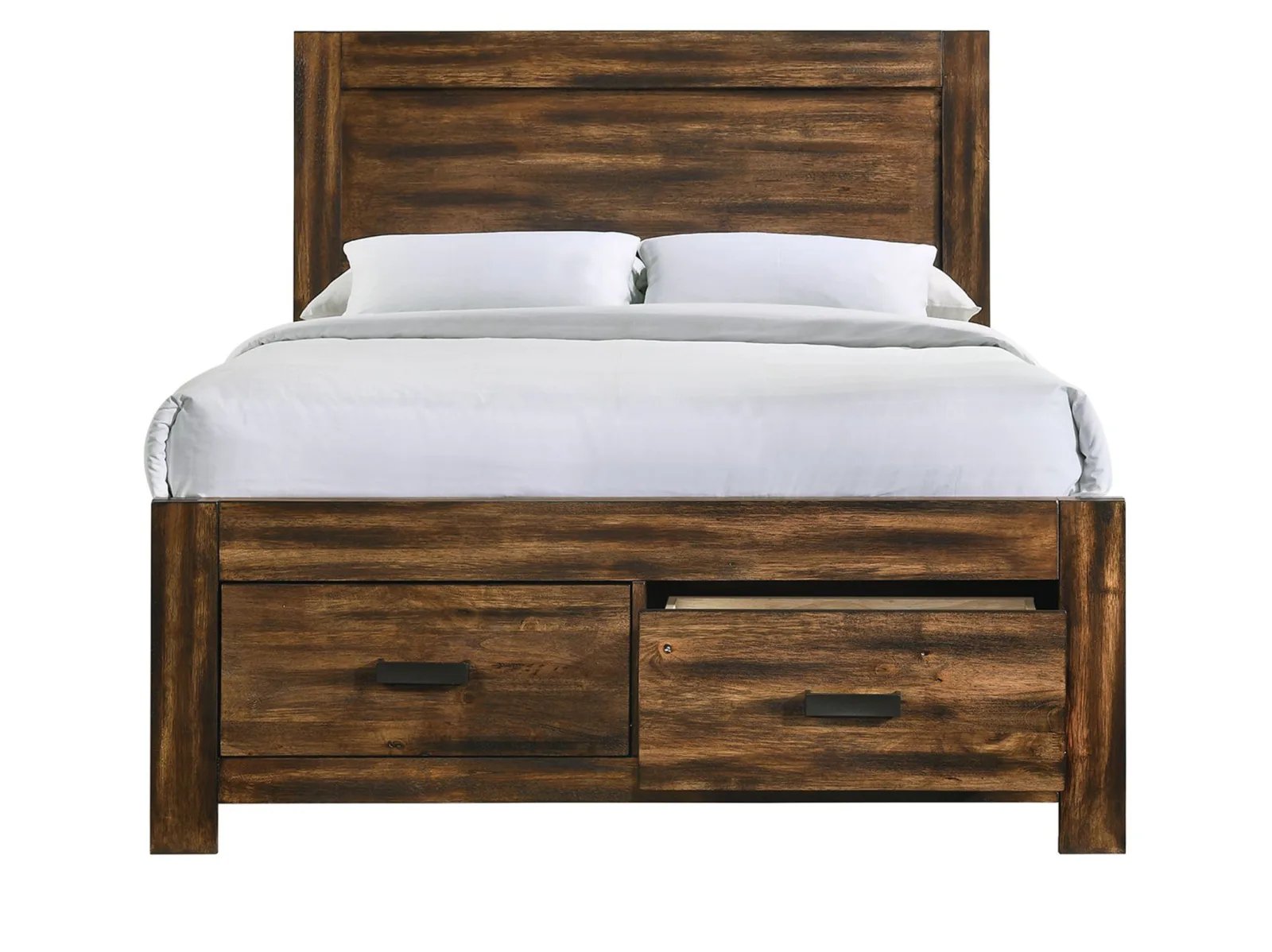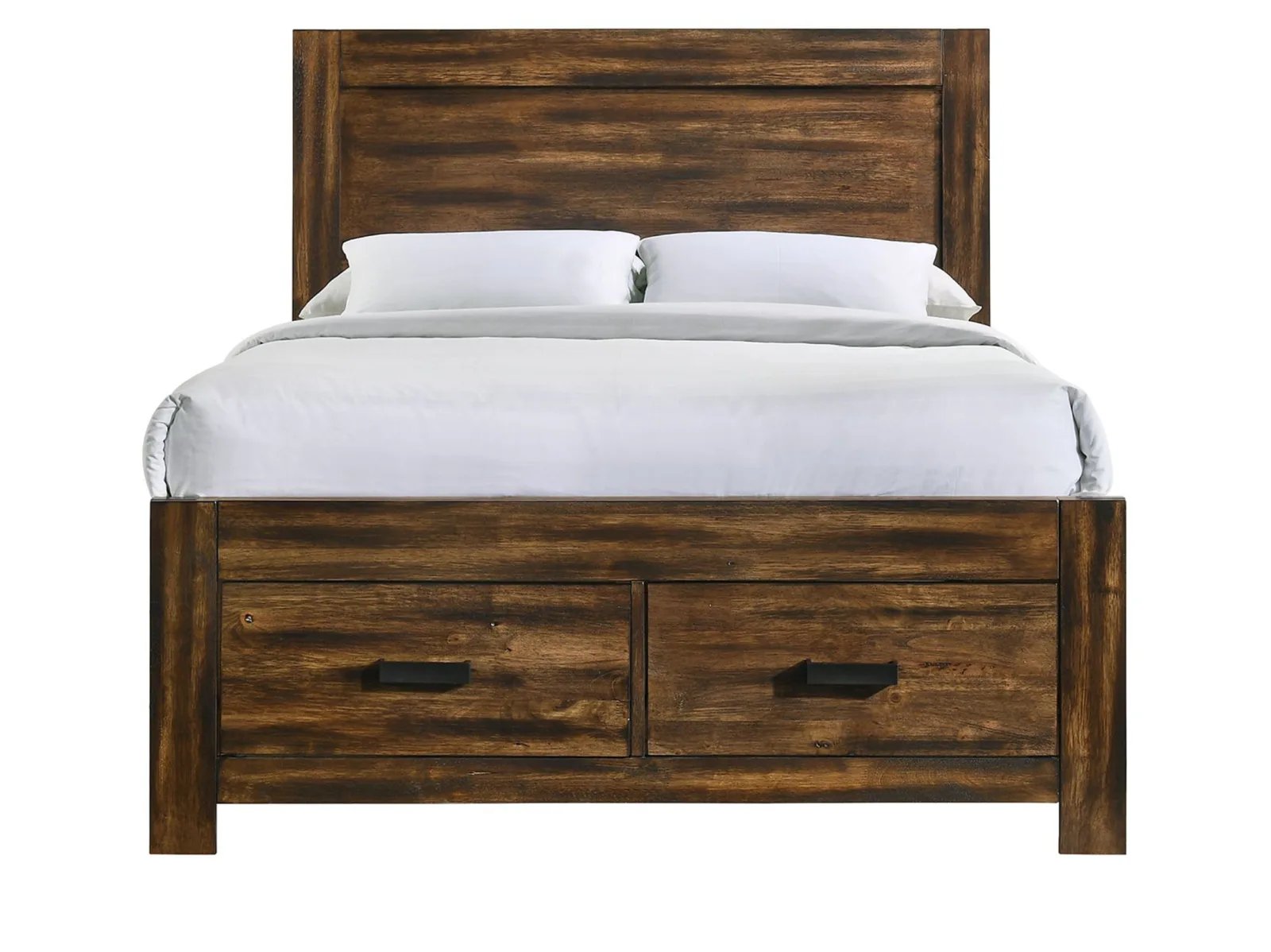 & Free ShippingThe Gatlinburg Platform Storage Bed gives your bedroom the warm and cozy look you are missing. With rich espresso knobs, clean lines and beautiful distressing throughout. Constructed in sturdy rubberwood and finished in a warm chestnut. The footboard features two storage drawers perfect for storing away your favorite blankets. Since this bed is a platform storage, no box spring is required.