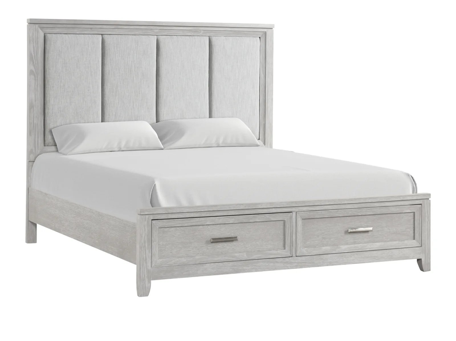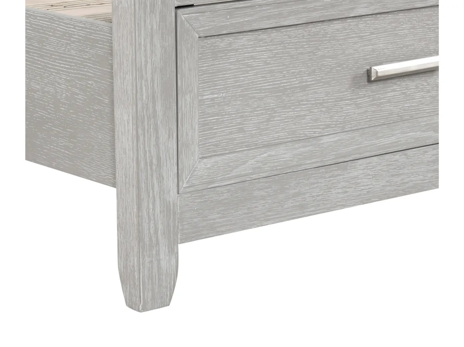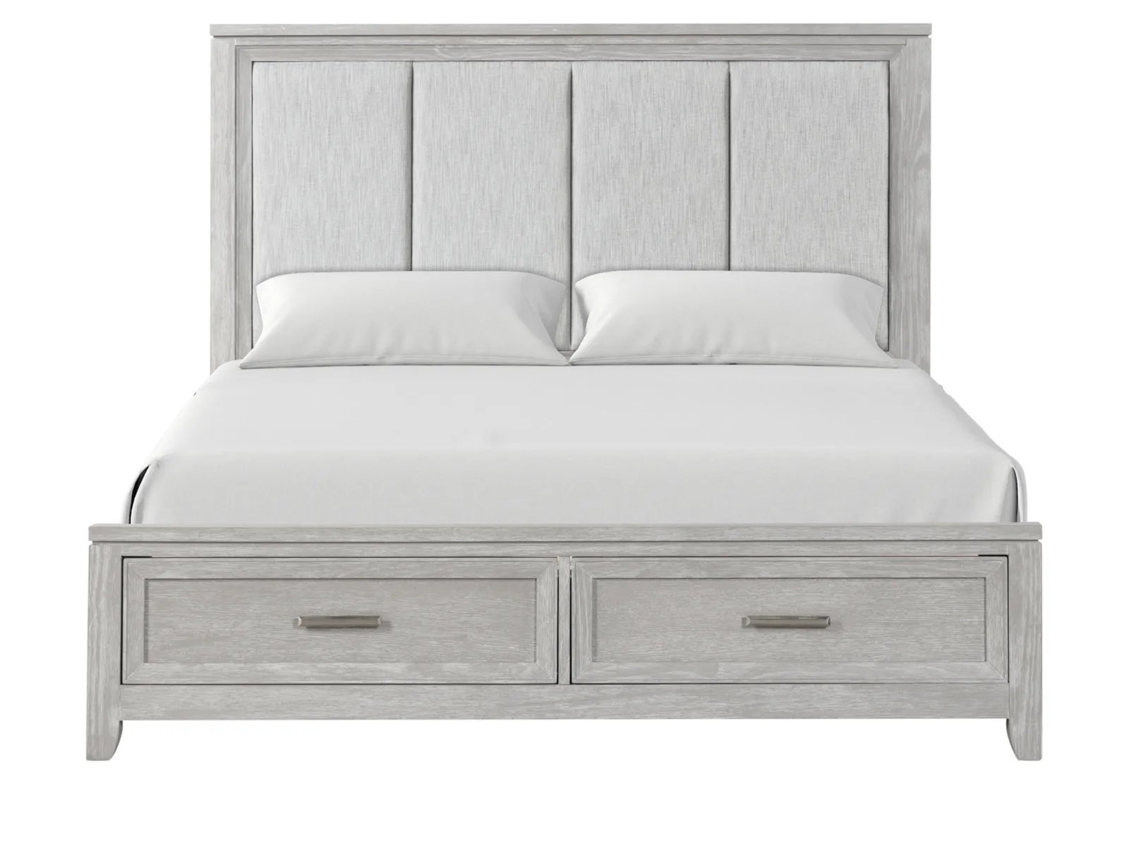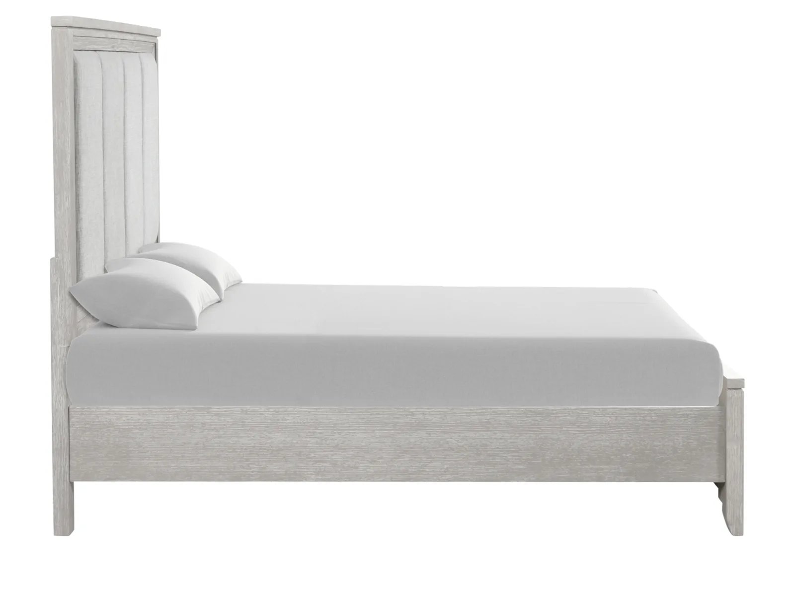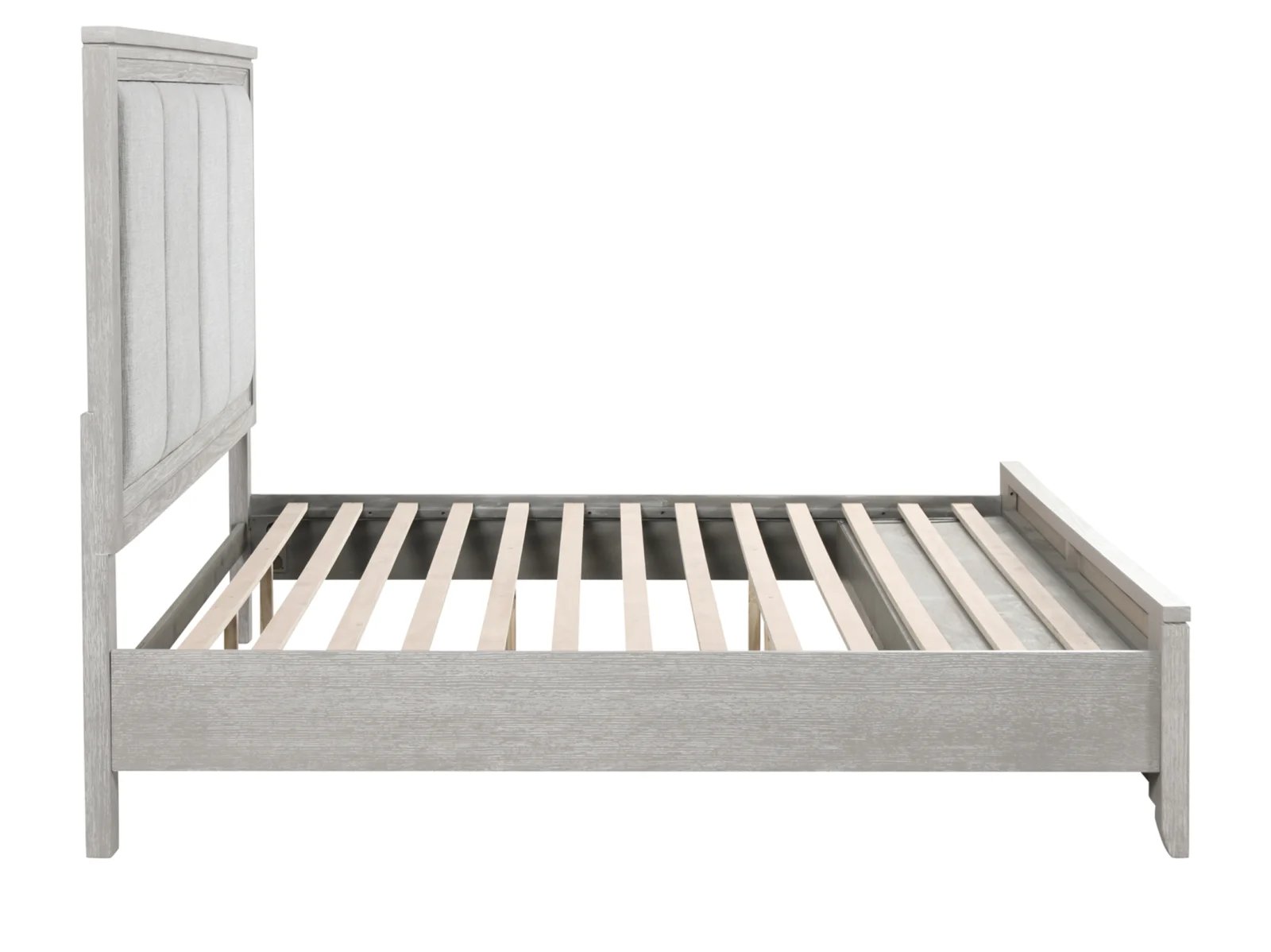 & Free ShippingCrafted from Acacia Solids, Manufactured Woods, and Oak Veneer, the Gayle Bed seamlessly combines the natural beauty of real wood with robust strength and stability. The multi-step finishing process, which includes wire brushing and white glazing, results in a light, clear mist gray finish that enhances the wood grains inherent allure. Picture frame moldings, elegantly tapered legs, and a cleanly tailored upholstered headrest make the Gayle Bed a versatile choice for both traditional and contemporary decors. Whether you’re curling up with a book or simply lounging, the soft 100% polyester gray padding ensures comfort and adds an upscale touch.