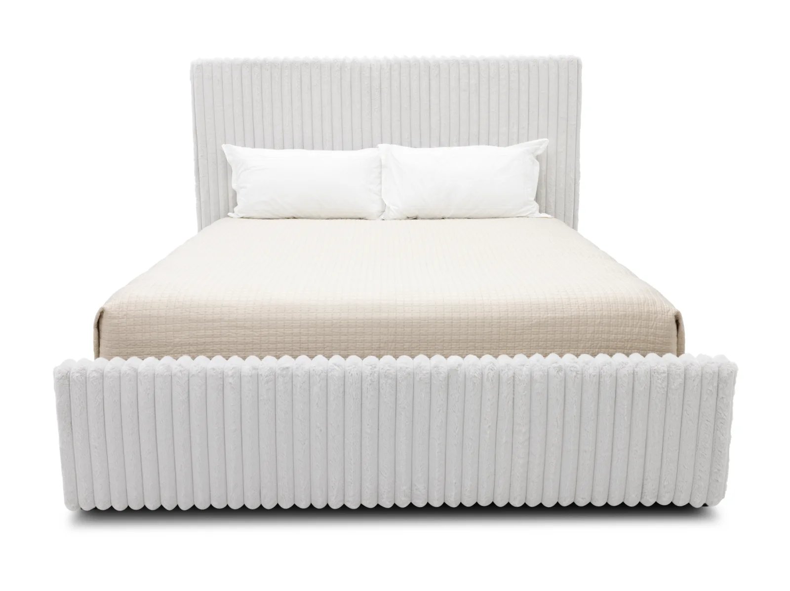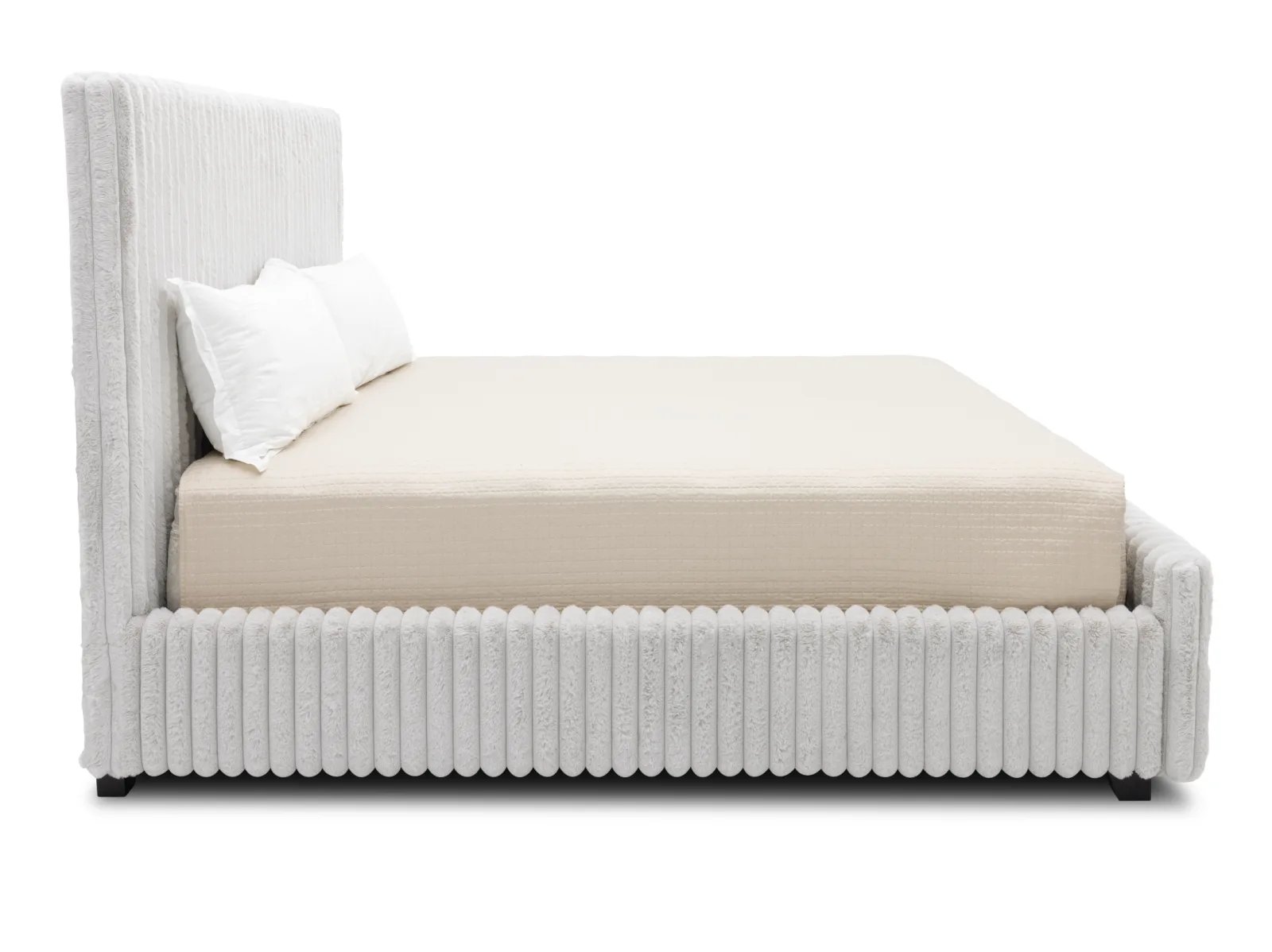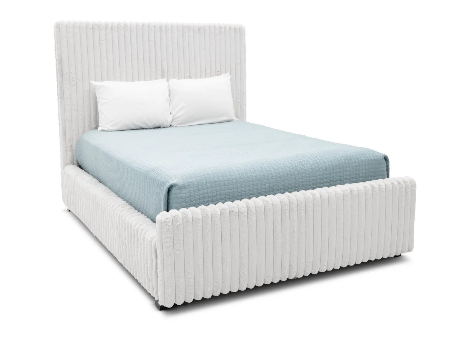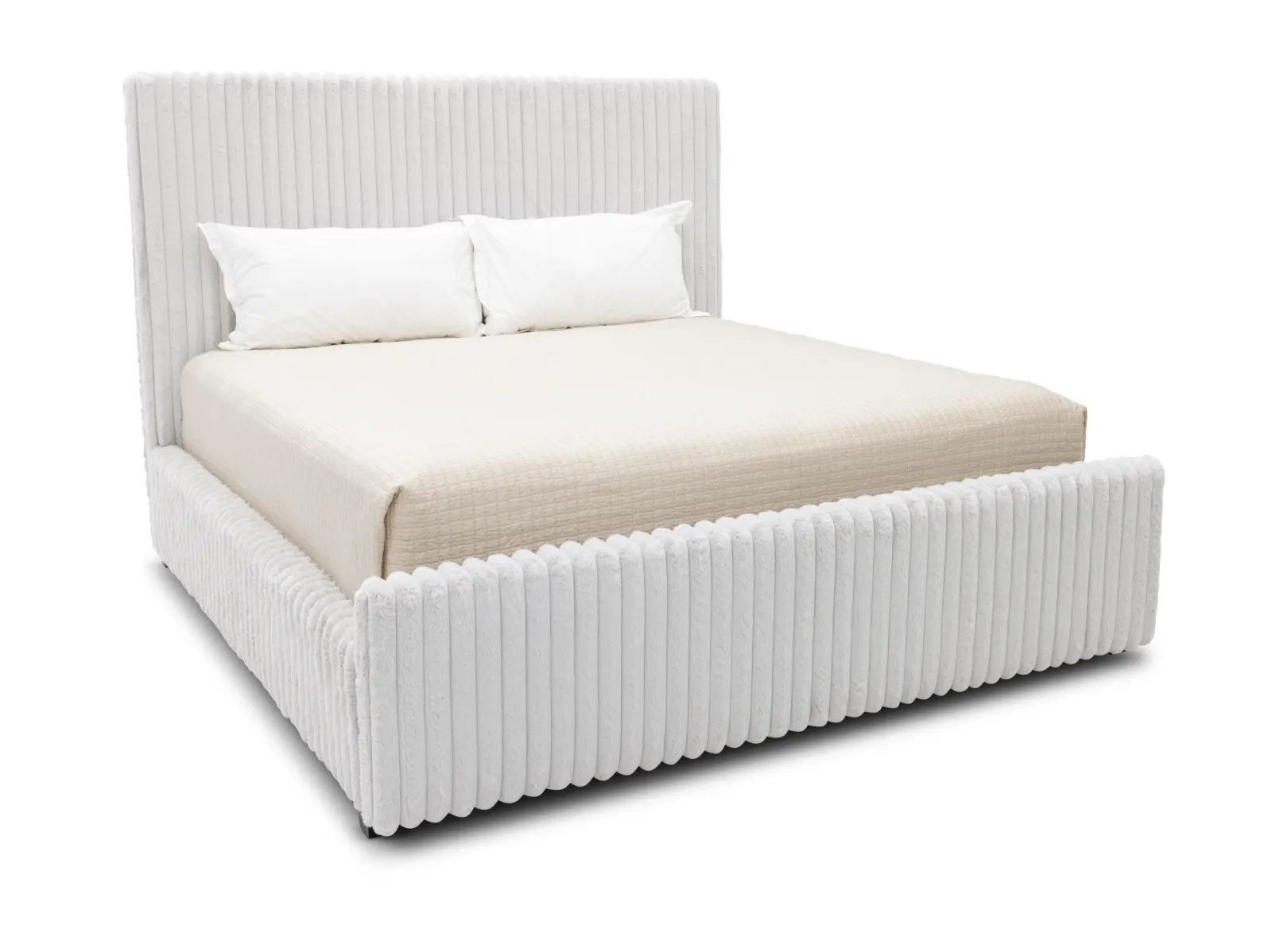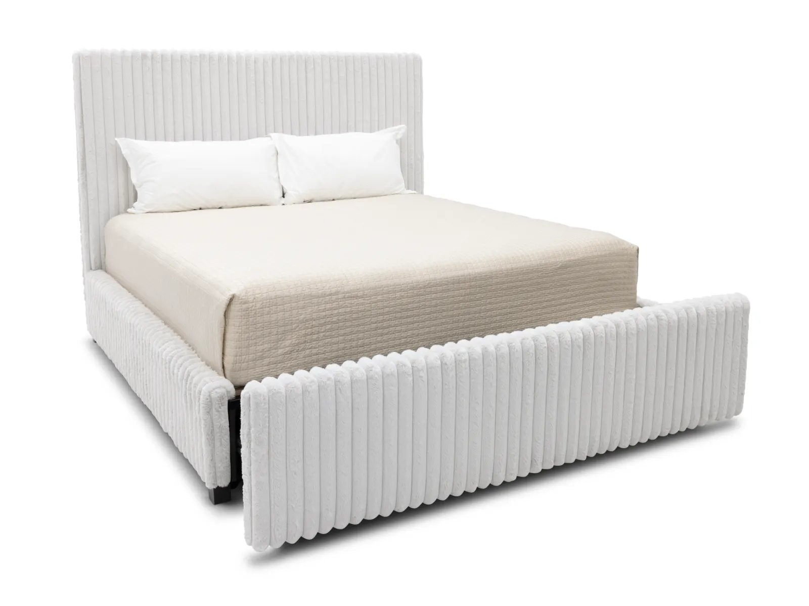 If you’re looking for a modern bed that’s sophisticated and dramatic, then you’ll love the Grace Upholstered Storage Bed! This beautiful bed and its tall headboard are fully-upholstered in a stunning white fabric with a wide corduroy texture – perfect for contemporary bedrooms – and its matching footboard even features a convenient pull-out storage space! With roomy, discreet storage and a look that can work in a variety of styles from boho to coastal, the Grace Upholstered Storage Bed is a must-have for your bedroom.