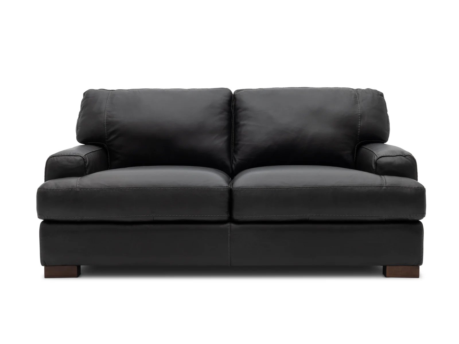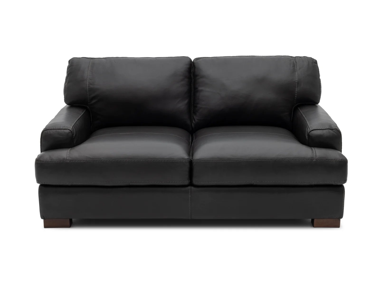Designed for intimate seating or smaller spaces, the Gunner Loveseat offers an eloquent balance of comfort and style. This Italian bench-made loveseat features the same attention to detail as its larger counterpart, with multi-layer high-density foam cushions and masonite siding to guarantee years of loving use. Its low-profile design and soft track arms bring contemporary charm to its strong urban attitude. Choose between dramatic grey or toasty soft brown top grain leather upholstery for the perfect final touch to this luxurious piece. Maximize your living space with the versatile Gunner Loveseat.