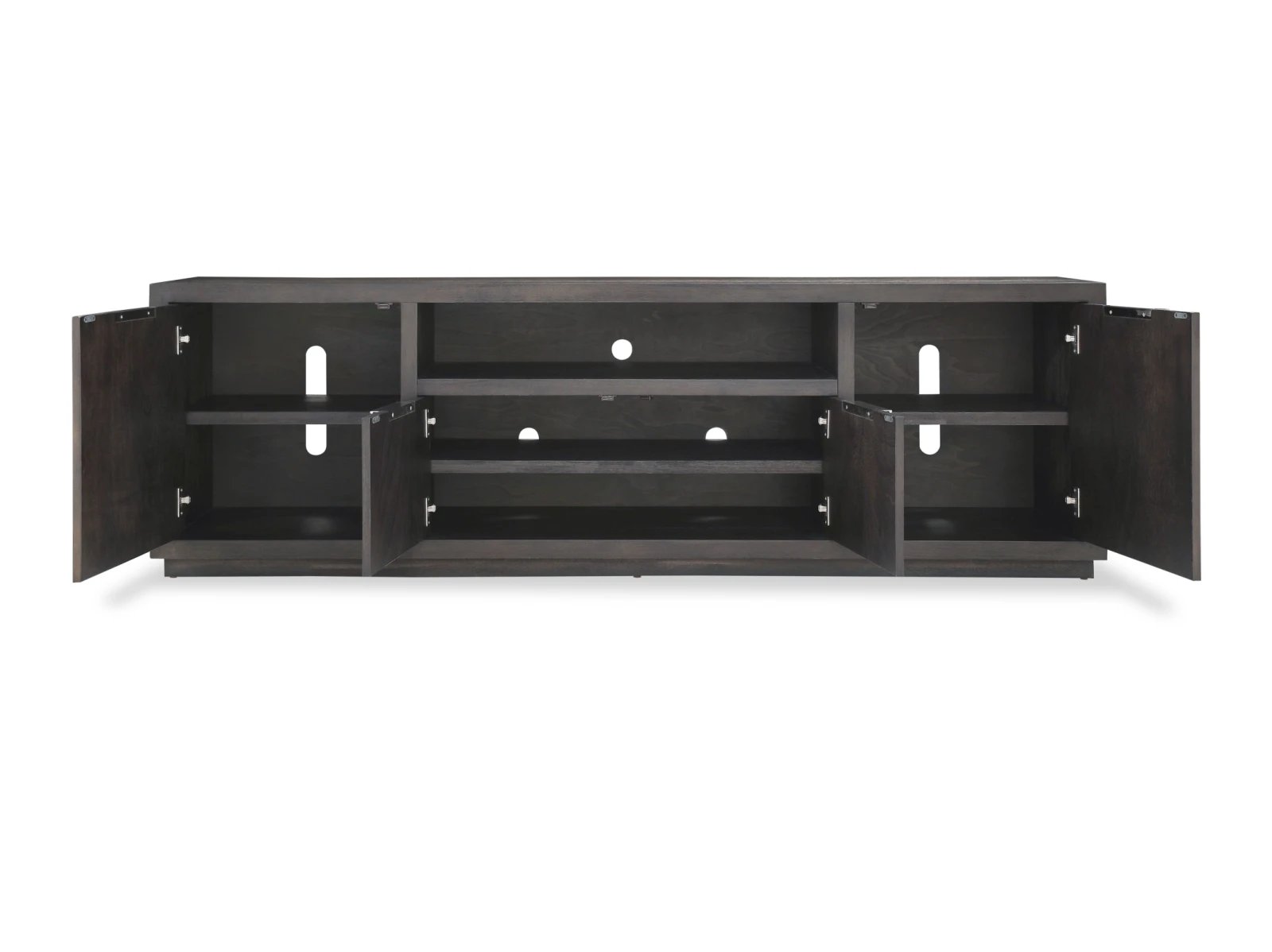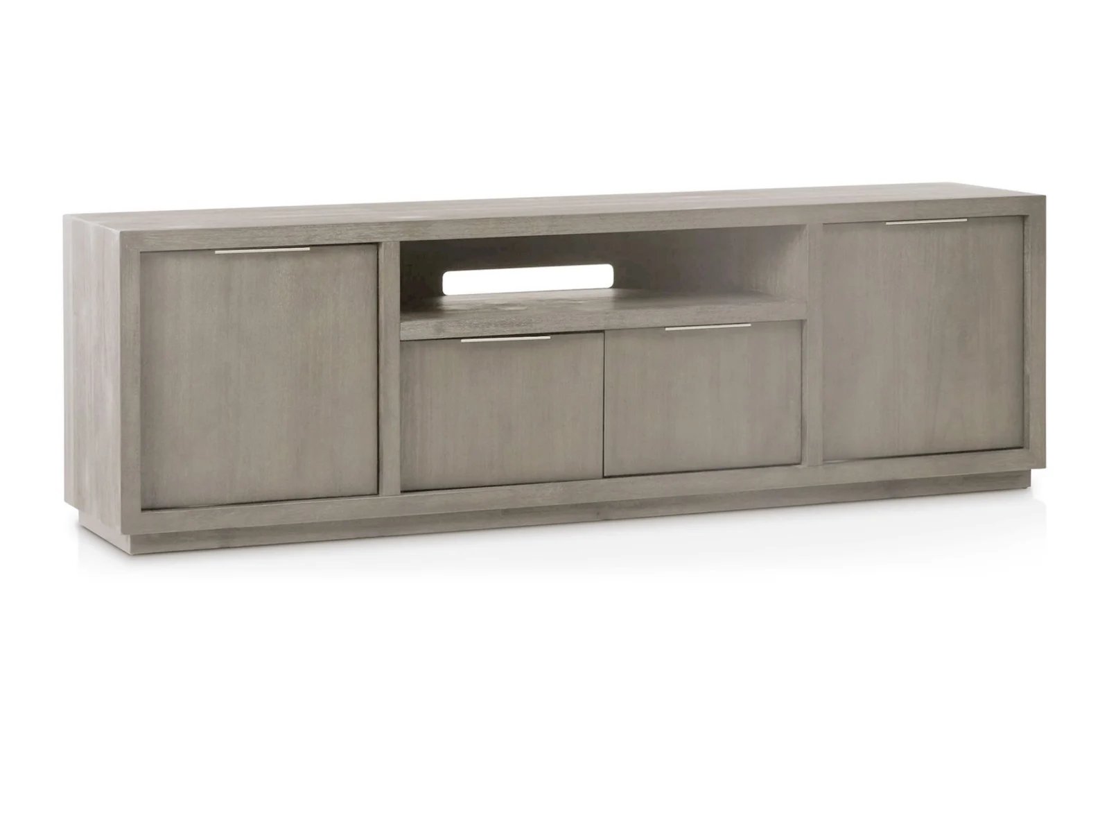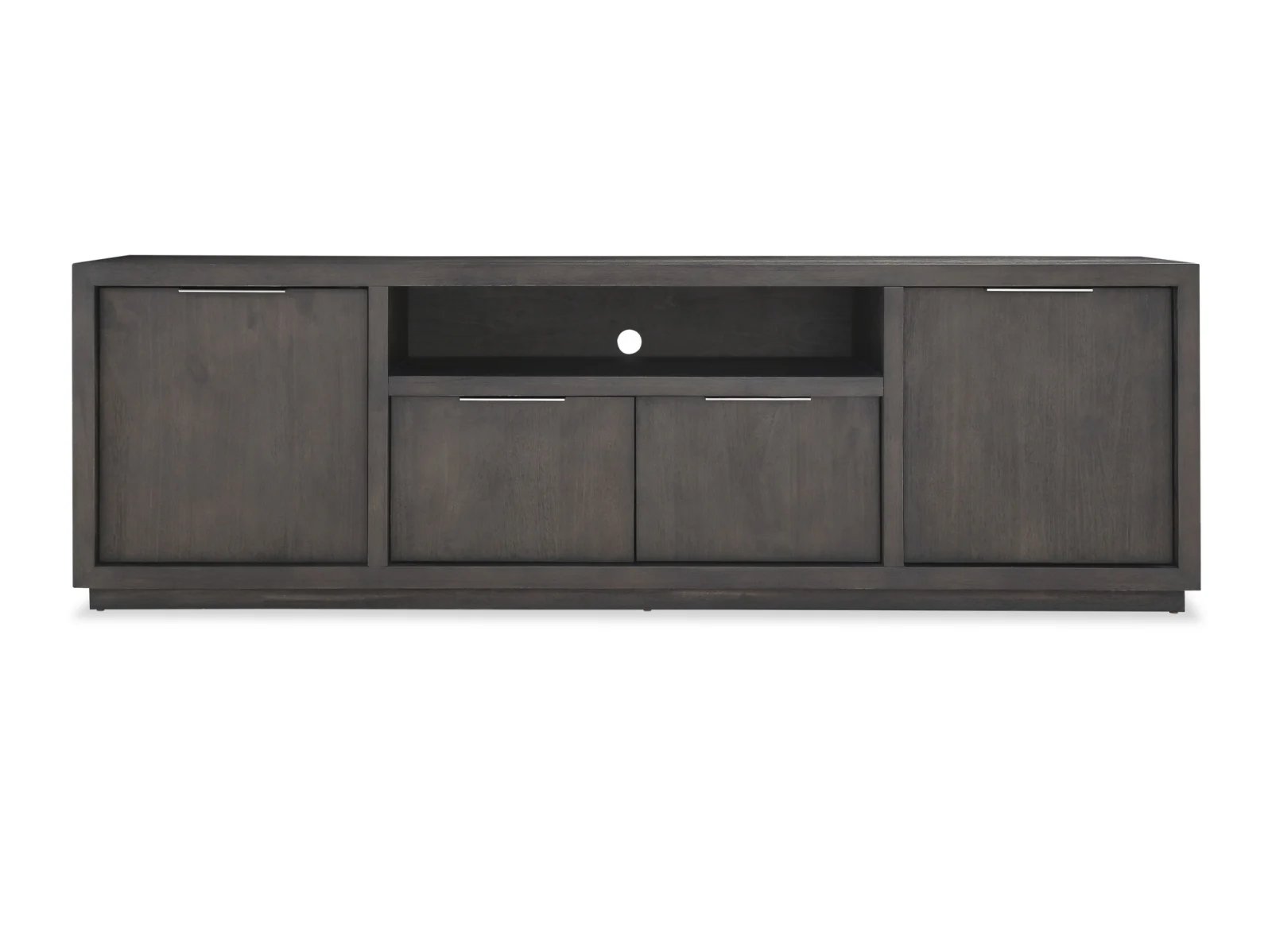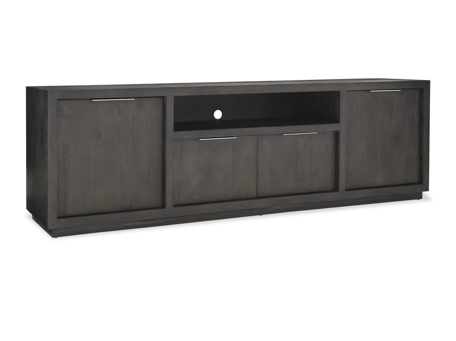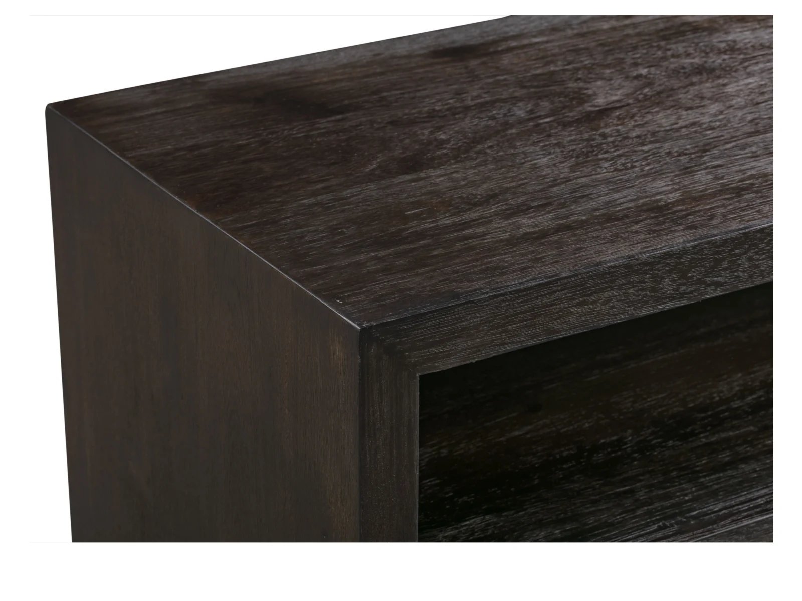 The Gusman collection makes a striking first impression with bold proportions, crisp, modern lines and a weathered finish. Smartly accented with top-mounted nickel plated pulls, tempered glass, and a floating plinth base.