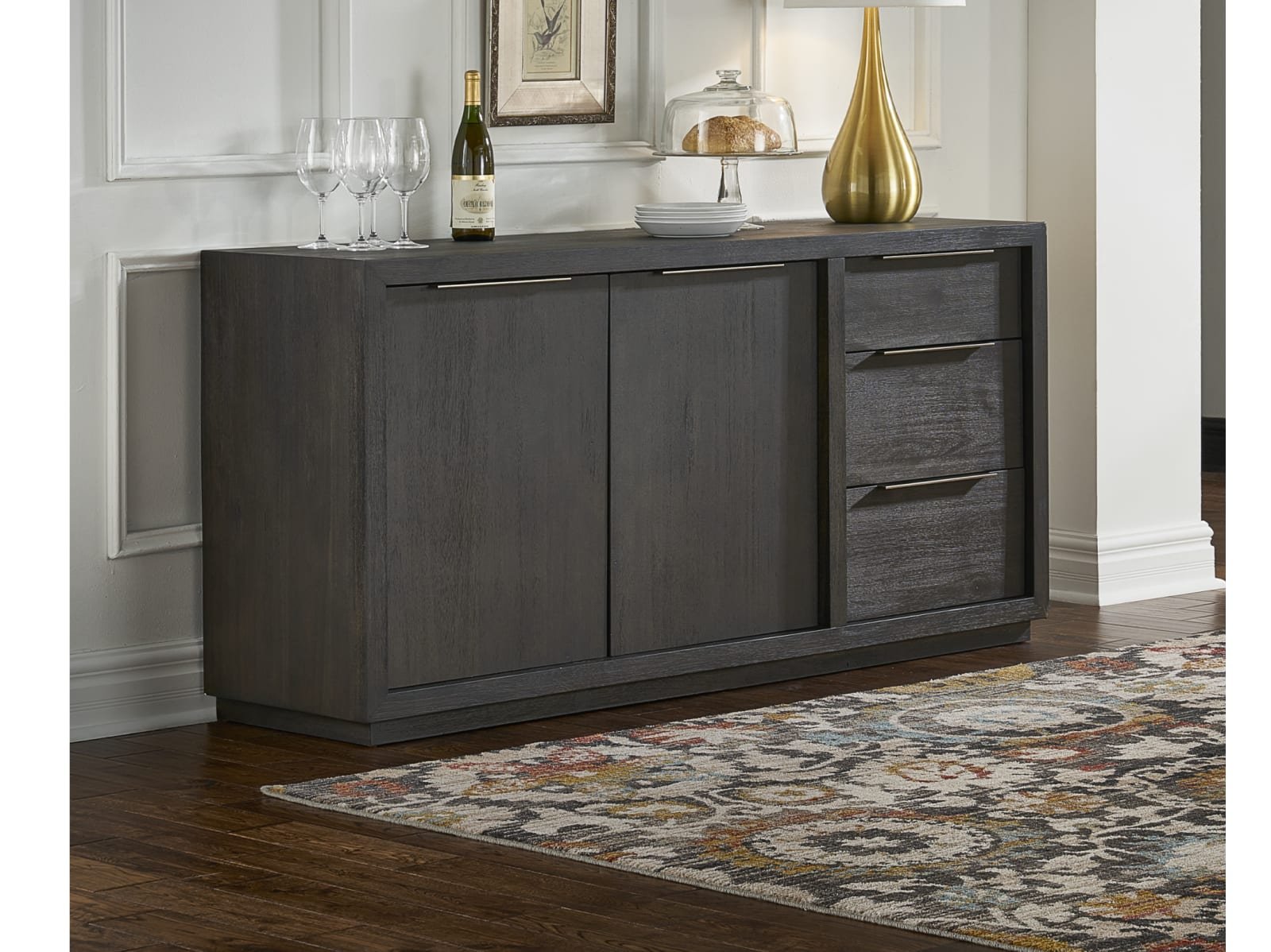 & Free ShippingSleekly tailored. With bold proportions, crisp, modern lines and a weathered finish, the Gusman collection makes a striking first impression. Smartly accented with top-mounted nickel plated pulls and a floating plinth base.