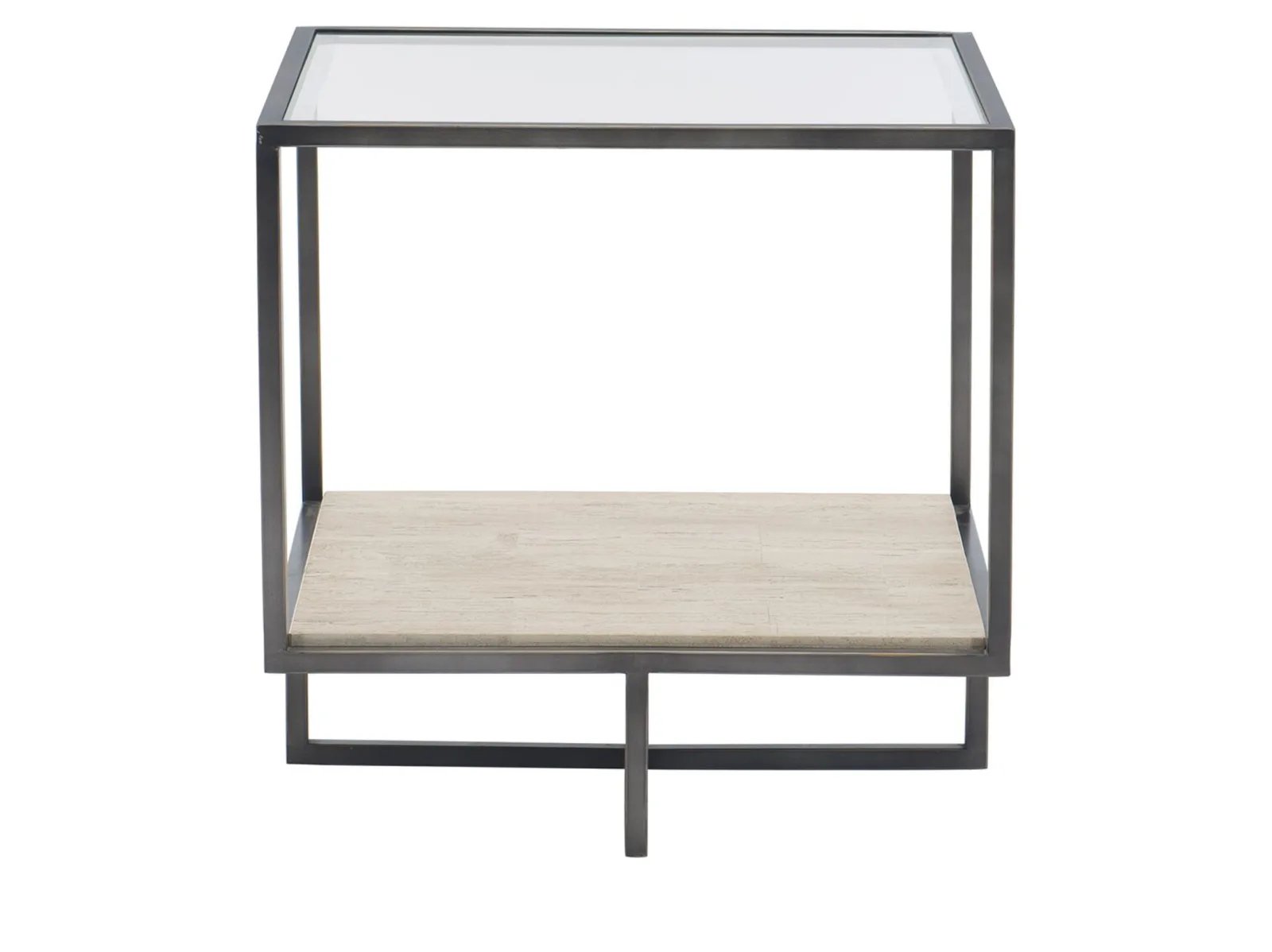 & Free ShippingBring a cool, contemporary vibe to your living space with the Harlow End Table. Its open-frame design creates a striking silhouette, featuring a tubular steel frame and stretchers in oil-rubbed bronze for stylish durability. The beveled glass top is perfectly balanced by a lower shelf made of genuine white travertine stone. Perfect for showcasing décor or keeping essentials within reach, the Harlow End Table is a stylish accent for any space looking to exude the tranquility of earthly beauty and everlasting resilience.