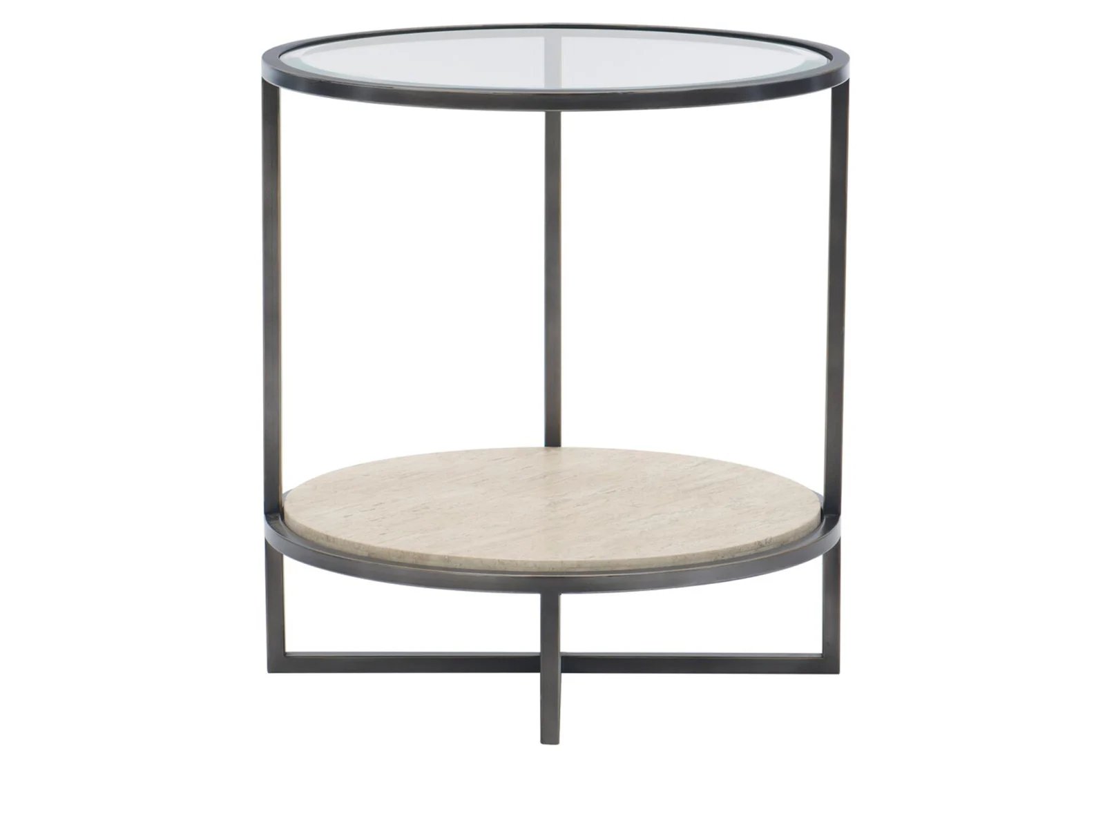 Add a touch of modern sophistication to your space with the Harlow End Table. Featuring a genuine white travertine stone top and a beveled glass surface, this round accent table combines organic beauty with fresh contemporary design. An open-frame silhouette composed of sturdy tubular steel in oil rubbed bronze is both eye-catching and versatile, making it easy to pair with a variety of décor styles. The Harlow Round End Table embraces natural forms to elevate everyday functionality!