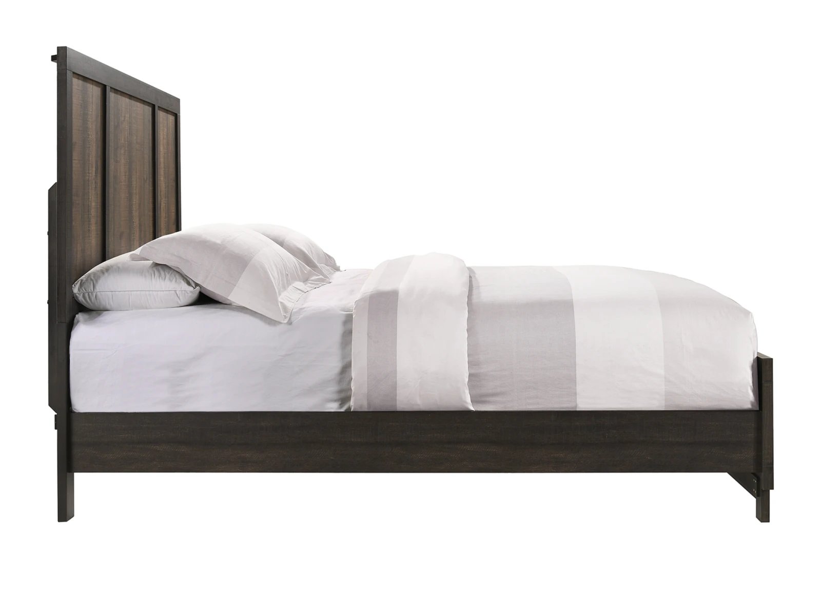 & Free ShippingThe Harston Panel Bed is the perfect addition to your bedroom! This attractive bed features a trio panel headboard and footboard, and it makes a striking impression thanks to its pairing of two distinctive finishes. The Harston’s outer framing and panel frame are finished in a dark chocolate color while the inset panels showcase a lighter walnut finish full of wooden tones and texture. The Harston rests on simple square feet to perfect its unique rustic-contemporary look, and it comes in at a price that’s easy on any budget. Add the Harston Panel Bed to your collection today.