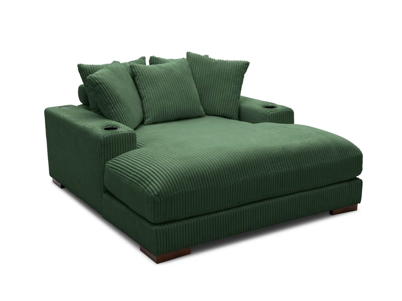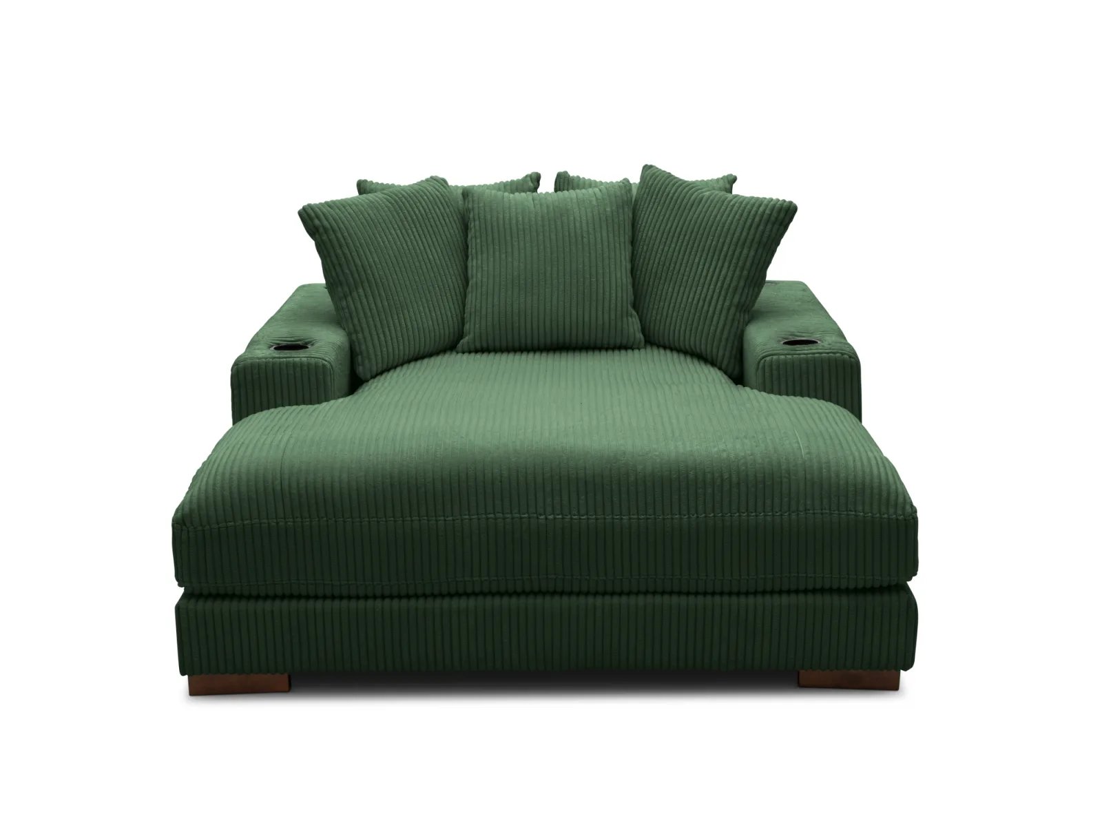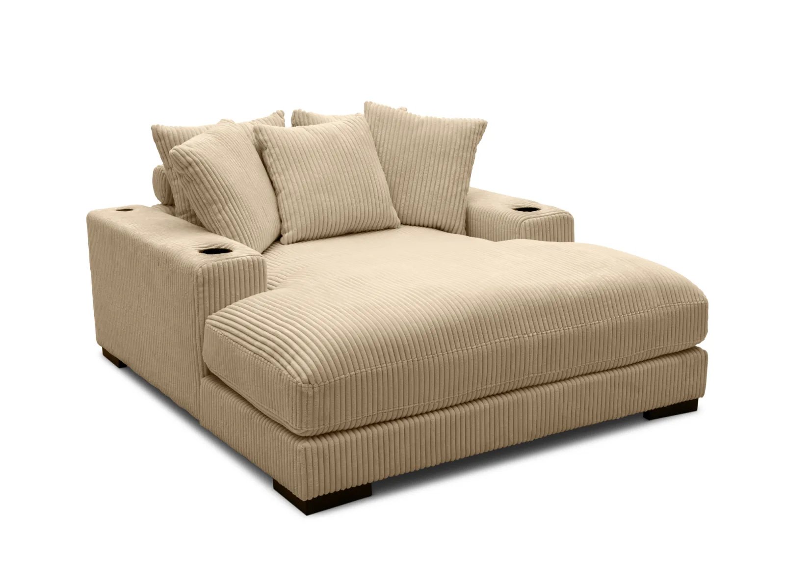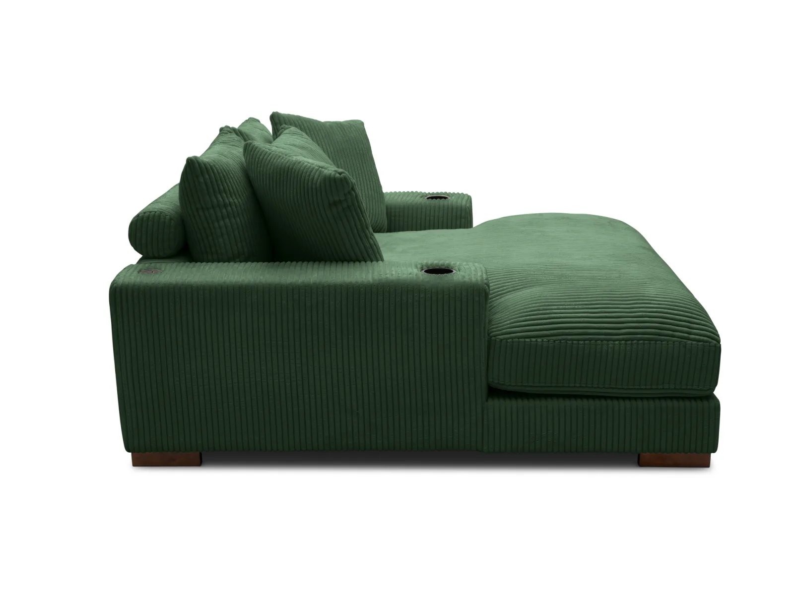 The Haven Oversized Chaise Lounge provides an answer to the age-old question, who needs a sofa when you can have a ridiculously-comfy oversized chaise instead?! This luxurious chaise lounge features a lounge-ready seating area topped with an enormous T-shaped cushion that can seat two people, and it’s surrounded by a low-lined backrest and wide track arms with cup holders and USB power ports. Draped in a cozy, wide corduroy fabric, the Haven adds an uplifting contemporary feel into any room, plus it’s available in 4 stylish colors: white, grey, green, and taupe. Level up your lounge game with the Haven Oversized Chaise Lounge.