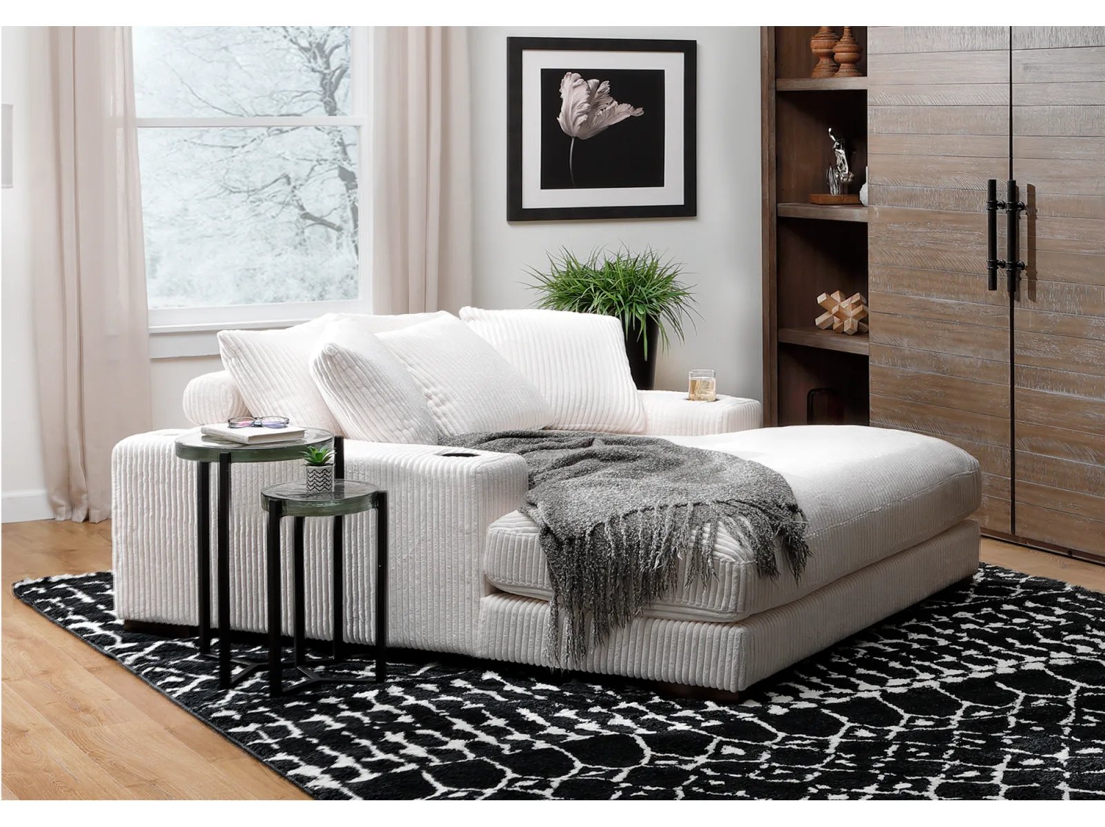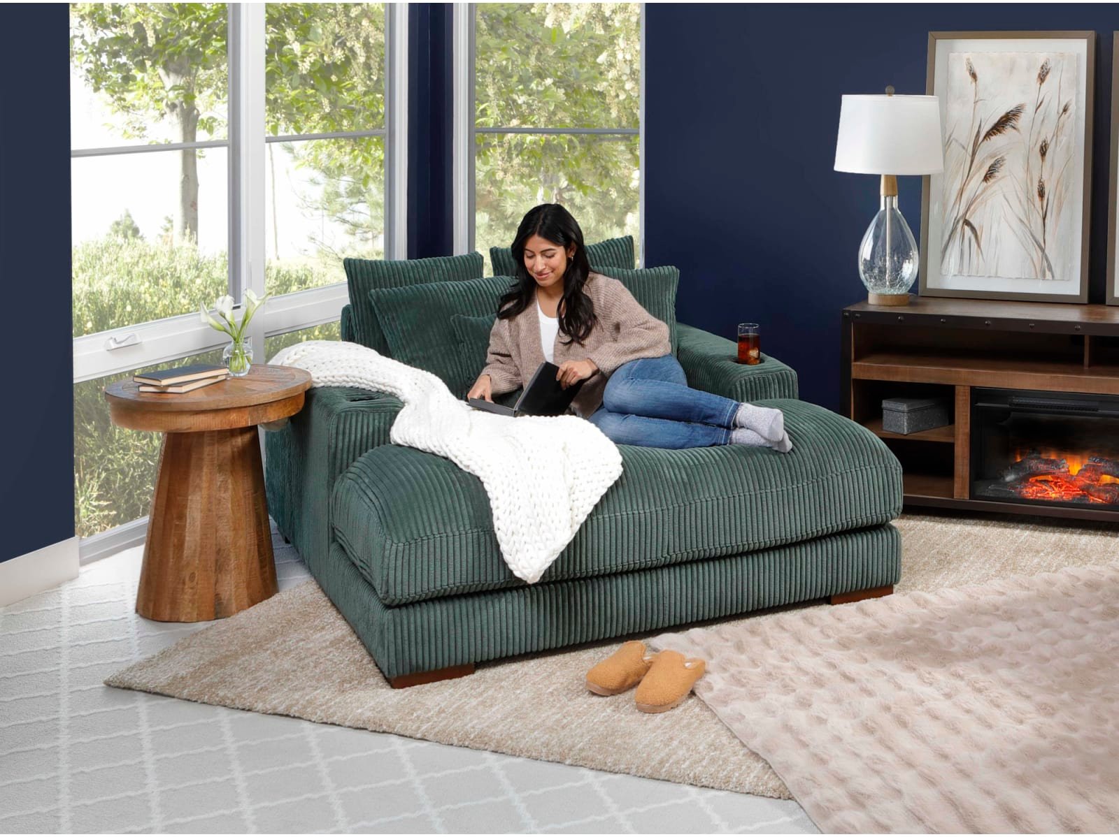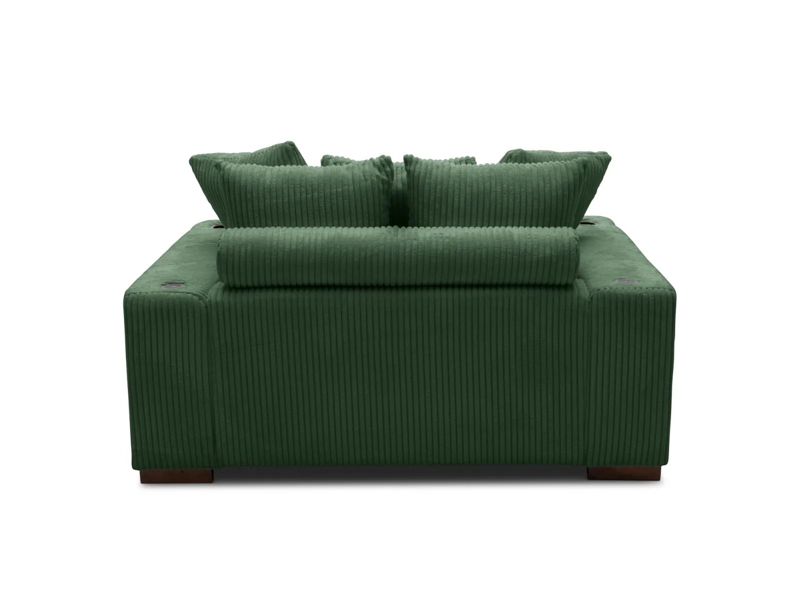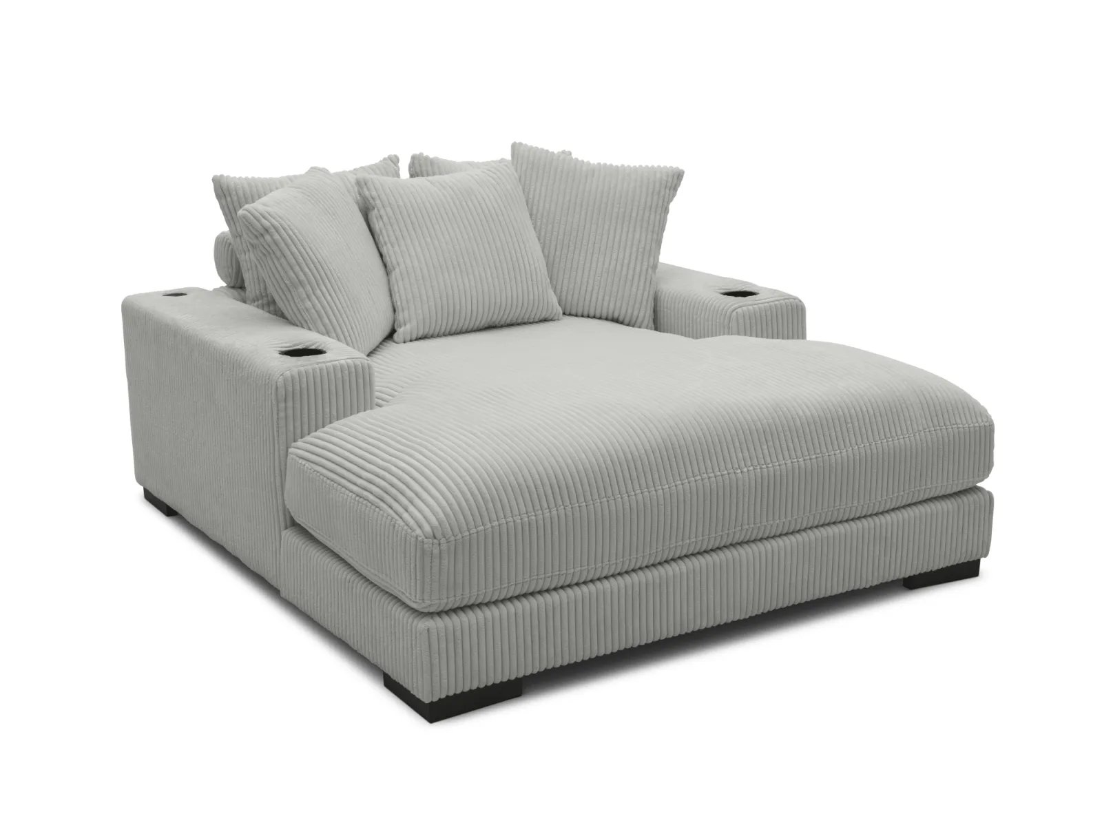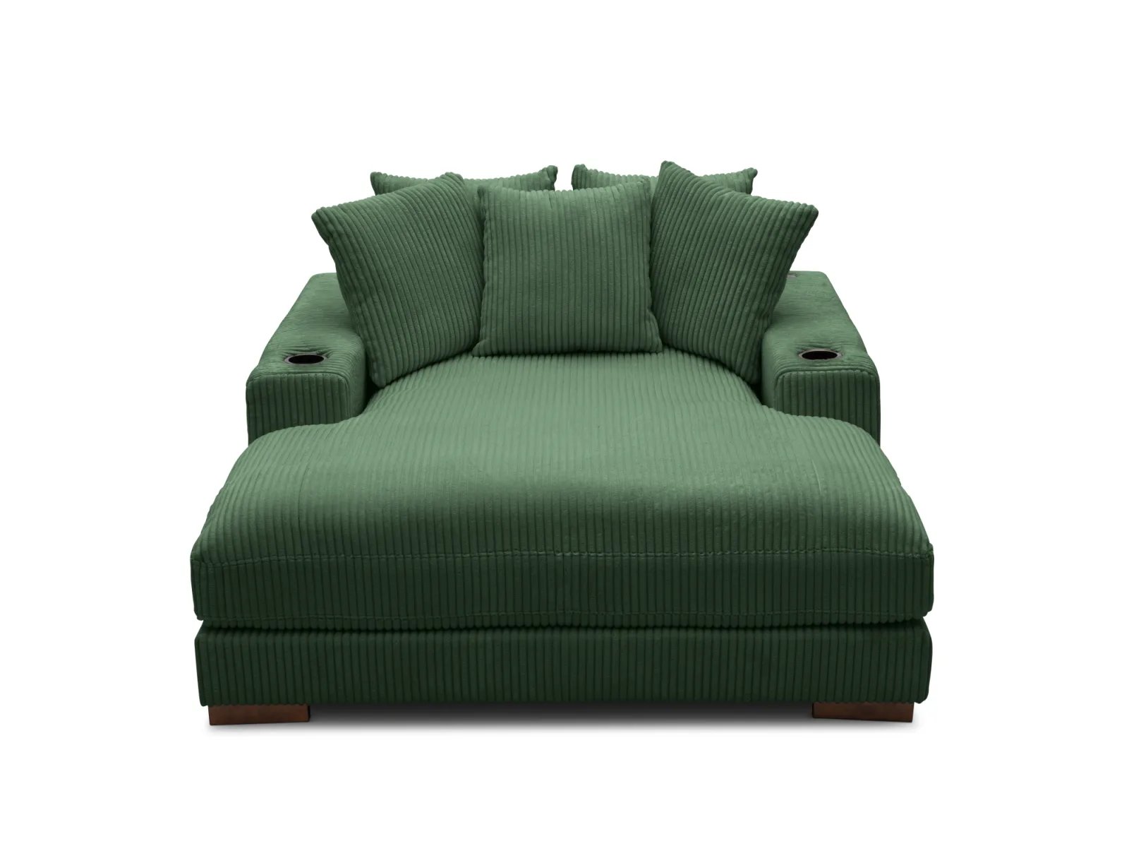 The Haven Oversized Chaise Lounge provides an answer to the age-old question, who needs a sofa when you can have a ridiculously-comfy oversized chaise instead?! This luxurious chaise lounge features a lounge-ready seating area topped with an enormous T-shaped cushion that can seat two people, and it’s surrounded by a low-lined backrest and wide track arms with cup holders and USB power ports. Draped in a cozy, wide corduroy fabric, the Haven adds an uplifting contemporary feel into any room, plus it’s available in 4 stylish colors: white, grey, green, and taupe. Level up your lounge game with the Haven Oversized Chaise Lounge.