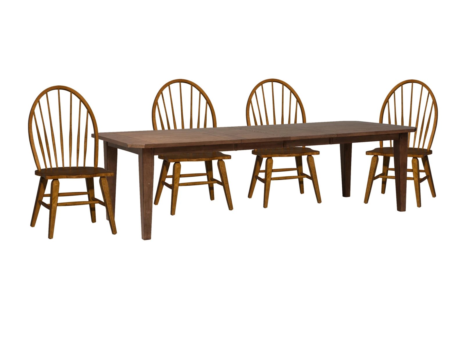 & Free ShippingGather around the Hewitt rectangular leg table. Crafted of rubberwood solids and oak veneers, this piece features a rustic oak finish, two 18” removable leaves to accommodate guests or a larger family, planked top, canted corners, wood and peg accents, and is anchored by tapered legs. With vintage appeal, Hewitt is a casual, rustic style that never goes out of fashion. Elements of shaker and craftsman designs are combined with the rustic oak finish.