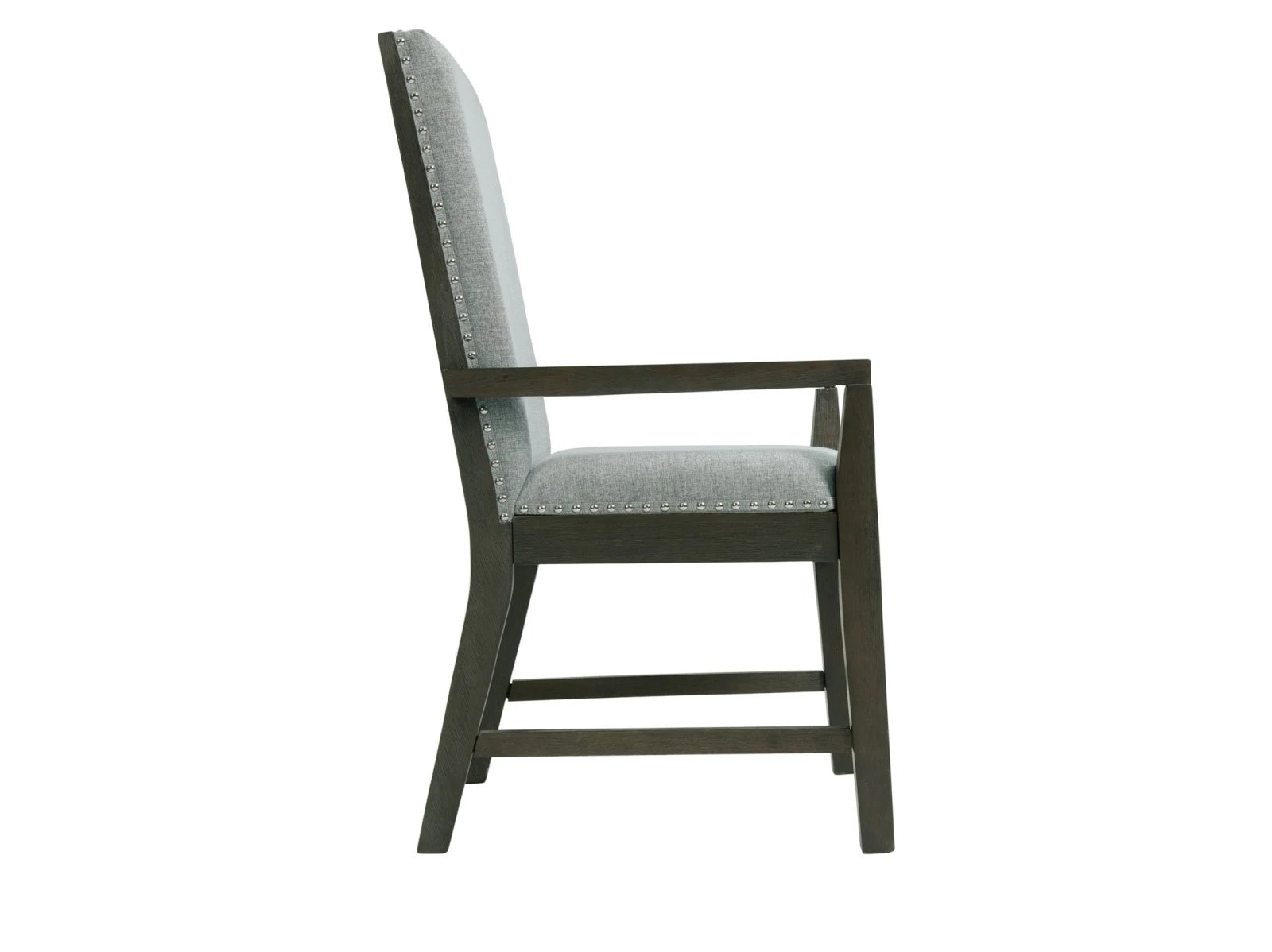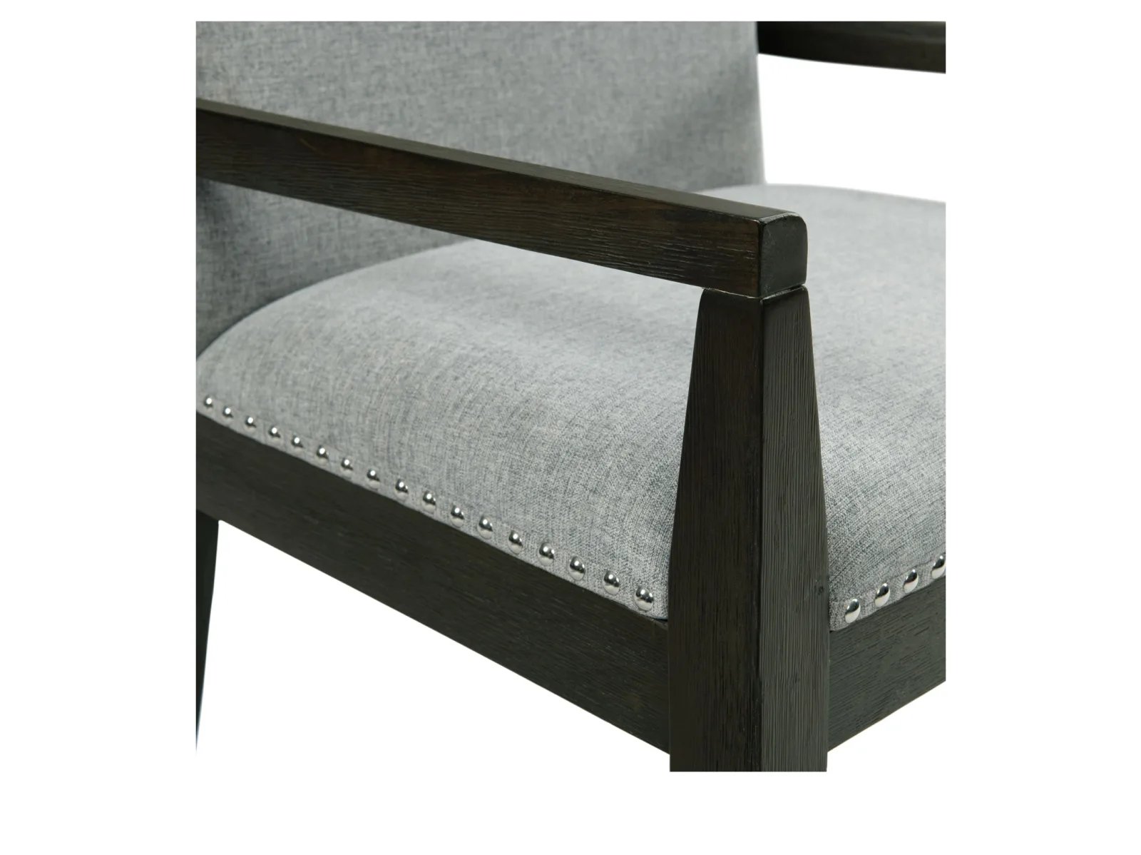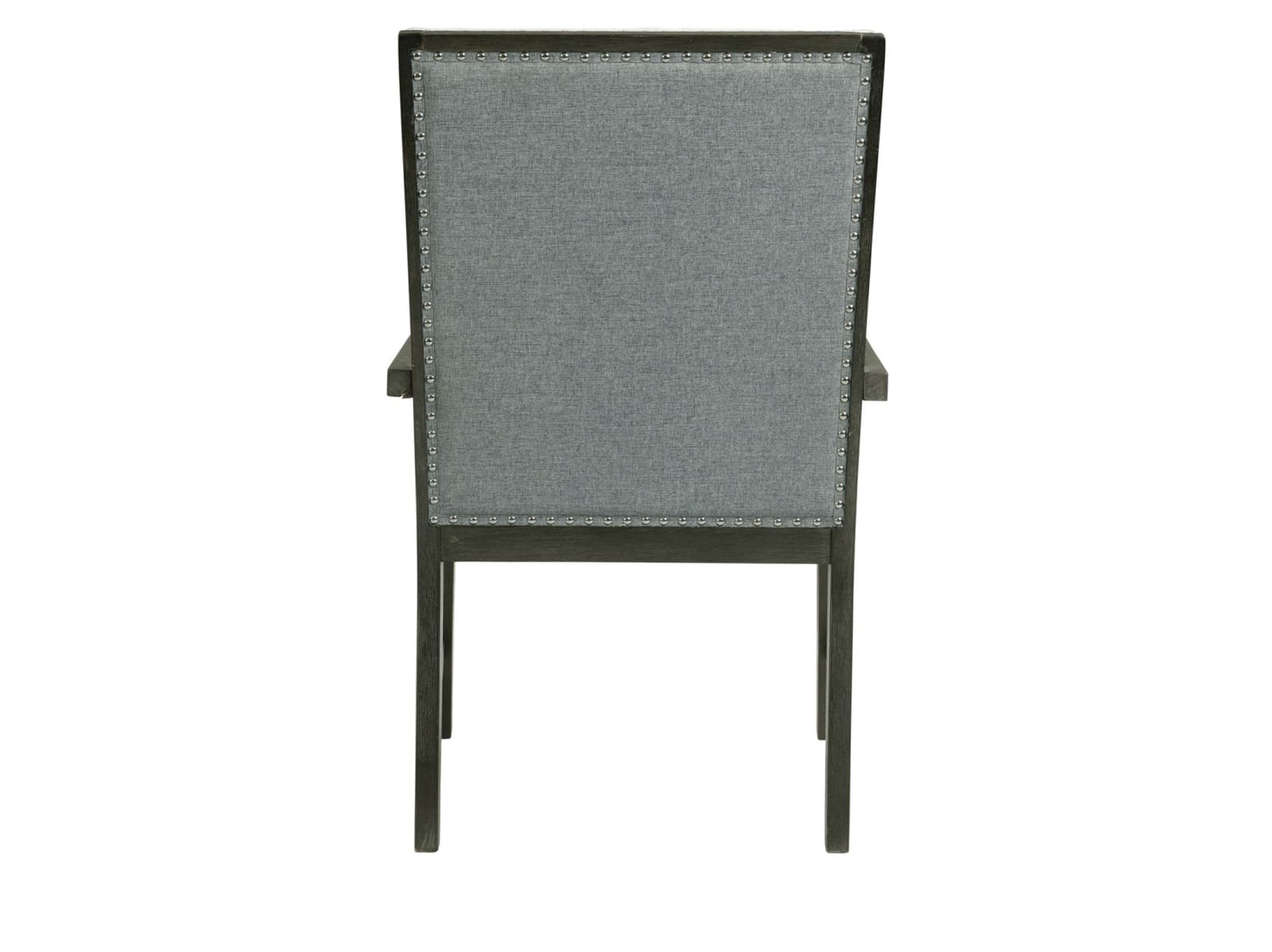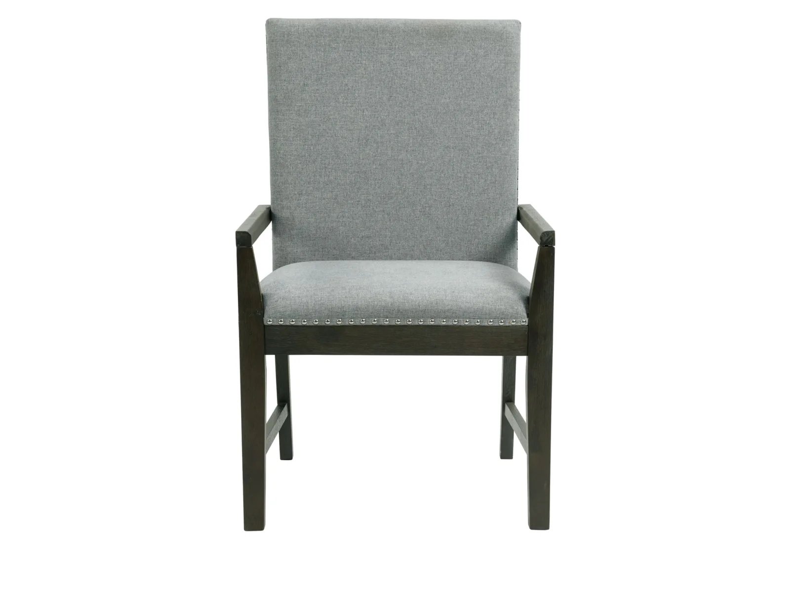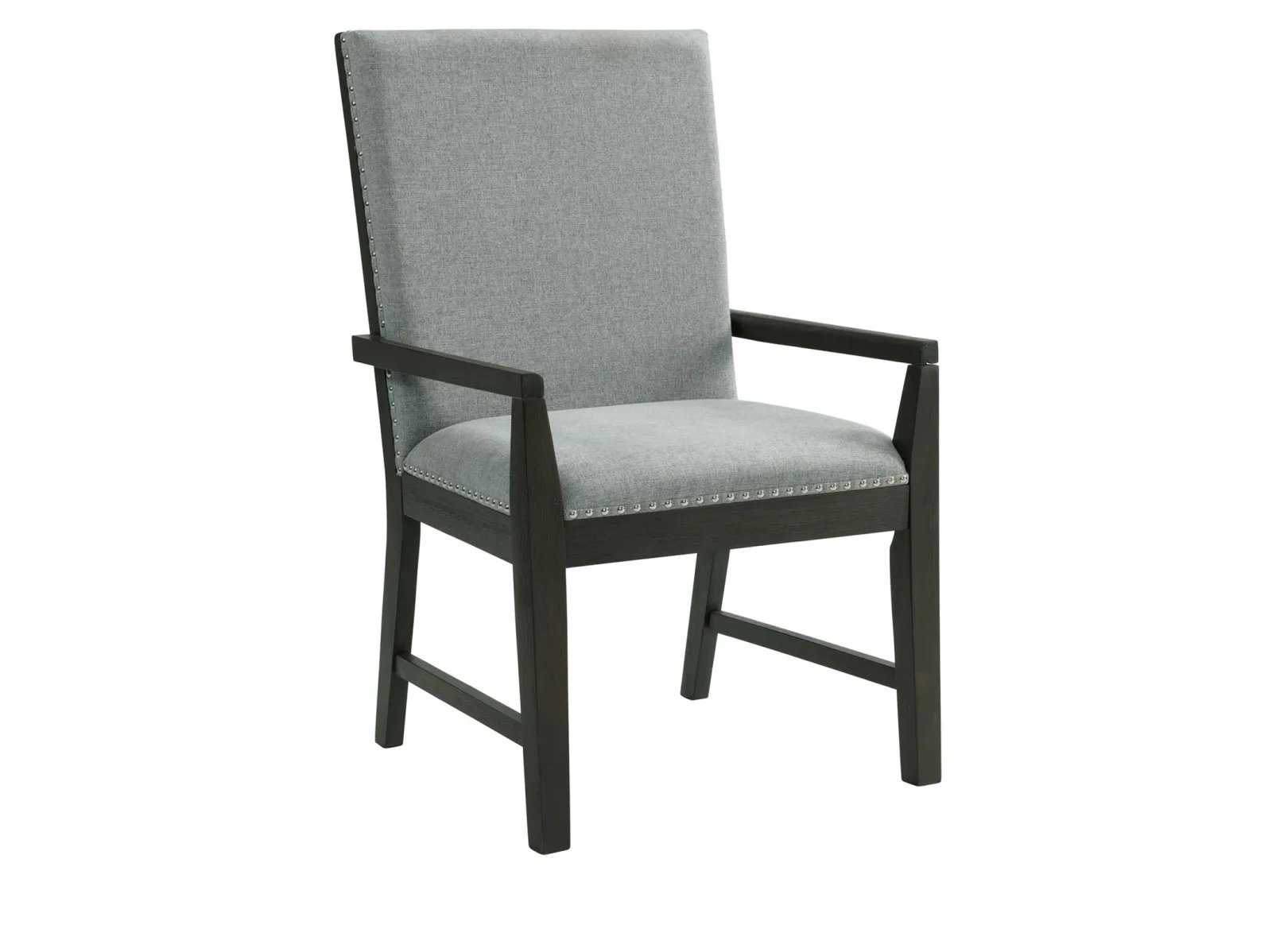 & Free ShippingThe Holden Arm Chair in going to look fantastic in your home! These chairs are upholstered in a gray fabric, that pairs beautifully with the black, wire brush finish on the legs and arms. Chrome nail head trim, outlines the edges of the chairs, instantly adding extra flair to this already stylish pair. The solid chair back is classic in design and will provide hours of comfort thanks to its foam cushioning. Add these stunning chairs to your dining table today for a look you’ll love day after day!