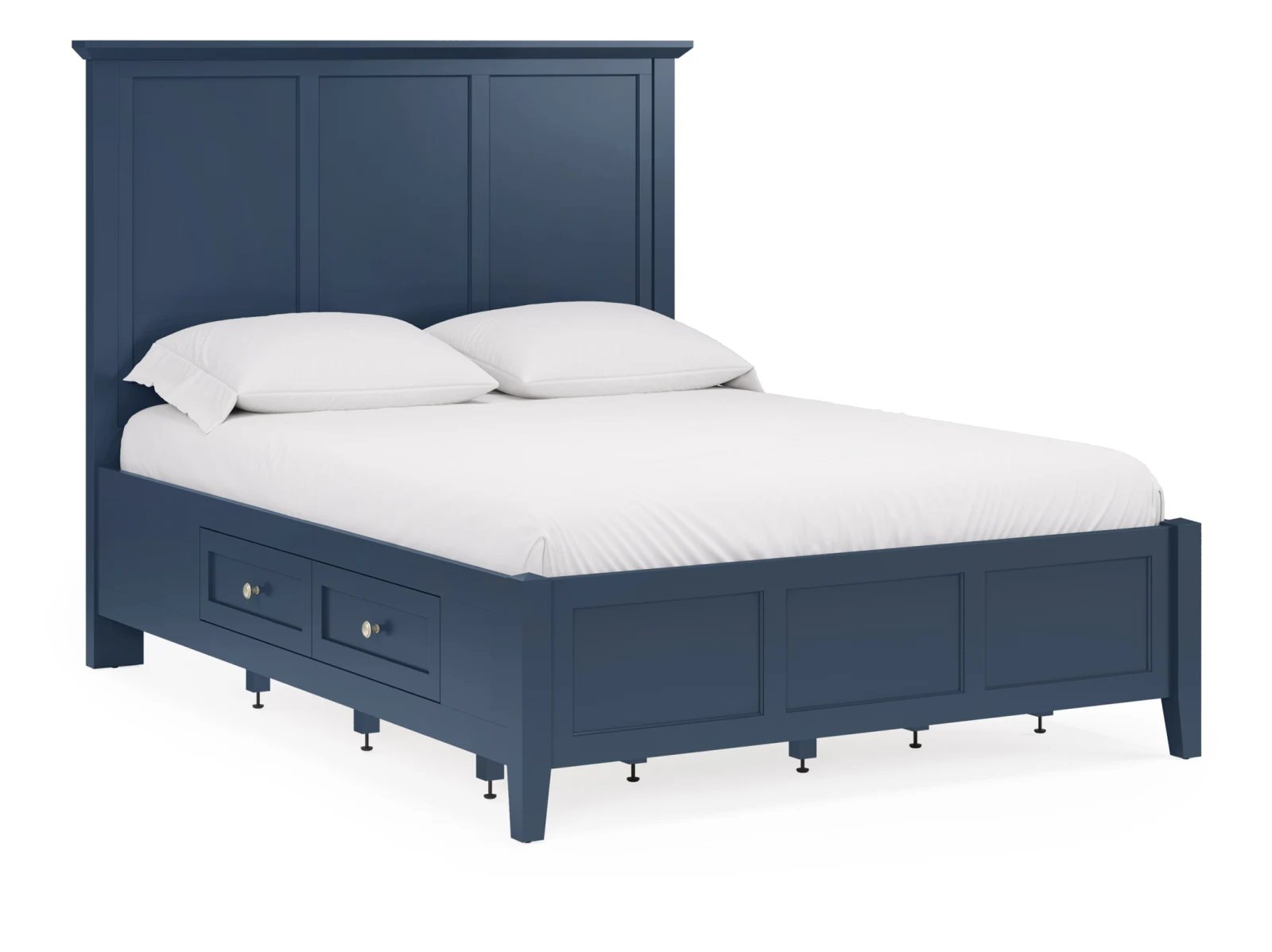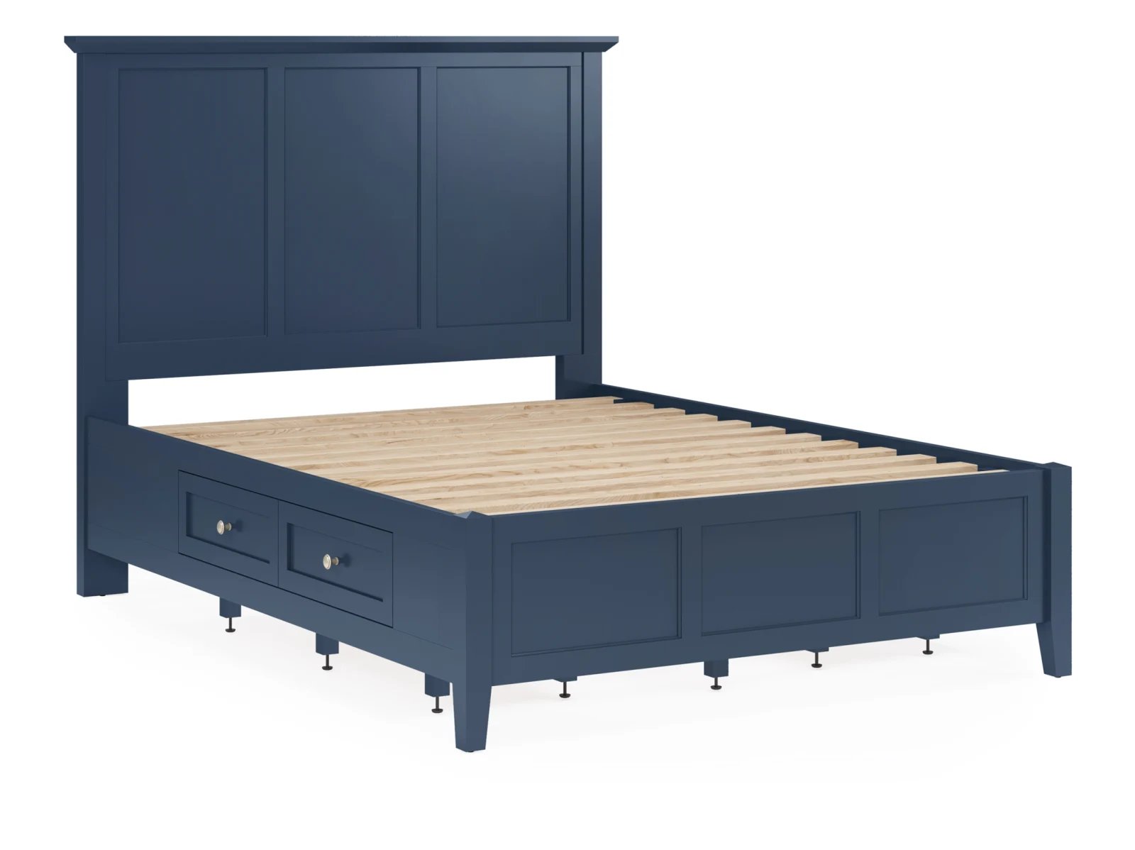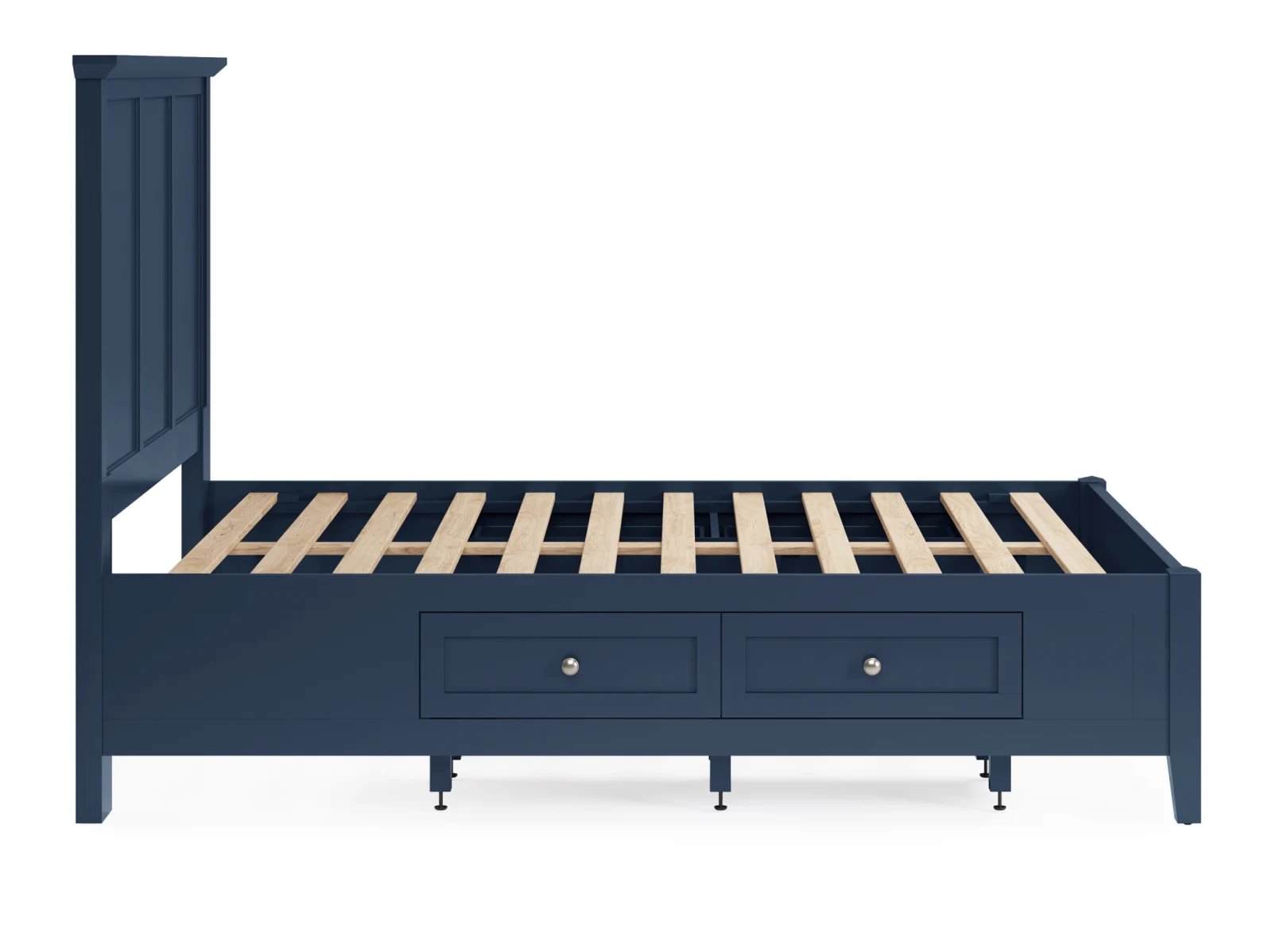 Bring style and functionality to your bedroom with the Hollie Storage Bed, a perfect blend of classic Shaker design and modern practicality. Featuring clean panel detailing and spacious storage drawers built into the side rails, this bed is as versatile as it is beautiful. Available in timeless finishes like white, gray, blue, and black, it complements farmhouse, coastal, transitional, and contemporary decor styles effortlessly. Gently tapered legs and brushed nickel hardware add a polished touch to this must-have piece.