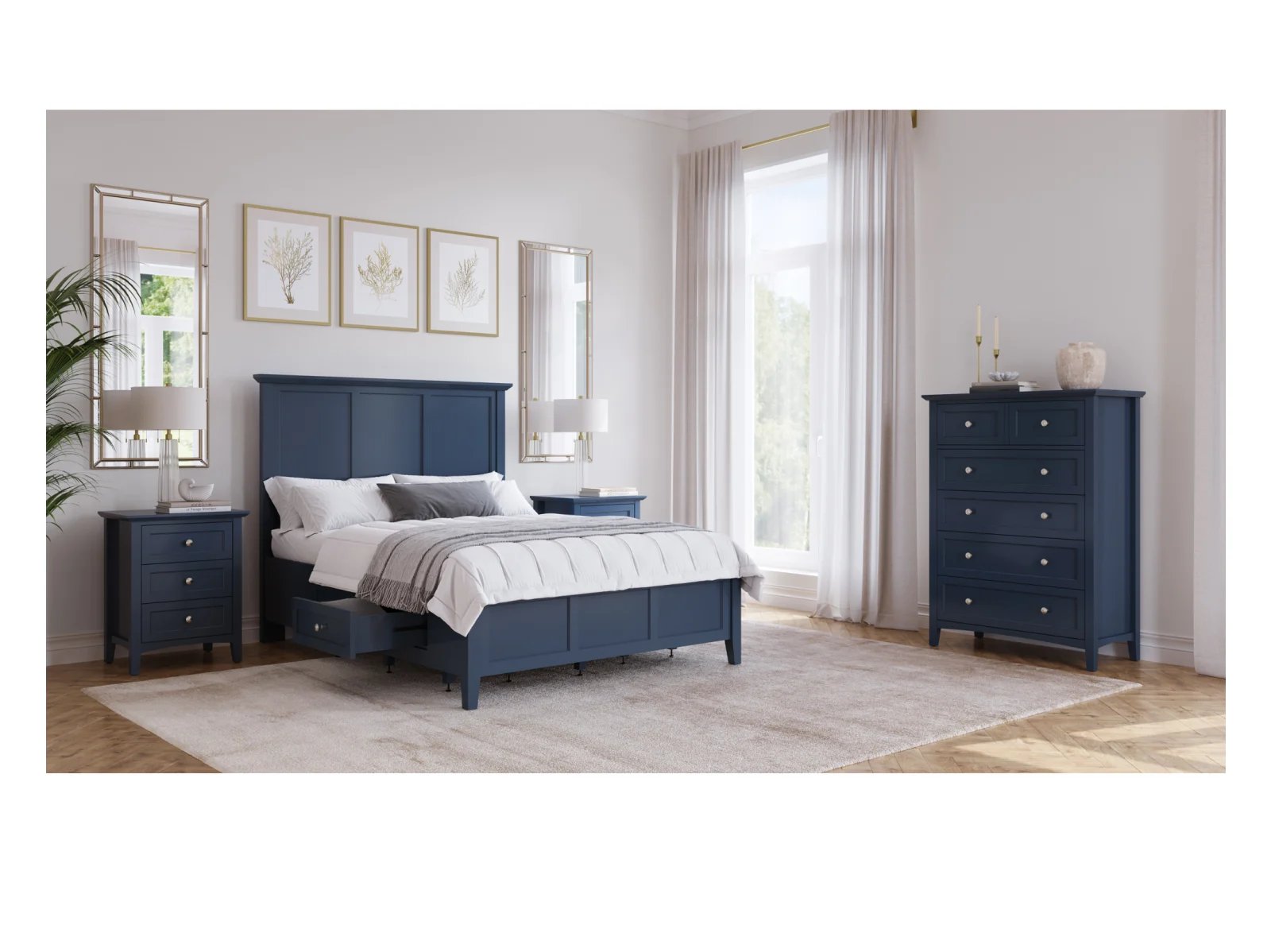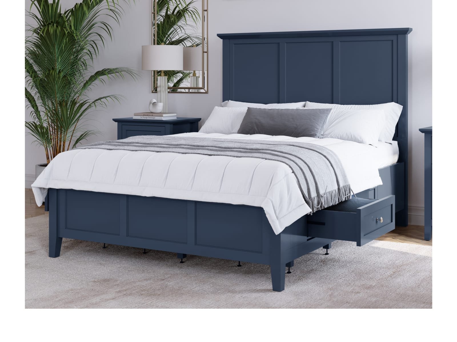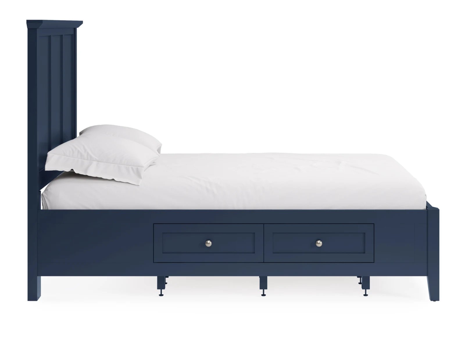 Bring style and functionality to your bedroom with the Hollie Storage Bed, a perfect blend of classic Shaker design and modern practicality. Featuring clean panel detailing and spacious storage drawers built into the side rails, this bed is as versatile as it is beautiful. Available in timeless finishes like white, gray, blue, and black, it complements farmhouse, coastal, transitional, and contemporary decor styles effortlessly. Gently tapered legs and brushed nickel hardware add a polished touch to this must-have piece.