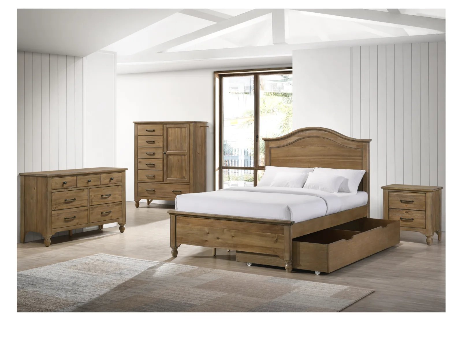 & Free ShippingThe Horton Collection is featured in a classic rustic farmhouse style, in a natural Sand Dune finish. Several unique case piece items are offered in this collection, including a bookcase, trundle and under the bed storage drawers. Mix and match these items to create the perfect nursery for your child.