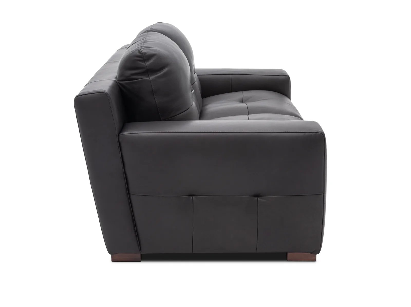 & Free ShippingCompact, contemporary, and oh-so-comfortable, the Huxley Loveseat is the perfect addition to any living space. With its sleek design and generous seating area, this eye-catching loveseat offers a timeless 2-over-2 configuration, and it’s outfitted with cloud-like cushions made with high-density foam and indulgent feather toppers. The Huxley Loveseat is built with a durable solid wood frame and upholstered in genuine, dark gray Italian leather, and it brings together wide track arms and button-tufted accents for a final touch of distinction.