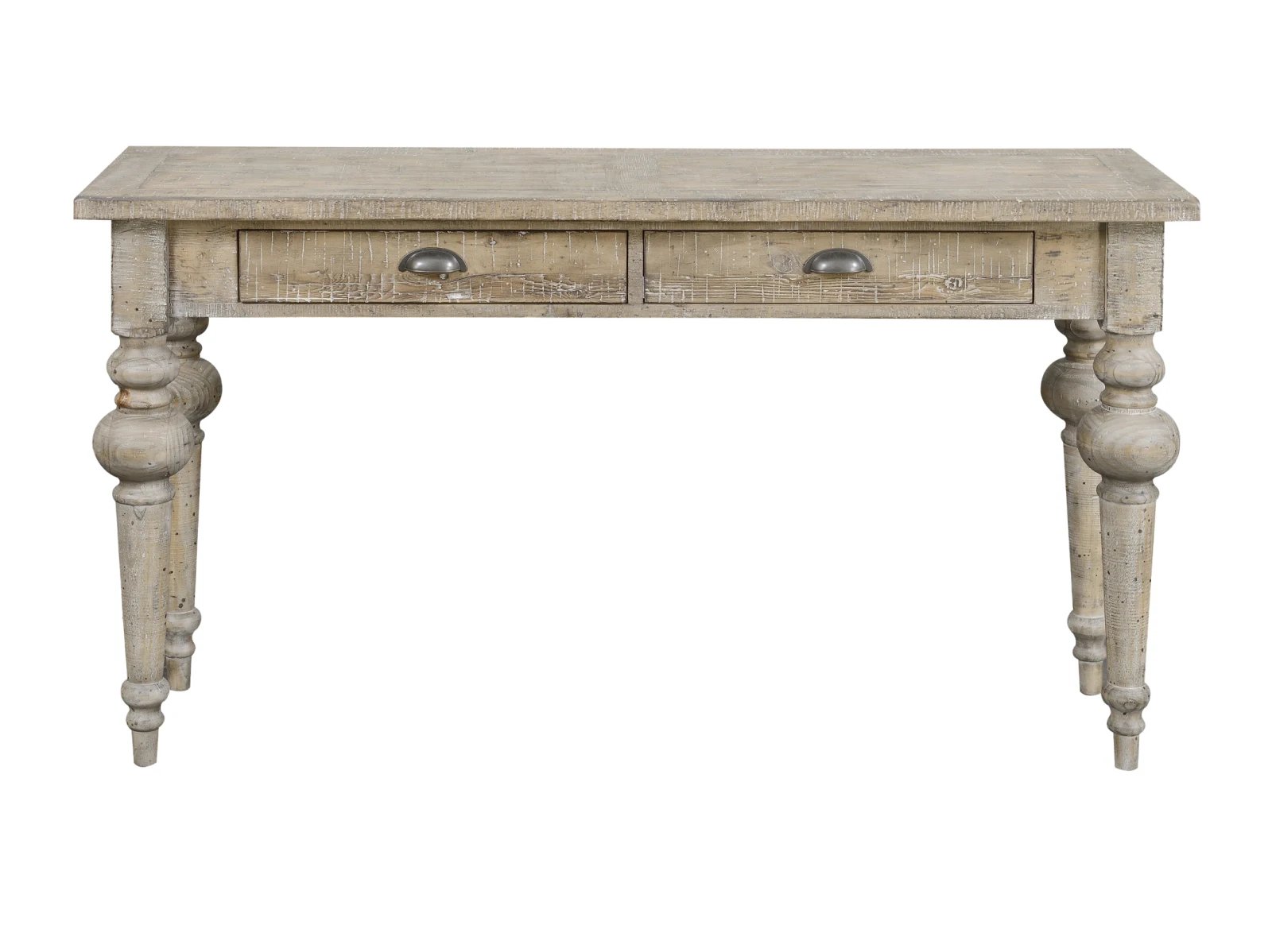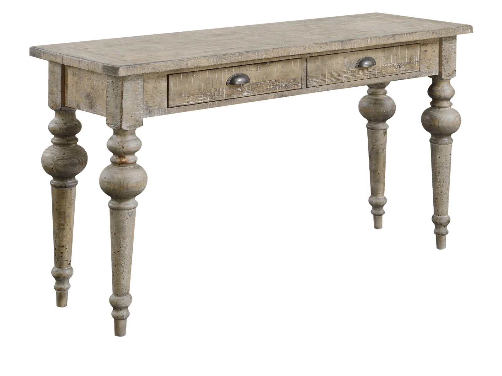 & Free ShippingThe Interlude sofa table from Emerald Home brings charming sophistication to your space. This rustic-casual style table features hand-distressed woods with wrought iron-inspired hardware. Its distinct leg design and storage drawers give a beautiful update to the classic design.