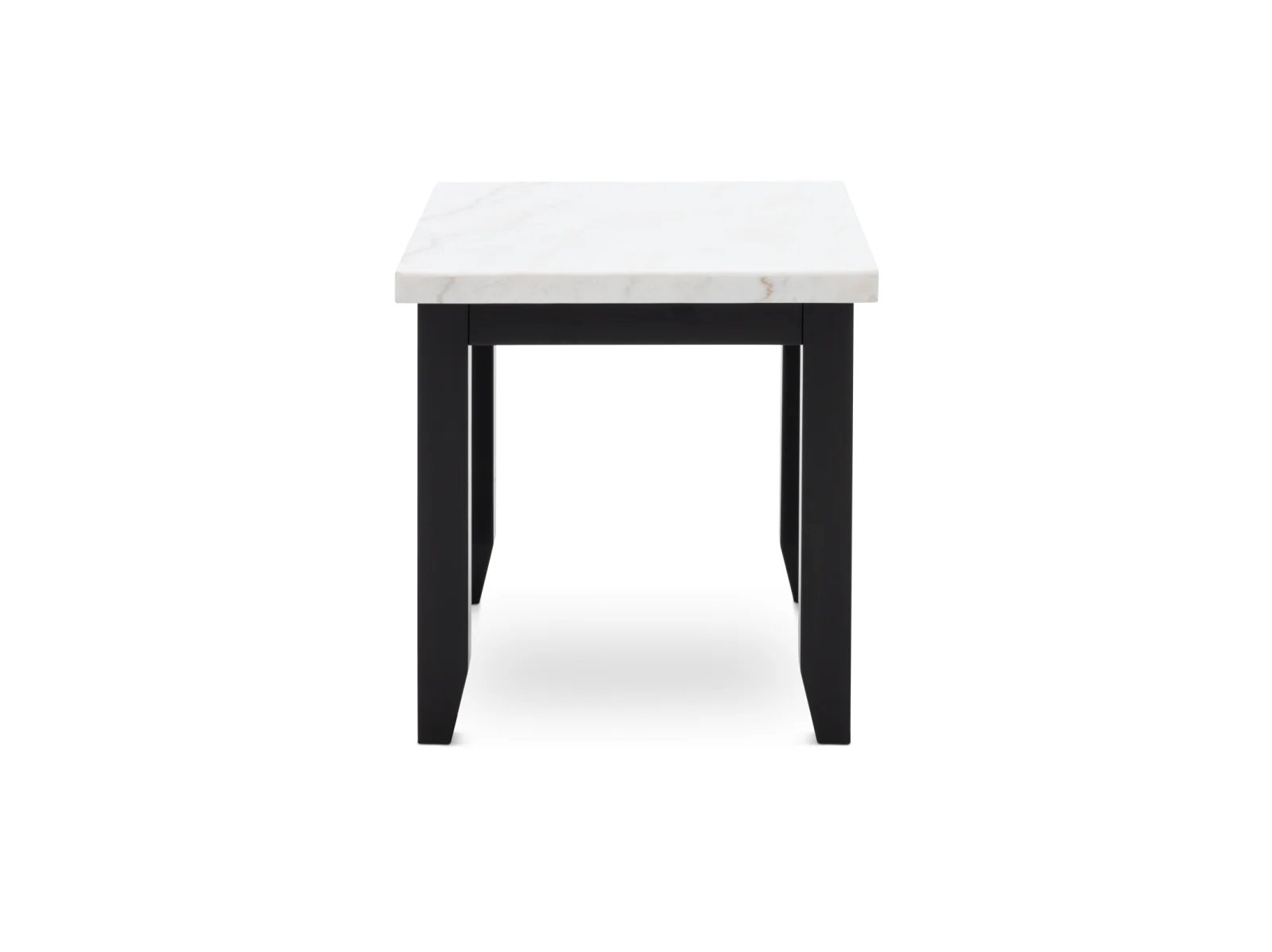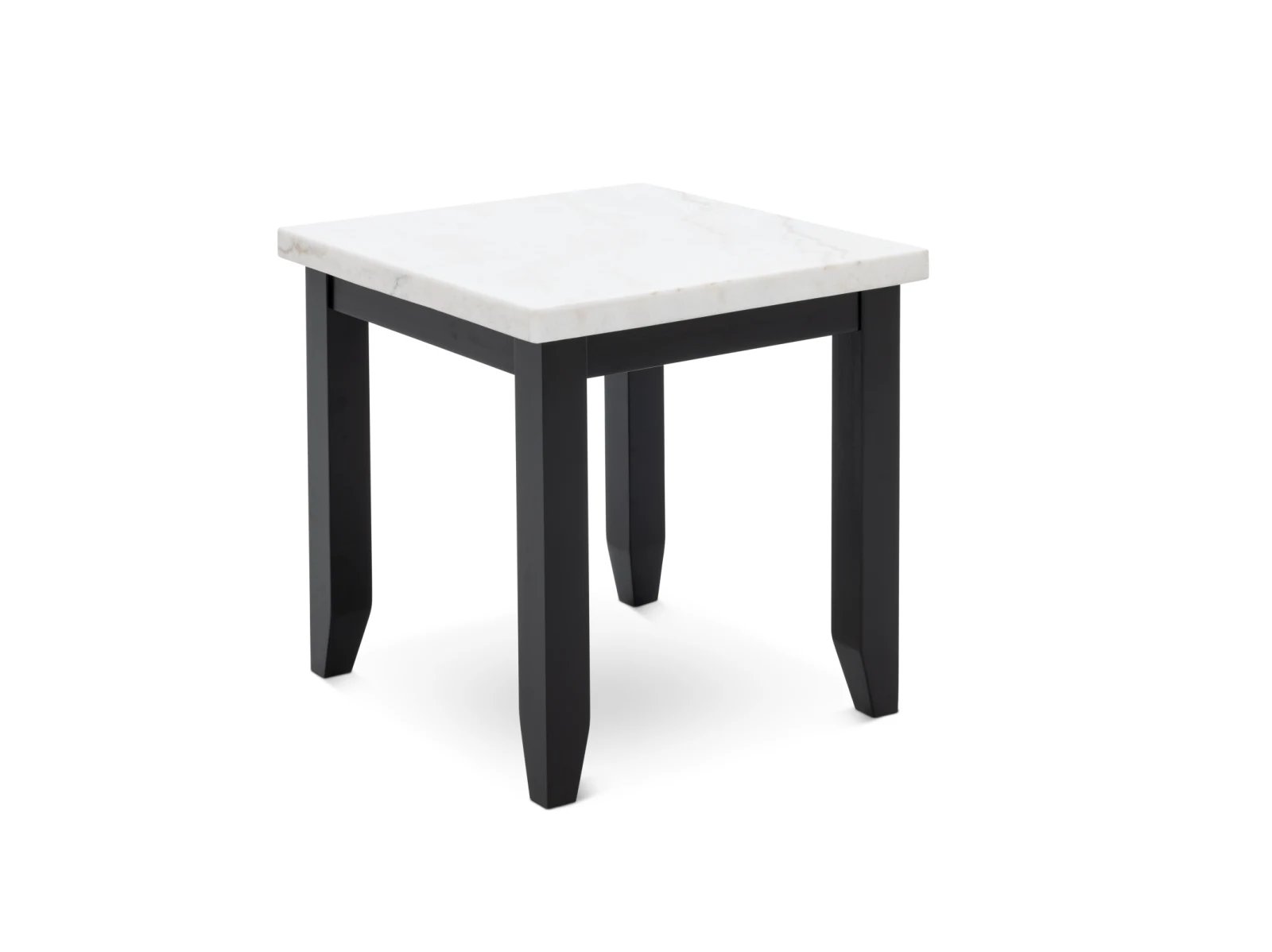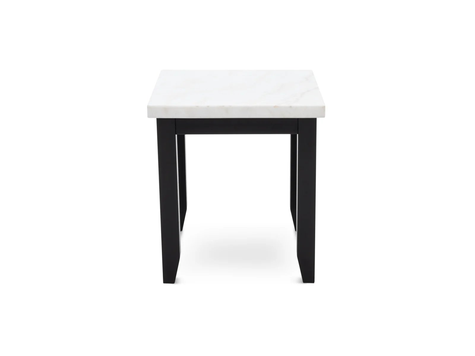 & Free ShippingThe Ivory End Table adds allure and attitude to any living space. Made from poplar wood and okume veneers, this square end table boasts clean, simple lines for an inviting design. The black-finished wood base pairs beautifully with the white marble tabletop and brushed silver hardware. This is the perfect table to enhance your everyday lounging, dining, and entertaining. Make the Ivory End Table yours!