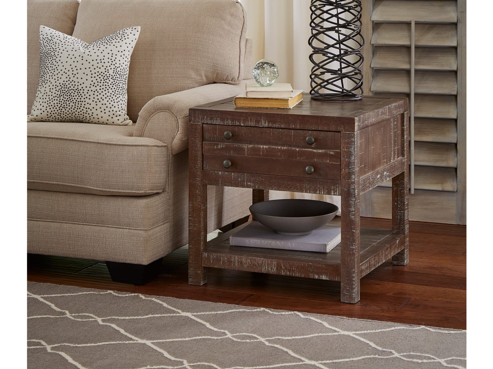 - 1 drawer end table features full extension and ball bearing drawer slides