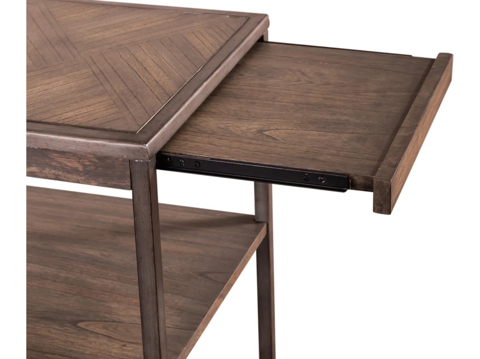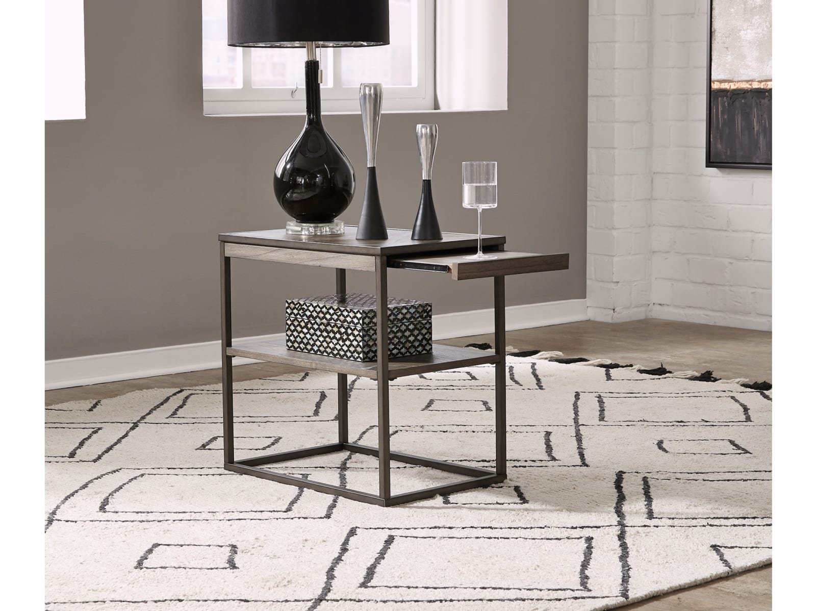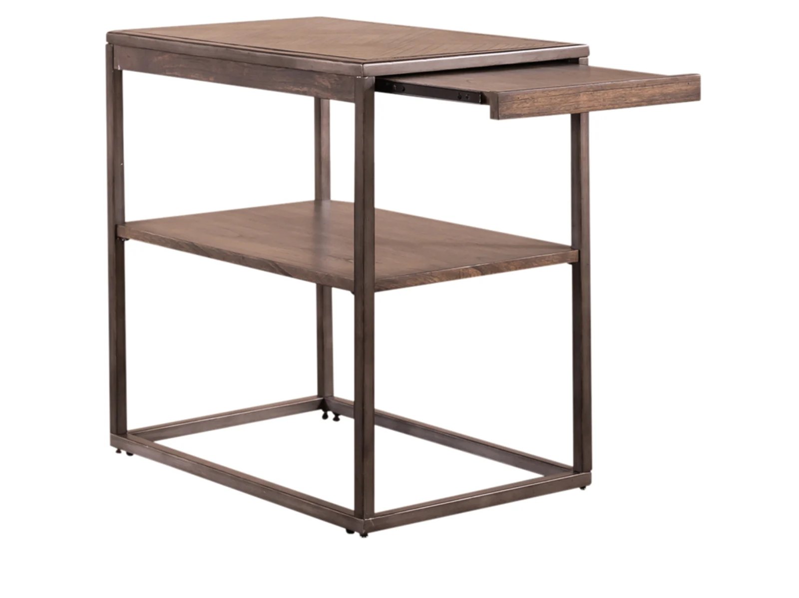 & Free ShippingSimplify your urban space with the Jamacha Chairside Table. Crafted of rubberwood solids, metal tubes and mindy veneers, this piece features a tobacco finish, a diamond match veneer pattern, a lower level shelf for additional storage, and an appealing pull out tray perfect for placing your drinks. This modern side table would make a great addition to your contemporary feeling space.