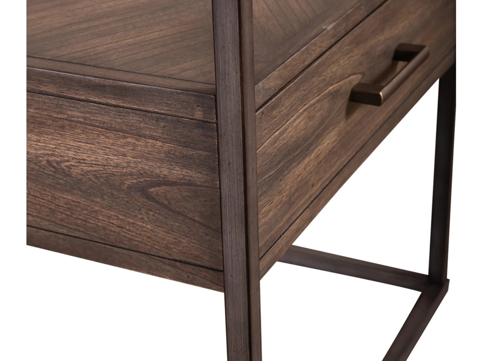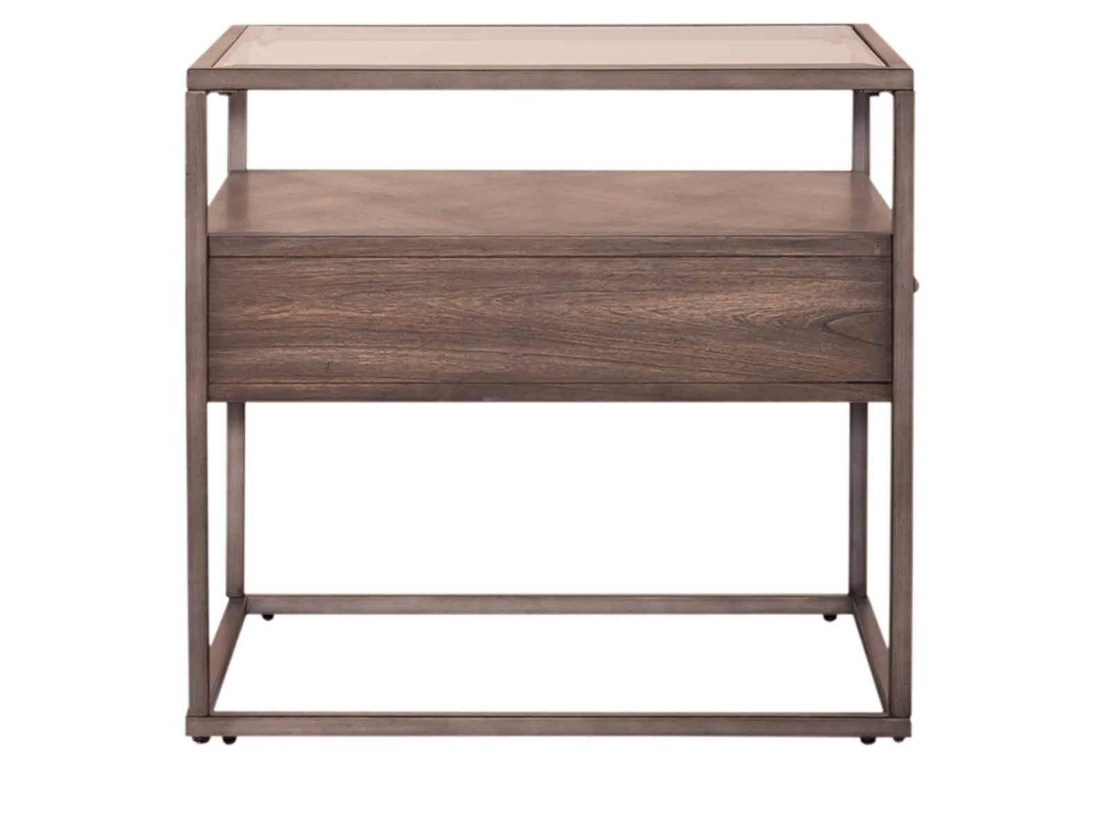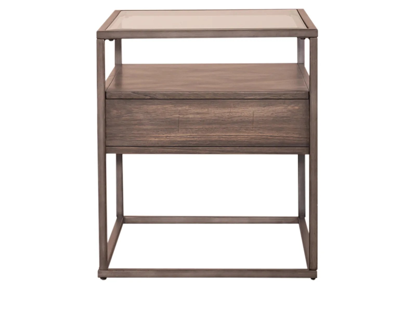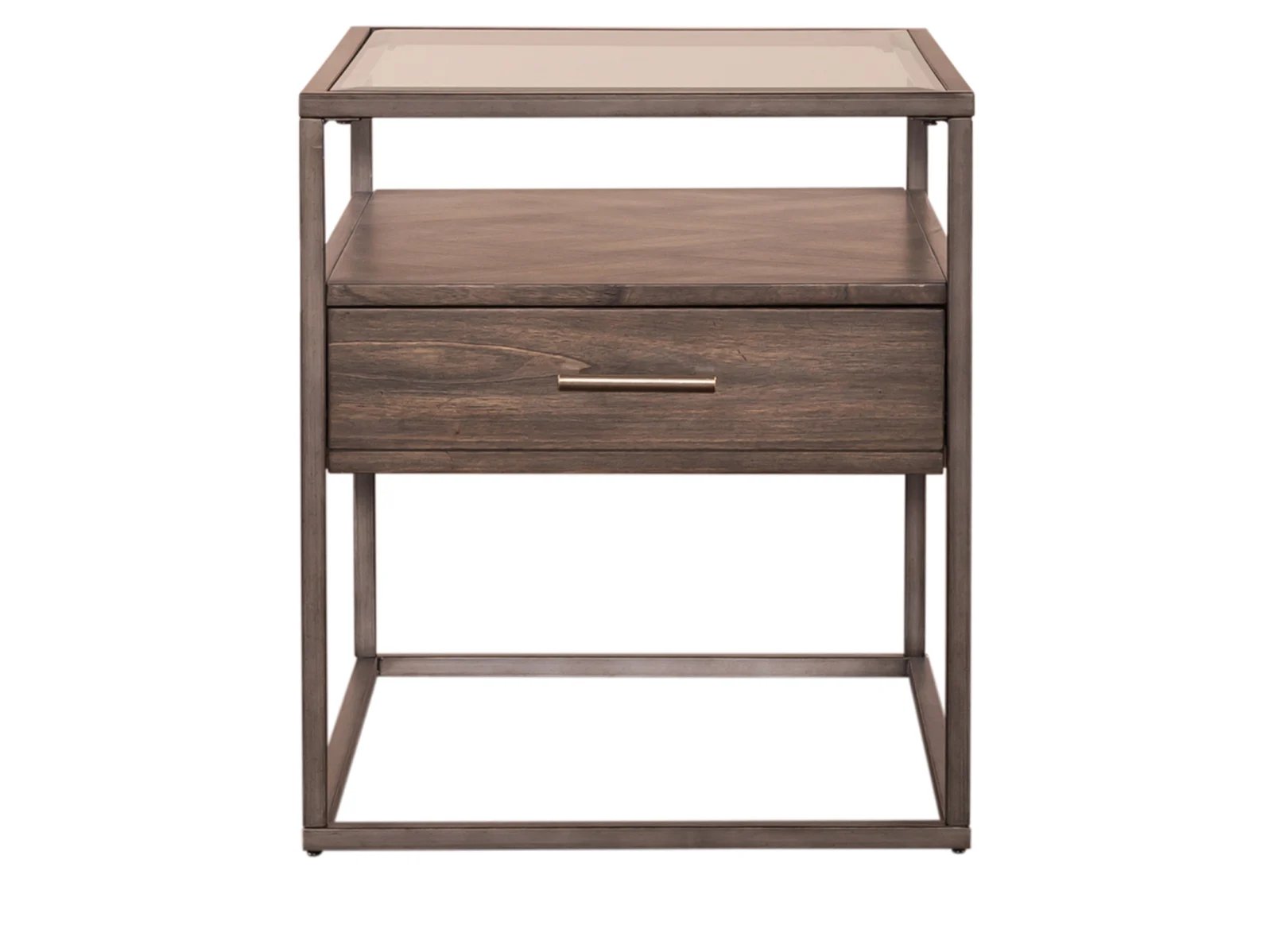 & Free ShippingSimplify your urban space with the Jamacha End Table. Crafted of rubberwood solids, metal tubes and mindy veneers, this piece features a tobacco finish, one full extension drawer, an open shelf for additional storage, and an appealing beveled glass top. This modern end table would make a great addition to your contemporary space.