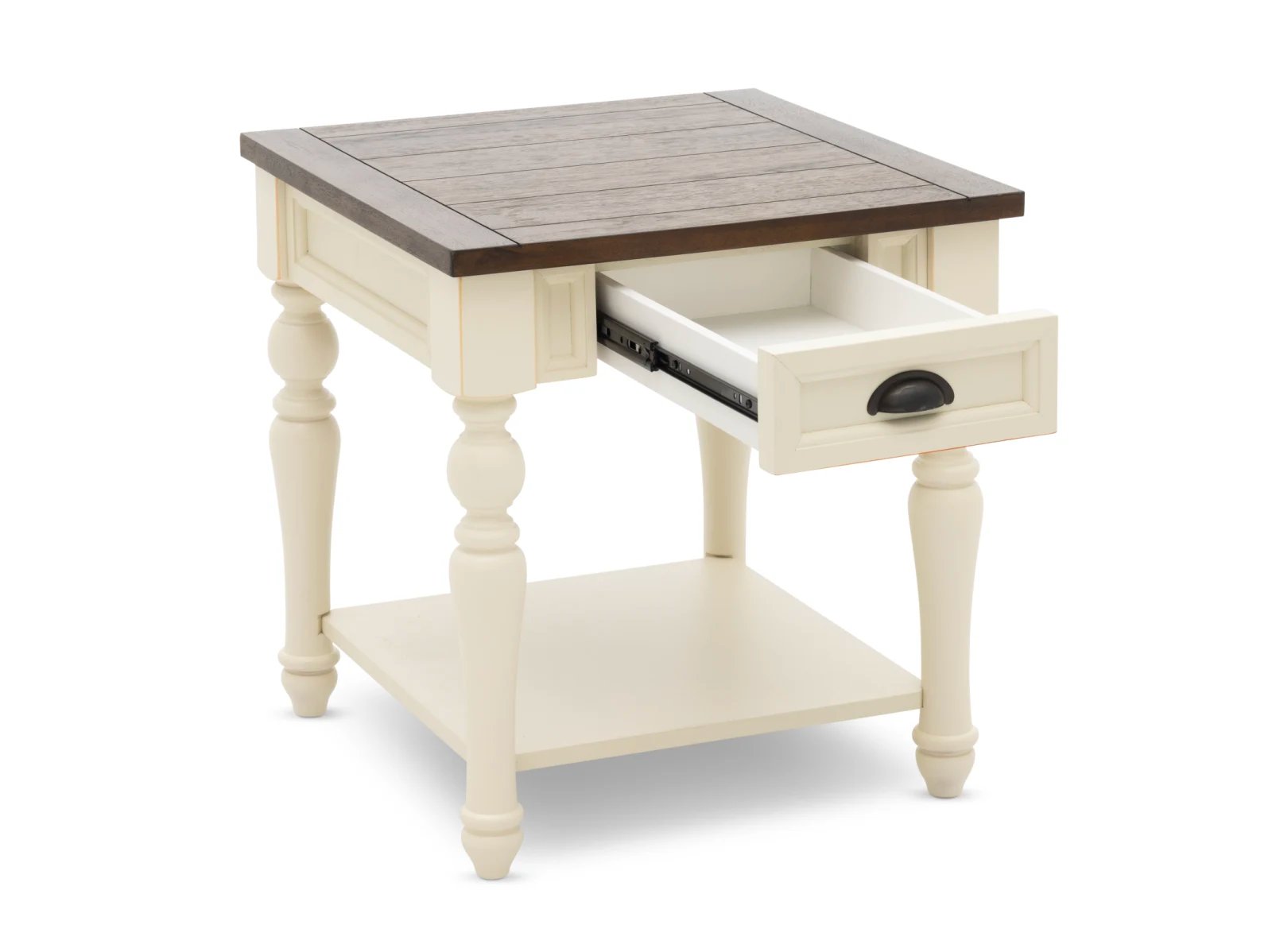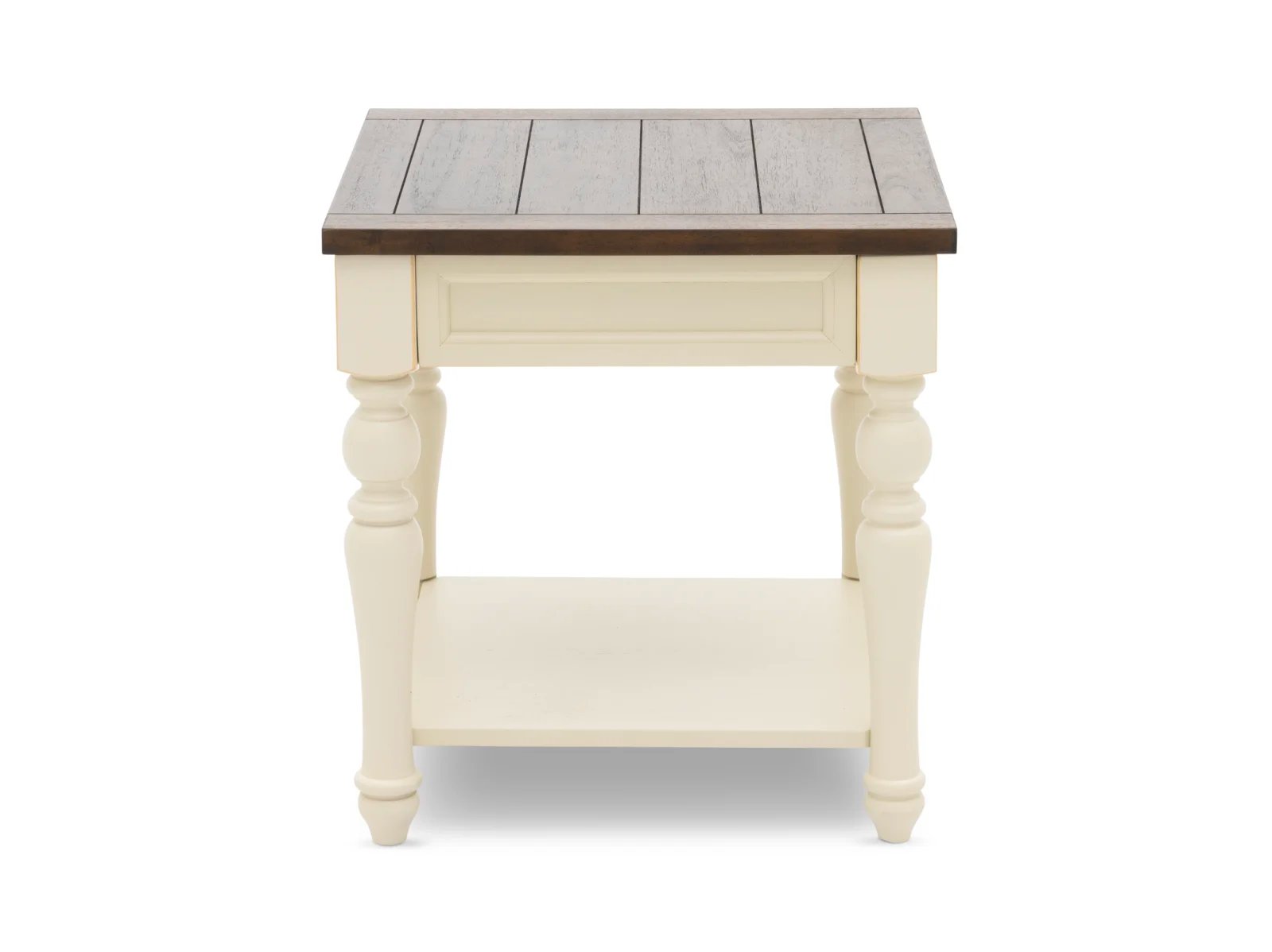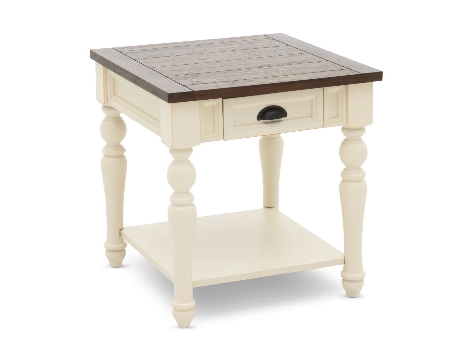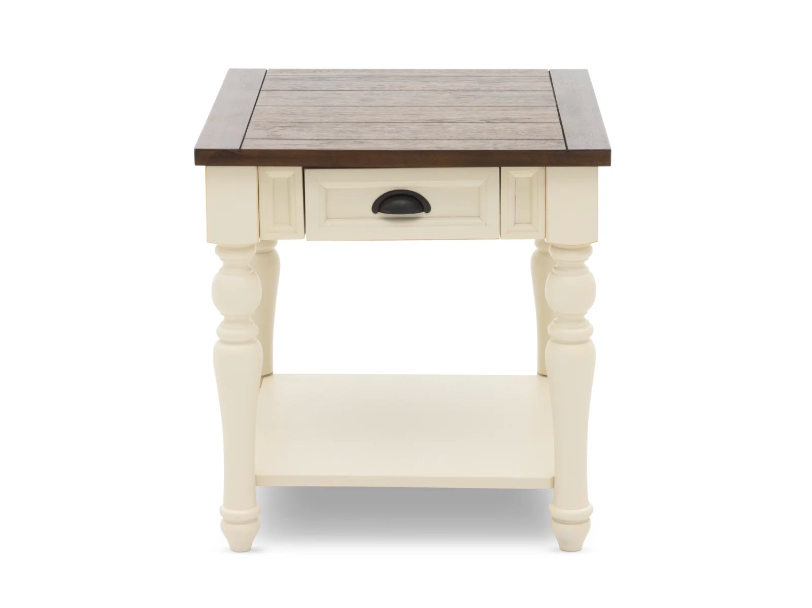& Free ShippingInfuse your living space with farmhouse charm using the Jayla End Table. Its gracefully turned legs and inviting two-tone ivory and mocha finish blend seamlessly with any farmhouse or cottage decor. Perfect as a side table or accent piece, the Jayla End Table adds both style and functionality to your living room. Explore matching sofa bar and dining sets to create a unified living/dining area aesthetic.