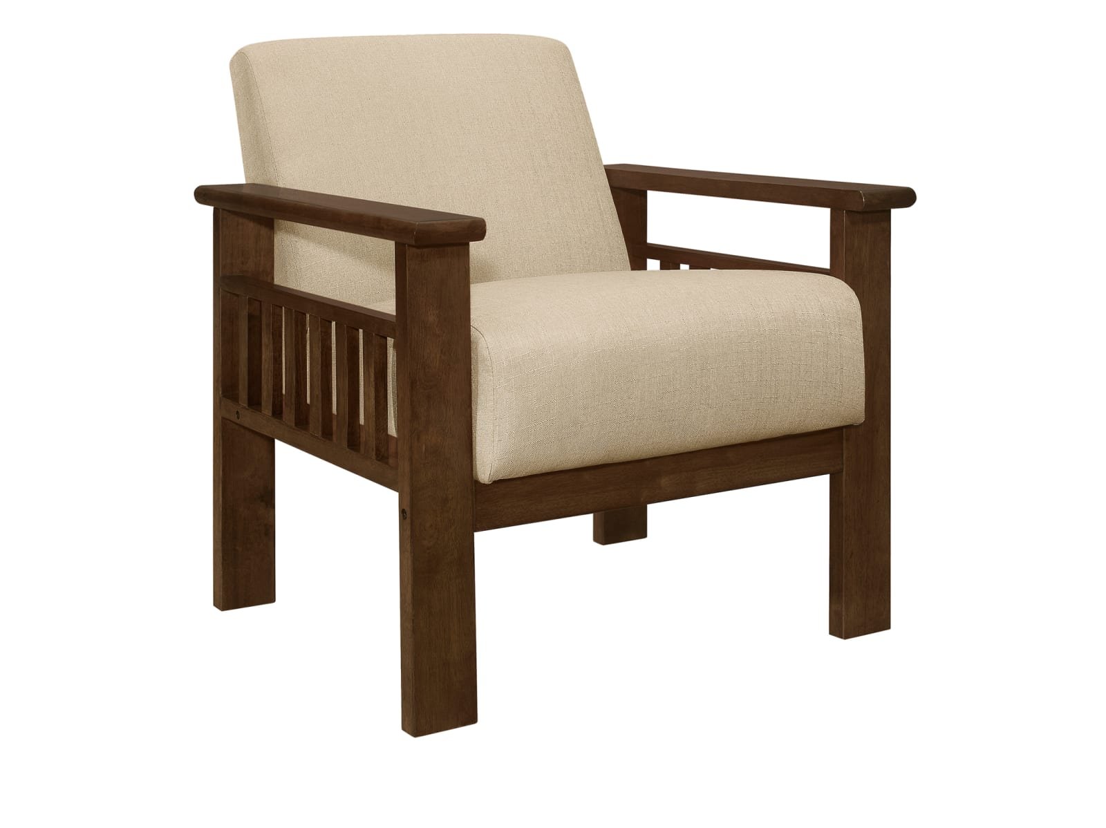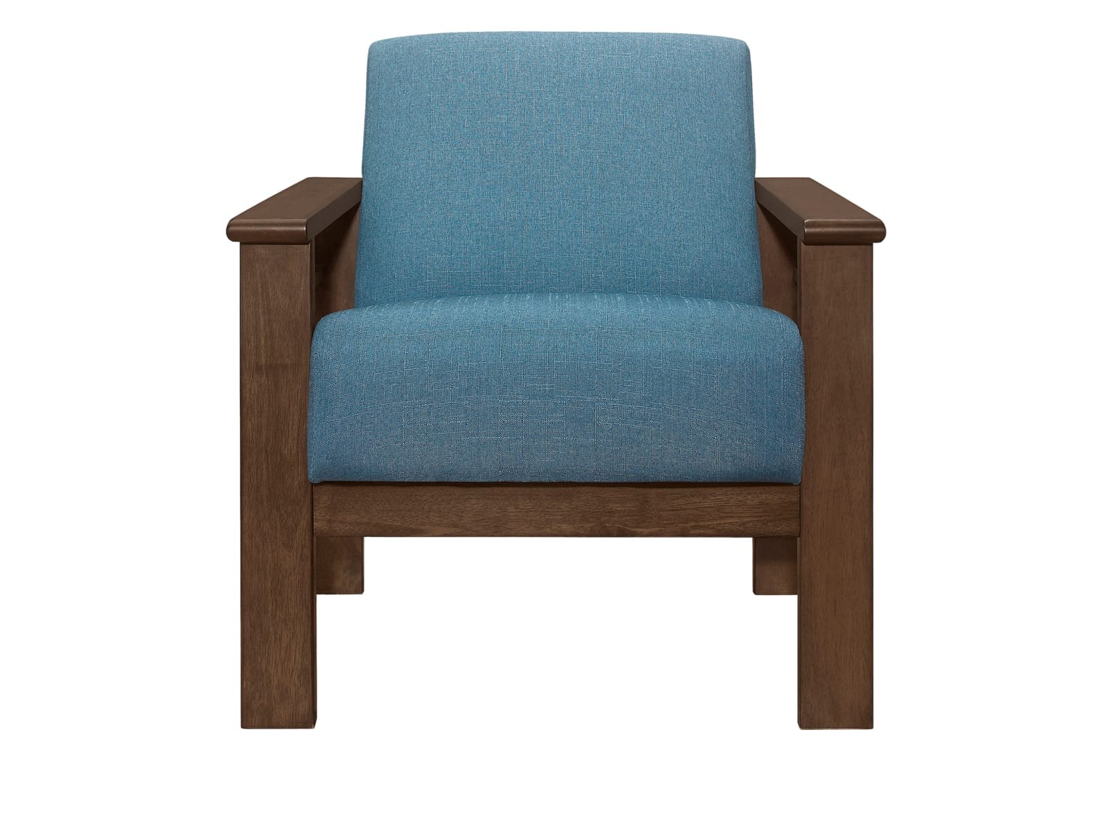 - solid rubber wood frame, legs and exposed wood arms in a walnut finish