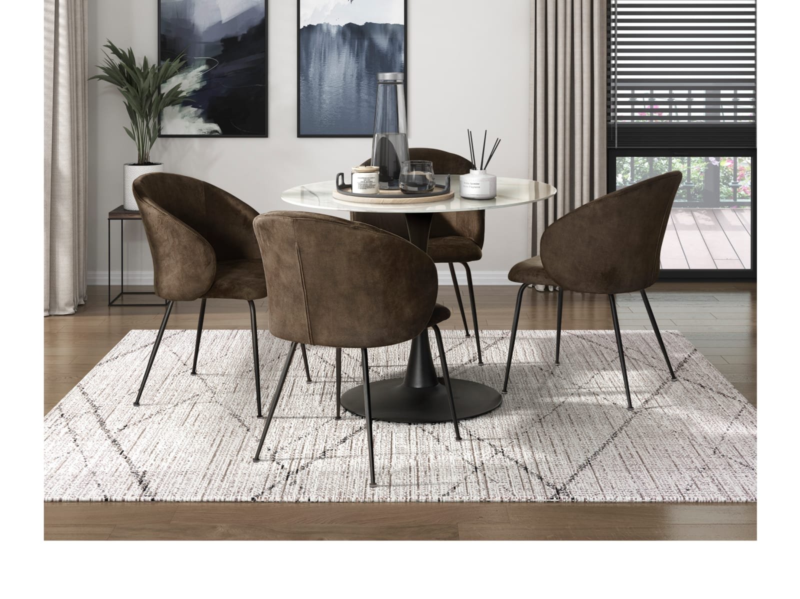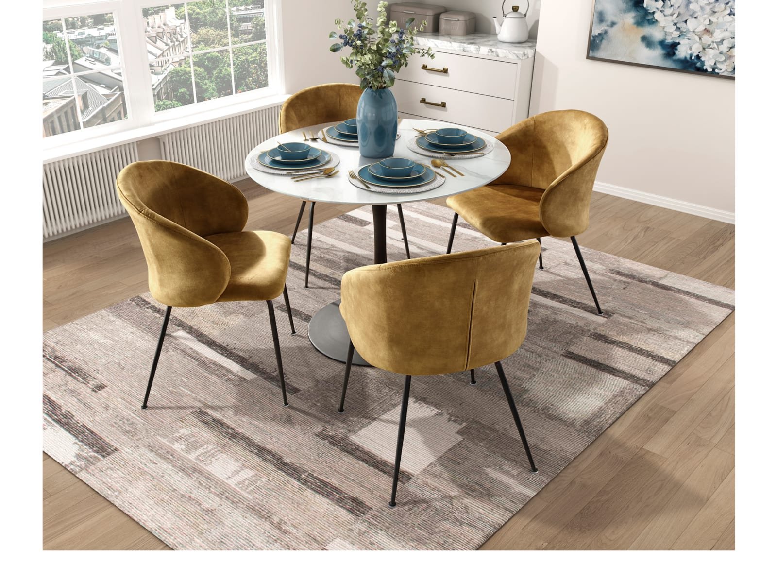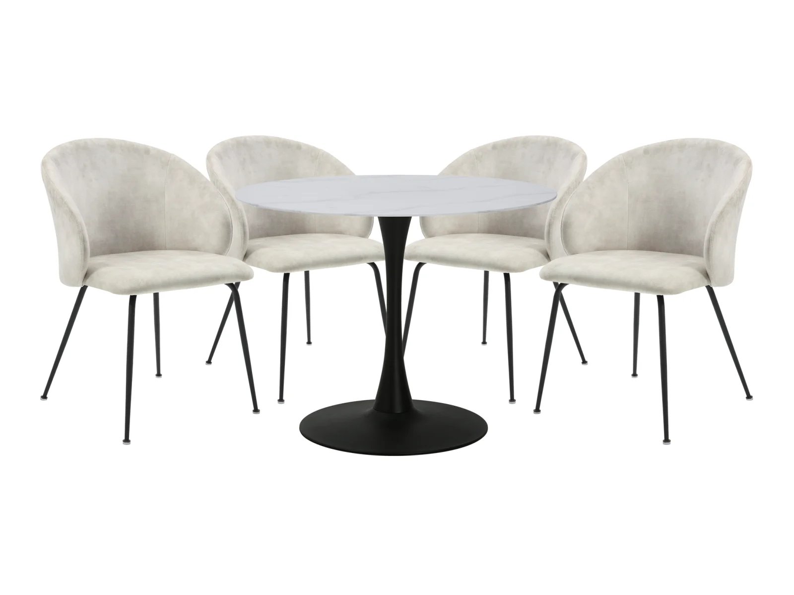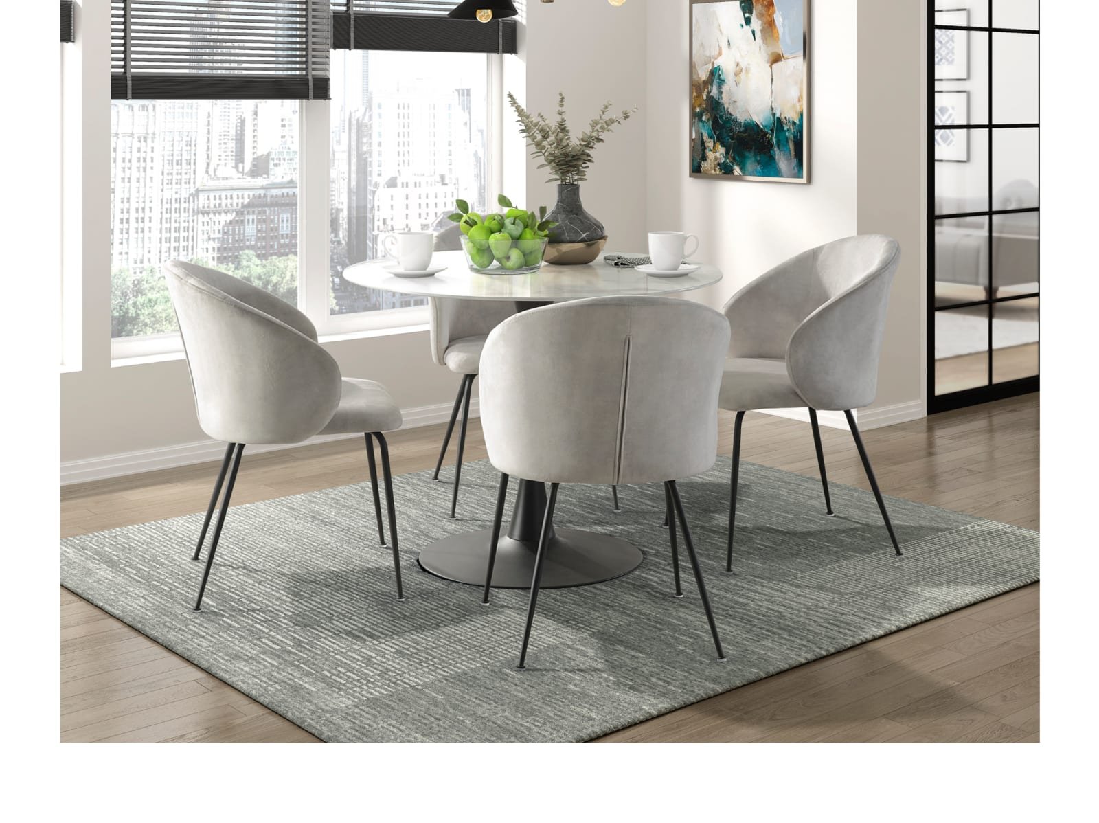 & Free ShippingElevate your dining experience with the Kailua 5-Piece Dining Set. This modern set features a sleek, black metal tulip base that supports a stunning marble-print tempered glass tabletop. The white hue of the tabletop elegantly complements any dining room decor, creating a sophisticated and inviting atmosphere. Perfect for both everyday meals and special occasions, the Kailua Dining Set combines style and durability for lasting enjoyment. Upgrade your dining space with this chic and contemporary set today!