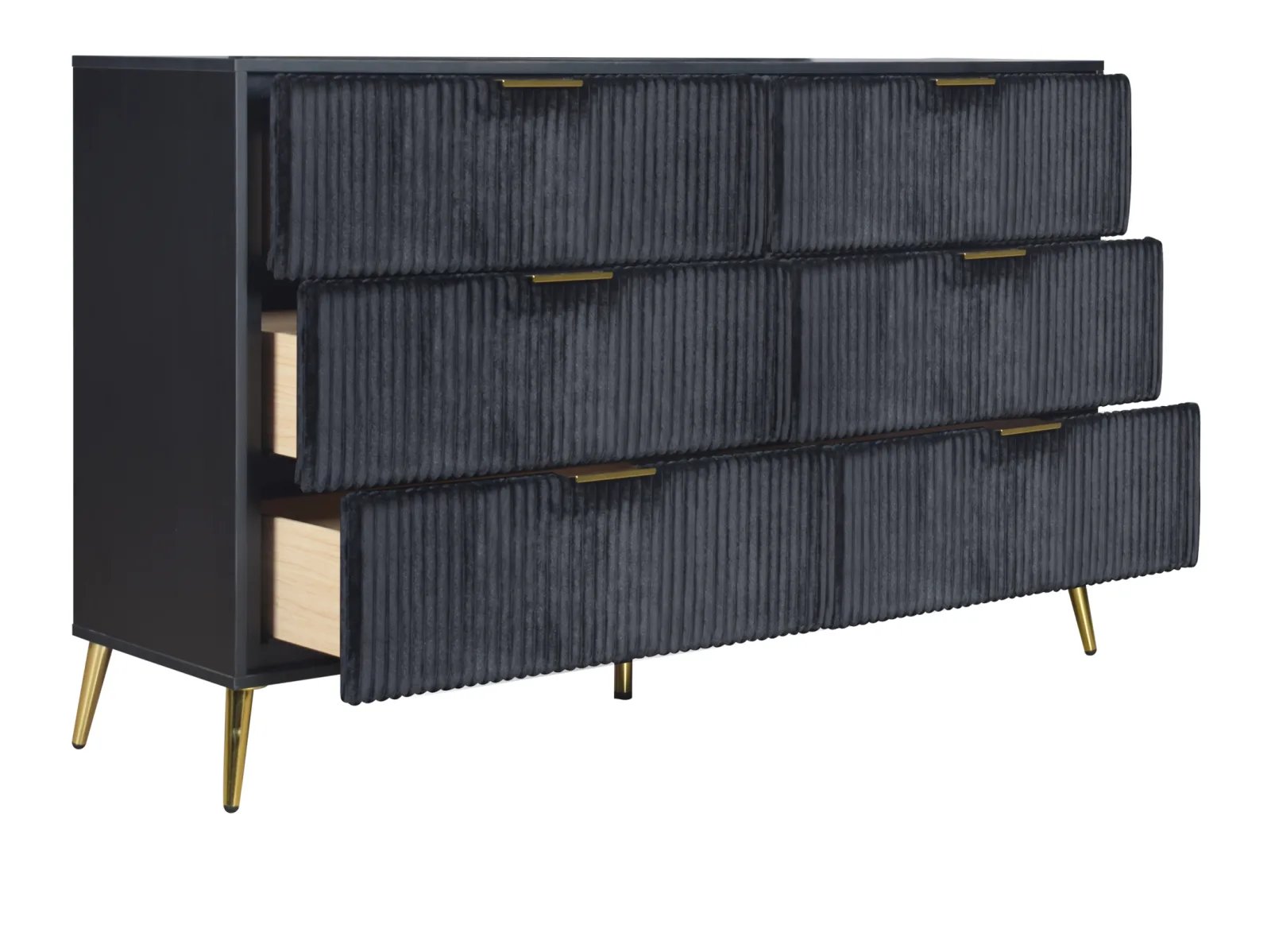 & Free ShippingThe Kandell Bedroom Collection offers a blend of contemporary design and comfort to elevate your bedroom decor. Crafted with MDF and paper laminate, this collection features a corduroy upholstered headboard that adds a touch of luxury and coziness to the space. The center drawer glides ensure smooth and easy access to your belongings, while the English dovetailed drawers provide durability and timeless charm. Available in black or gray, the Kandell Bedroom Collection offers a choice to suit your personal style and complement your existing decor. With its modern aesthetics and practical functionality, this collection creates a serene and inviting retreat for a restful night’s sleep.