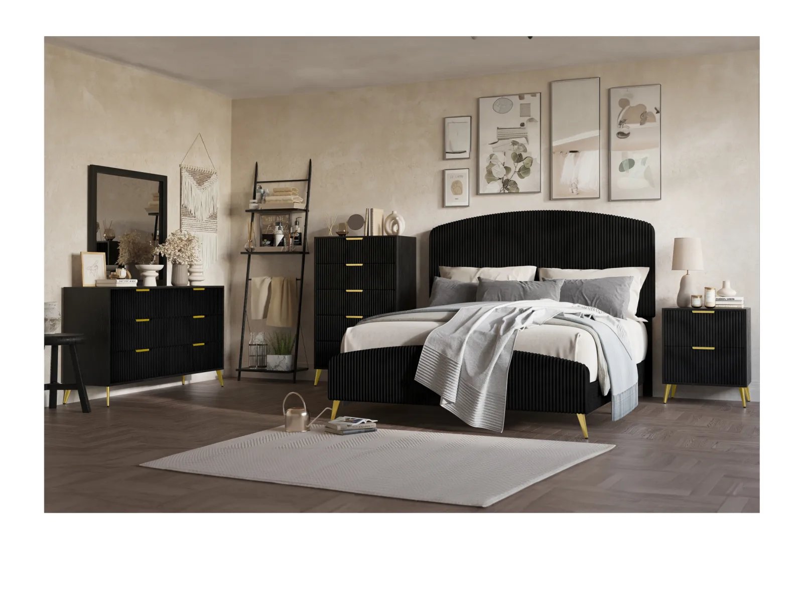 The Kandell Bedroom Collection offers a blend of contemporary design and comfort to elevate your bedroom decor. Crafted with MDF and paper laminate, this collection features a corduroy upholstered headboard that adds a touch of luxury and coziness to the space. The center drawer glides ensure smooth and easy access to your belongings, while the English dovetailed drawers provide durability and timeless charm. Available in black or gray, the Kandell Bedroom Collection offers a choice to suit your personal style and complement your existing decor. With its modern aesthetics and practical functionality, this collection creates a serene and inviting retreat for a restful night’s sleep.