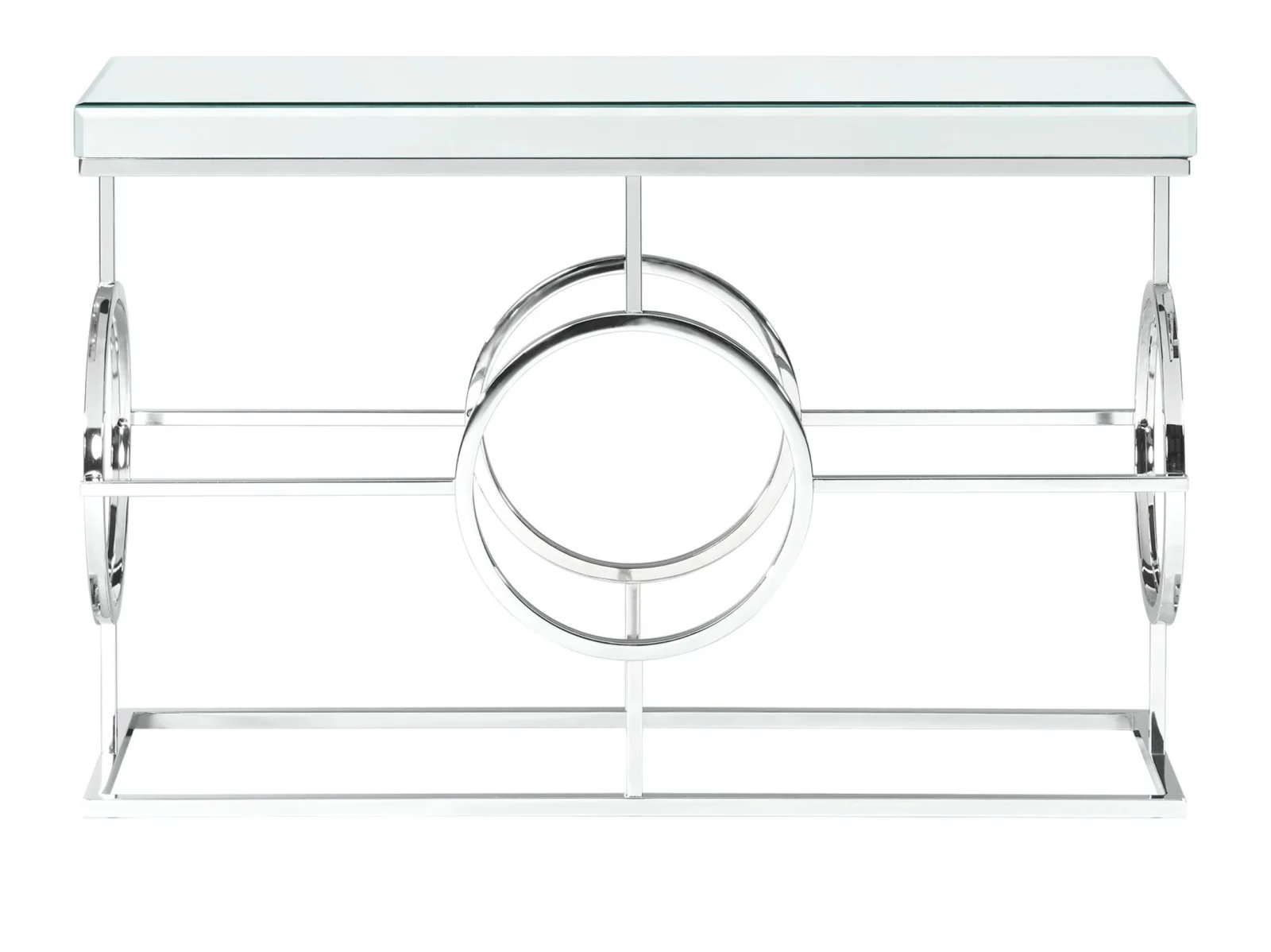 The Katie Rectangle Mirrored Sofa Table will have you feeling like a queen in your living room! This accent table features a mirrored table top design, taking glam style to the next level. The table base features an intricate design, one that you will admire more and more every day. The sleek, chrome finish is going to pair well with any existing, glamorous décor you might already have. Add this ultra glam accent table to your home today for a look that will always be in style.
