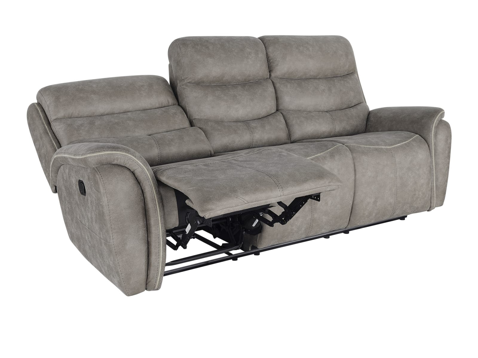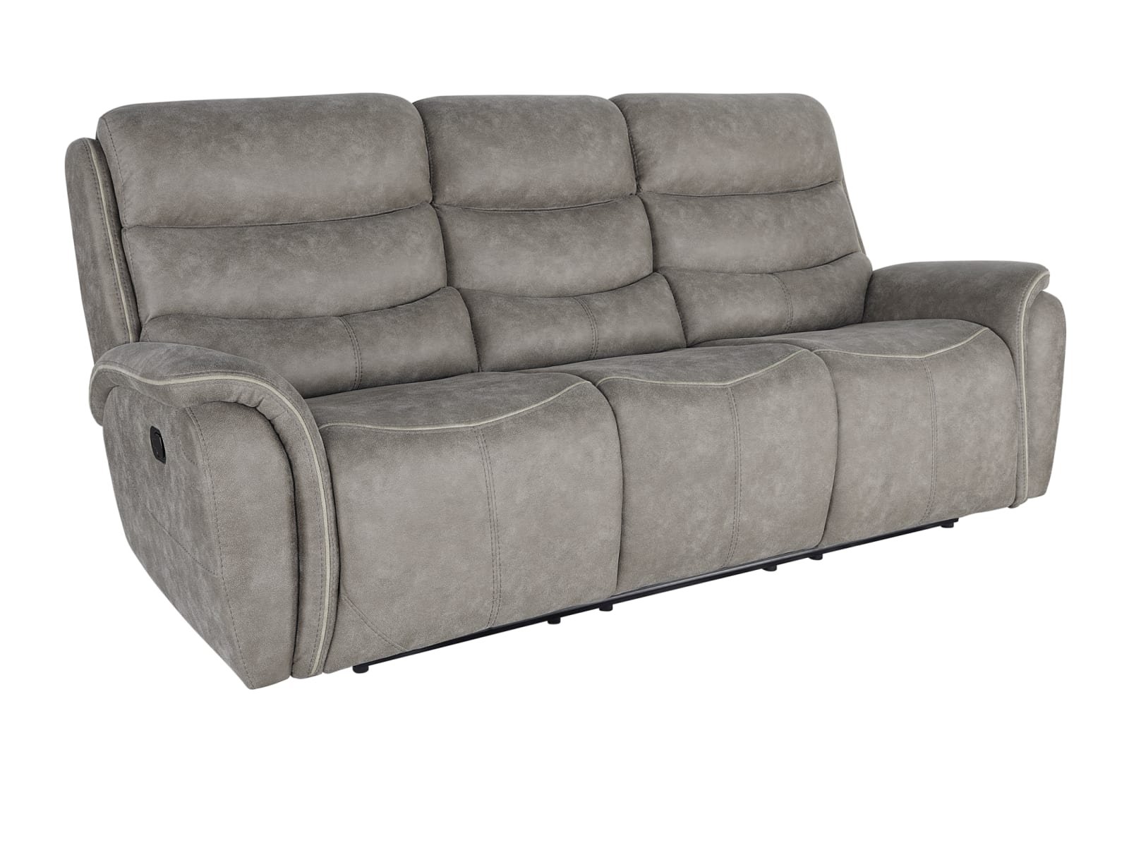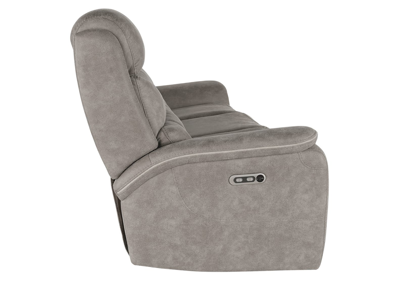 & Free ShippingExperience the epitome of comfort and style with the Kenosha Reclining Sofa with Power Headrests and Footrests in Gray. Immerse yourself in the plush, suede-like softness of its dappled gray upholstery, meticulously crafted from a blend of polyester and PU fabric. Tailored to perfection, with triple roll backs, bucket seats, and wrap-around arms adorned with tasteful contrasting welt, this sofa exudes sophistication. Unwind effortlessly with fully upholstered chaise recliner footrests and adjustable headrests, customizable at the touch of a button. Built for enduring comfort and support, its hardwood and manufactured wood frames, resilient foam and polyester-wrapped coil spring cushions, and no-sag seat suspension ensure years of enjoyment. Stay connected with built-in USB chargers, while its versatile style effortlessly complements any decor, making it an essential addition to your living space.