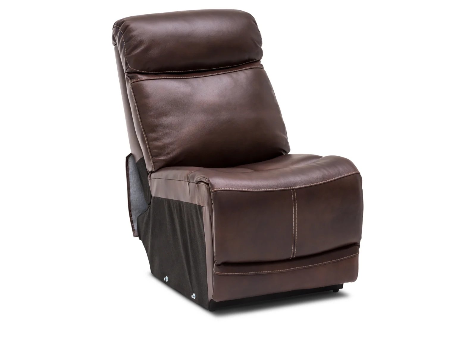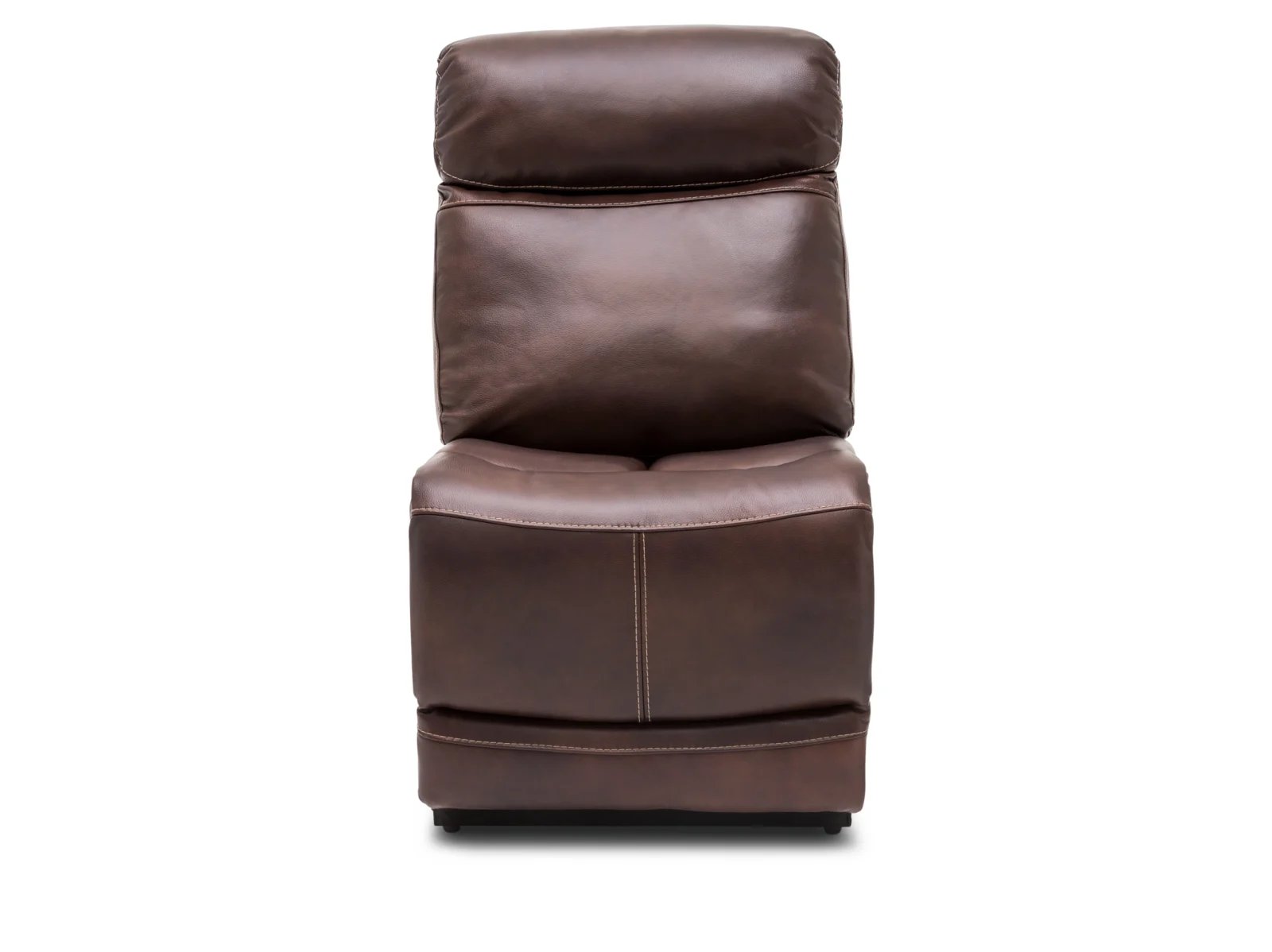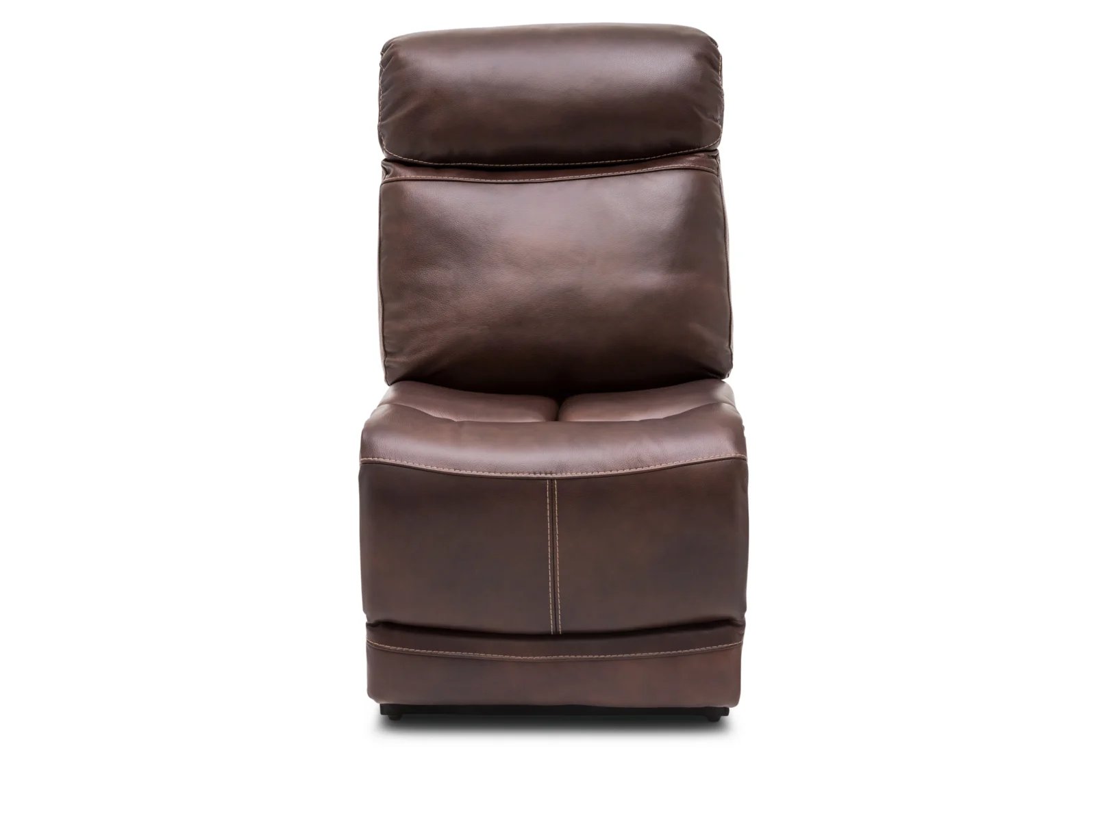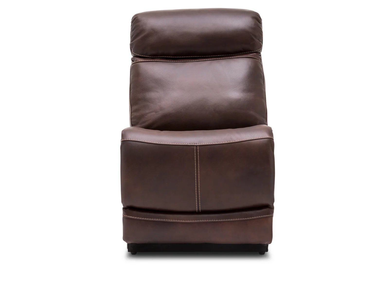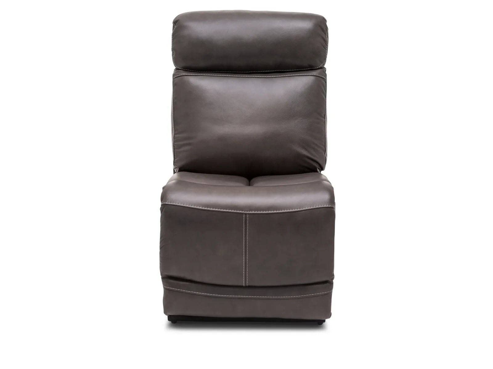 Curate the sectional of your dreams using the stylish Kinetic Armless Chair. As one of three available modular pieces, this armless chair is designed to fit a customizable configuration, allowing you to lounge as you please. Built on a hardwood-engineered frame, the Kinetic pairs its strong base with luscious foam Dacron cushioning to create unparalleled softness along its high-pub back and seat. Boasting a triple-power adjustment system, you can achieve full-body comfort thanks to the power reclining motion, including the power headrest and power lumbar support. It all comes together in supple top-grain leather, available in Brown and Gray for optimal personalization. Get curious and creative with the Kinetic Armless Chair.