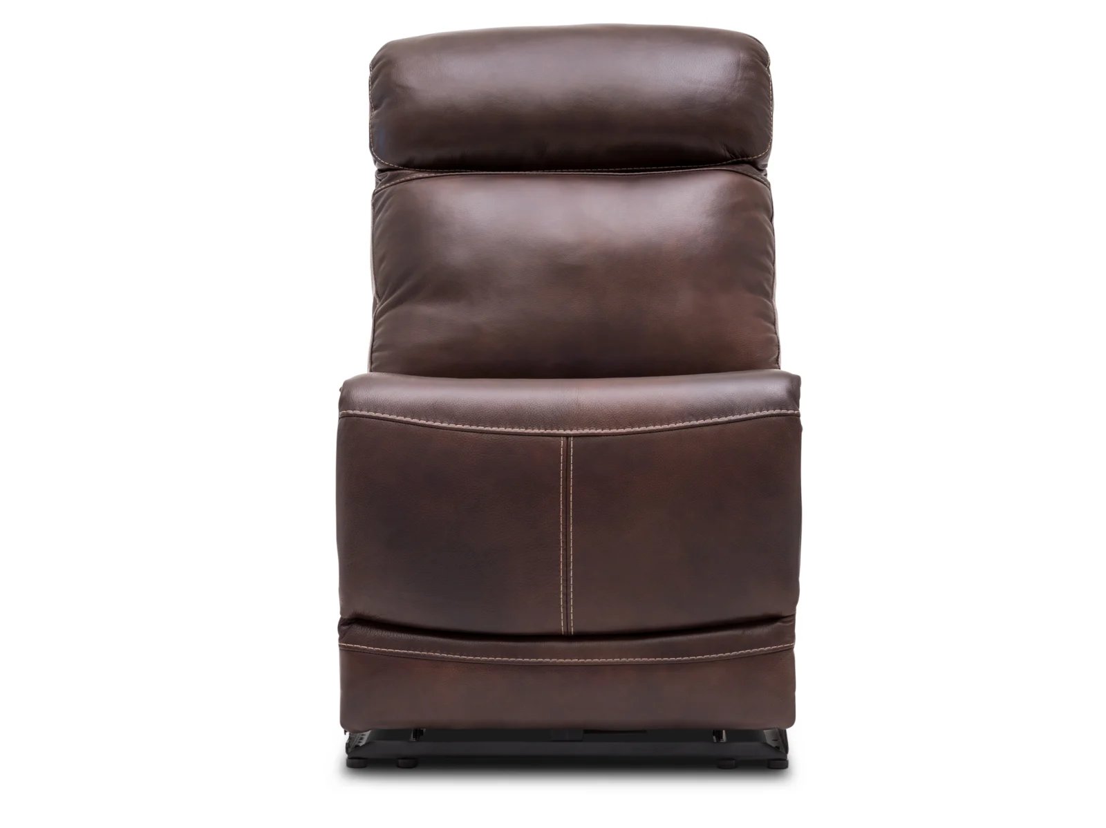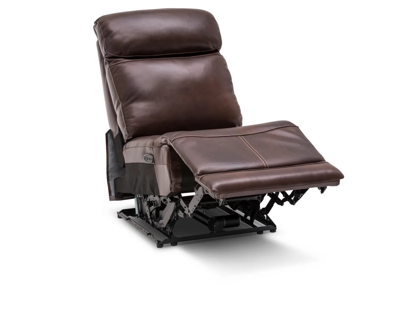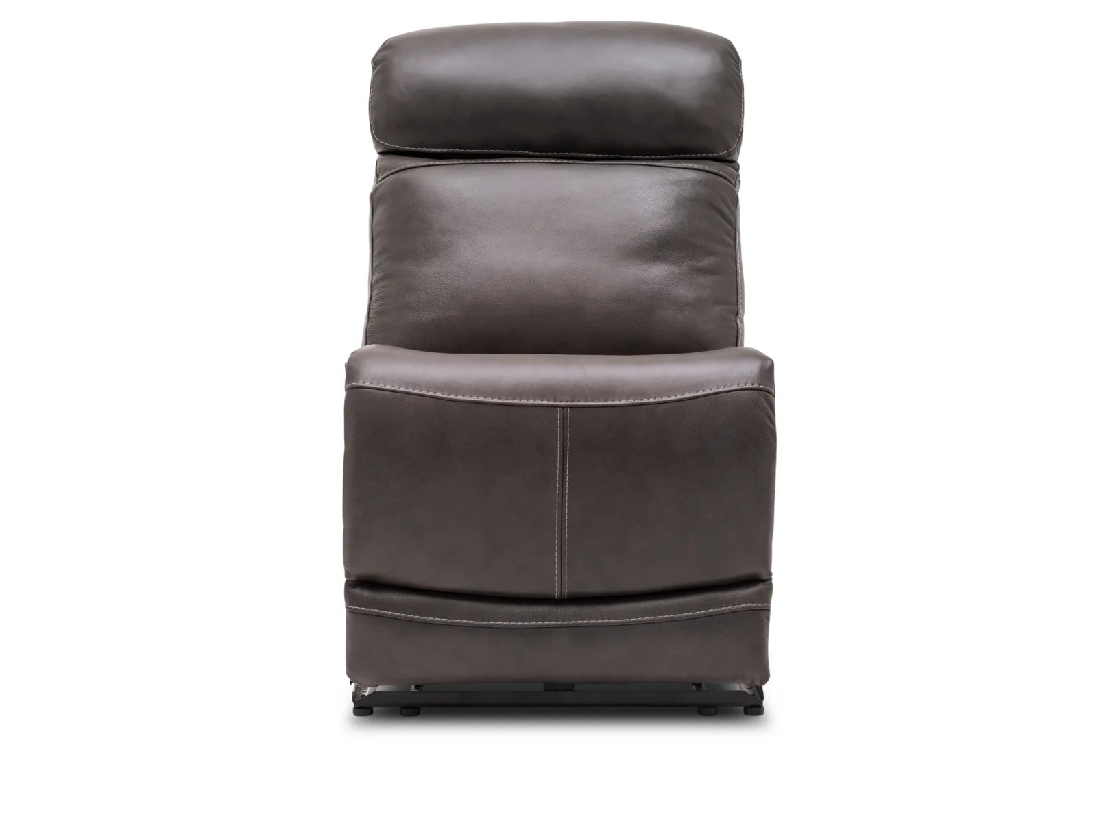 Innovative technology and refined luxury come together to create the Kinetic Armless Power Recliner. As one of three modular pieces available in this collection, the armless recliner is designed to be incorporated into the sectional of your dreams. A hardwood-engineered frame adorned in foam Dacron cushioning gives the Kinetic its signature plush feel, delivering full-body comfort from any angle. Triple-power adjustments support you from head to toe with its power headrest and power lumbar support, evoking modern style and functionality with every position. The Kinetics’ simple sophistication is complete with top-grain leather upholstery, which comes available in your choice of Brown or Gray for customization. Start creating your at-home lounging oasis with the Kinetic Armless Power Recliner.