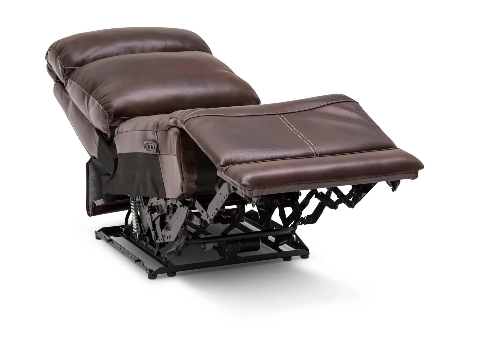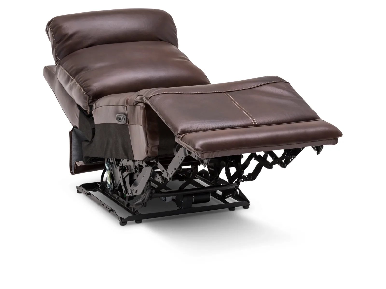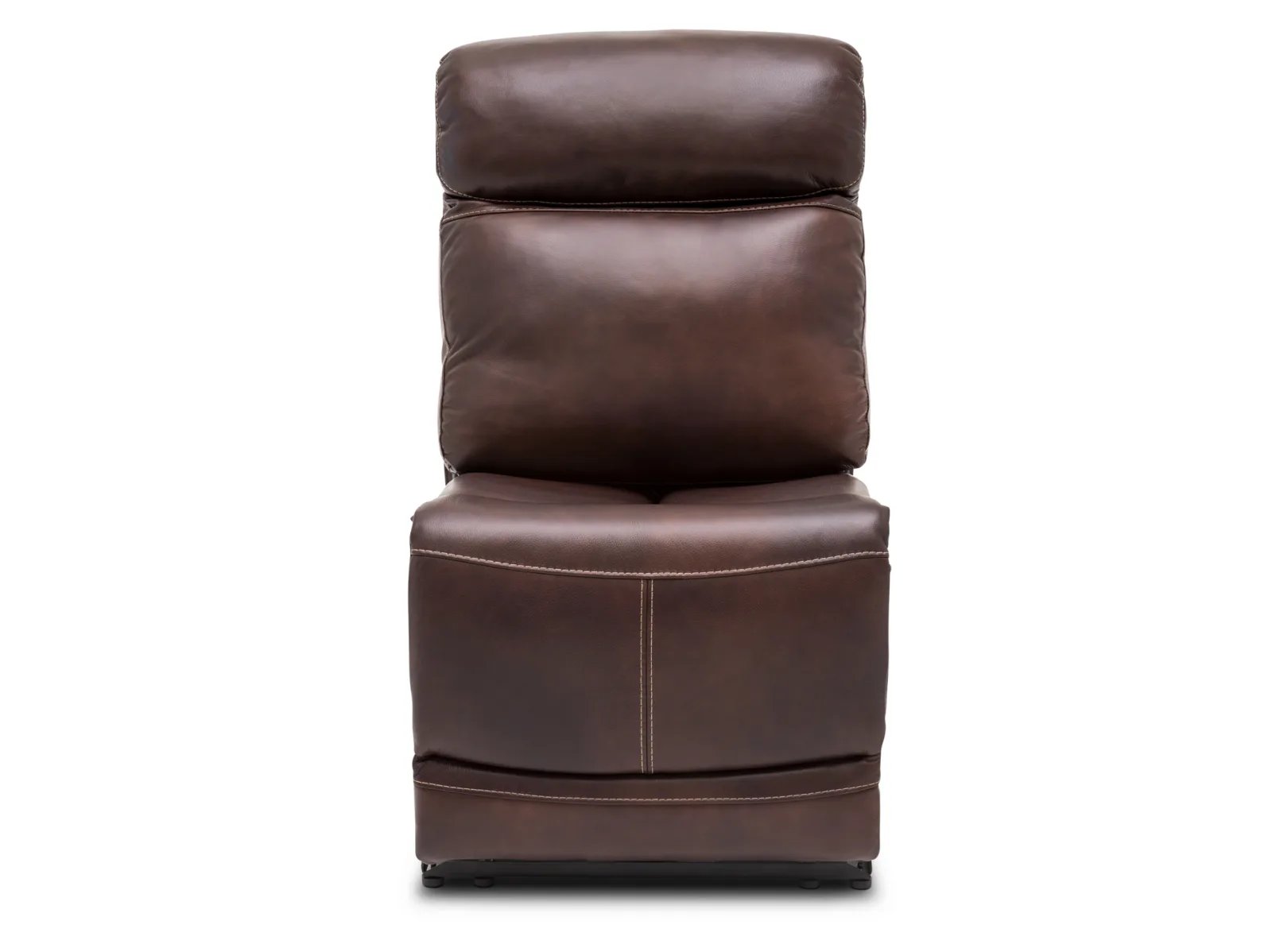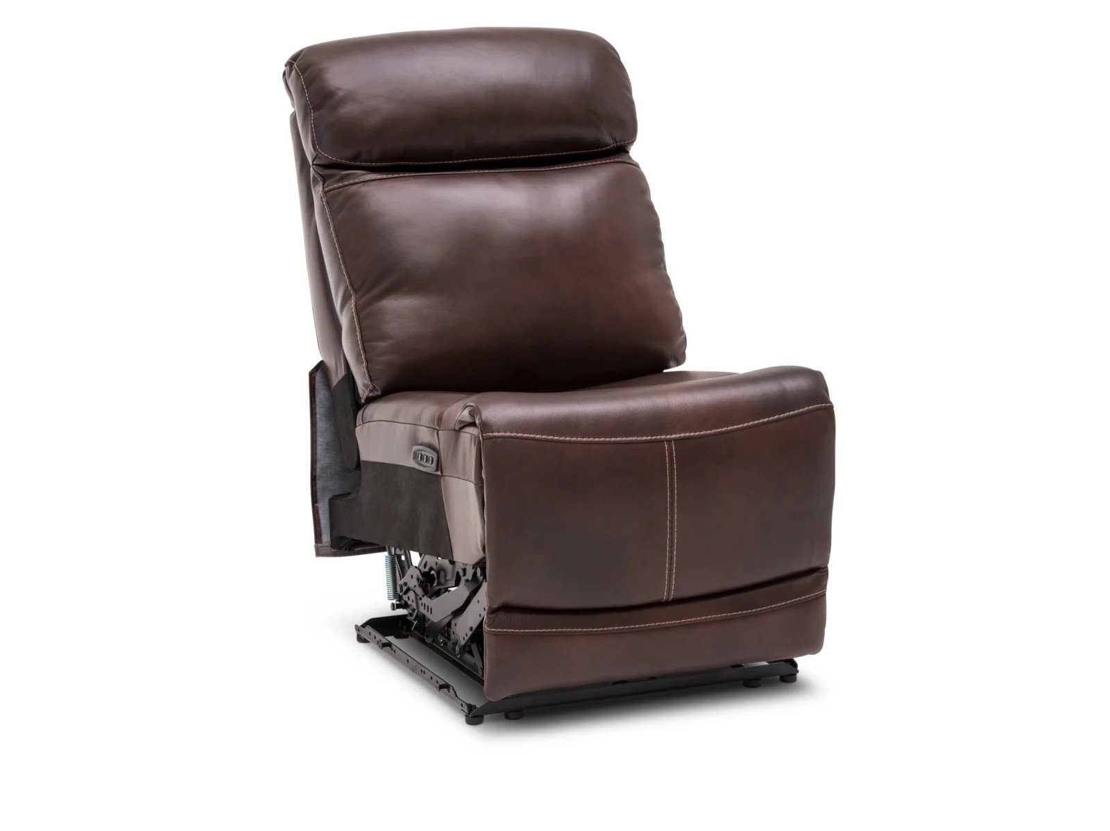 Innovative technology and refined luxury come together to create the Kinetic Armless Power Recliner. As one of three modular pieces available in this collection, the armless recliner is designed to be incorporated into the sectional of your dreams. A hardwood-engineered frame adorned in foam Dacron cushioning gives the Kinetic its signature plush feel, delivering full-body comfort from any angle. Triple-power adjustments support you from head to toe with its power headrest and power lumbar support, evoking modern style and functionality with every position. The Kinetics’ simple sophistication is complete with top-grain leather upholstery, which comes available in your choice of Brown or Gray for customization. Start creating your at-home lounging oasis with the Kinetic Armless Power Recliner.