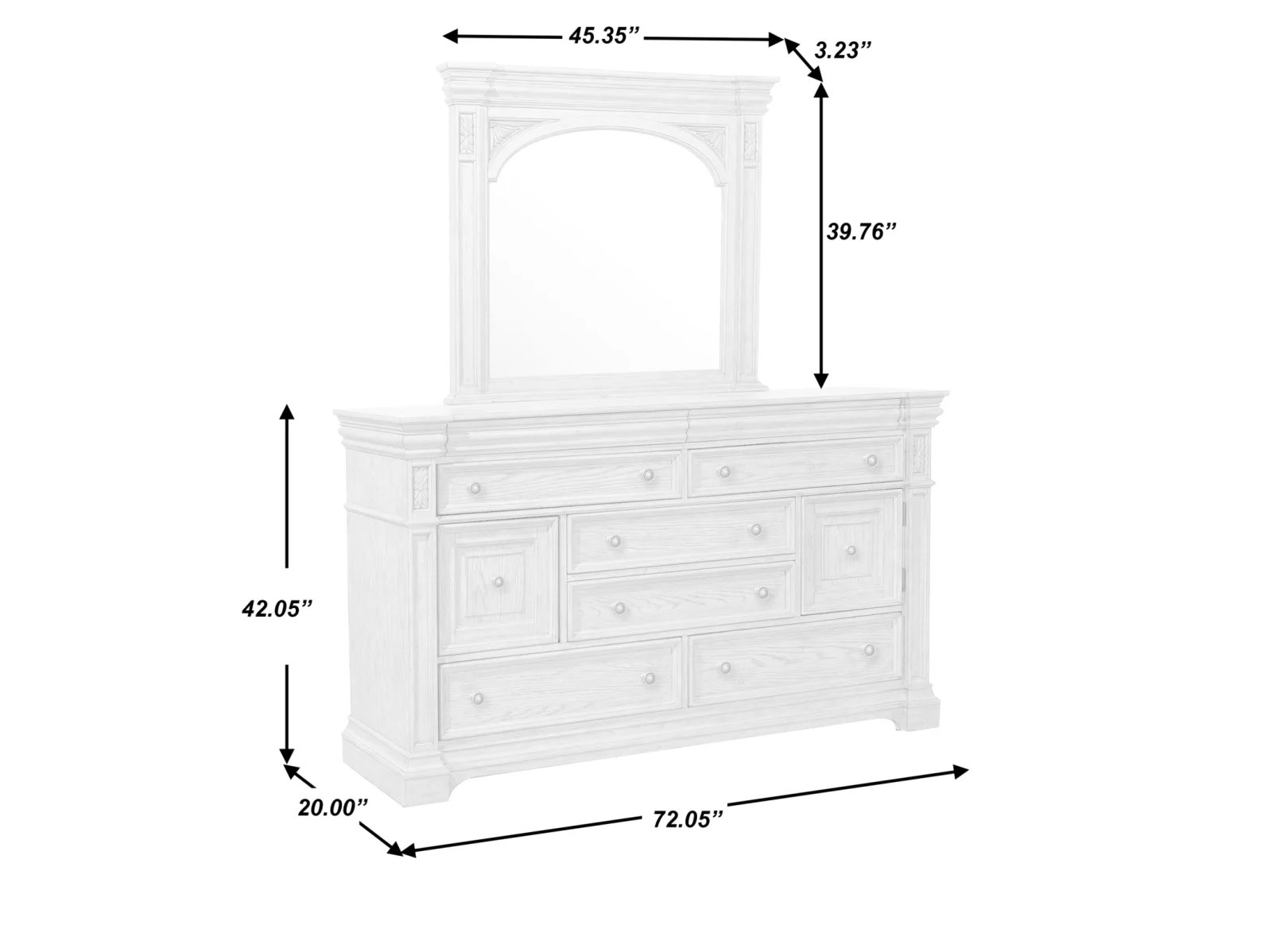 Dimensions 72 × 20 × 42 in