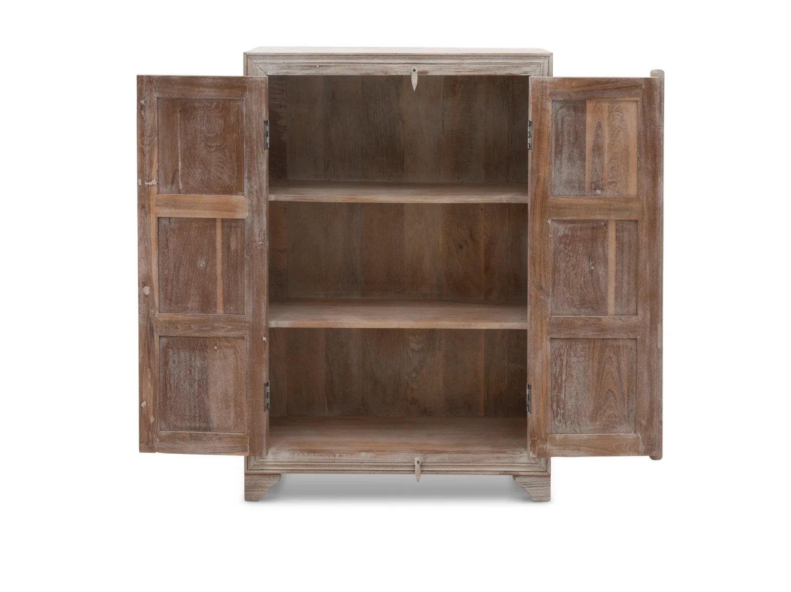 & Free ShippingThe Kochi Cabinet will transform your home into a sophisticated space full of artistic allure. This piece boasts a traditional-bohemian style that makes its storage capabilities even more attractive, adorned with carved cabinet doors atop carved bracket feet. Your beloved items will remain safe and untouched in this tall rectangular-shaped cabinet, which comes together in a natural finish with white undertones for that perfectly worn look. Curate timeless, eclectic style with the Kochi Cabinet.