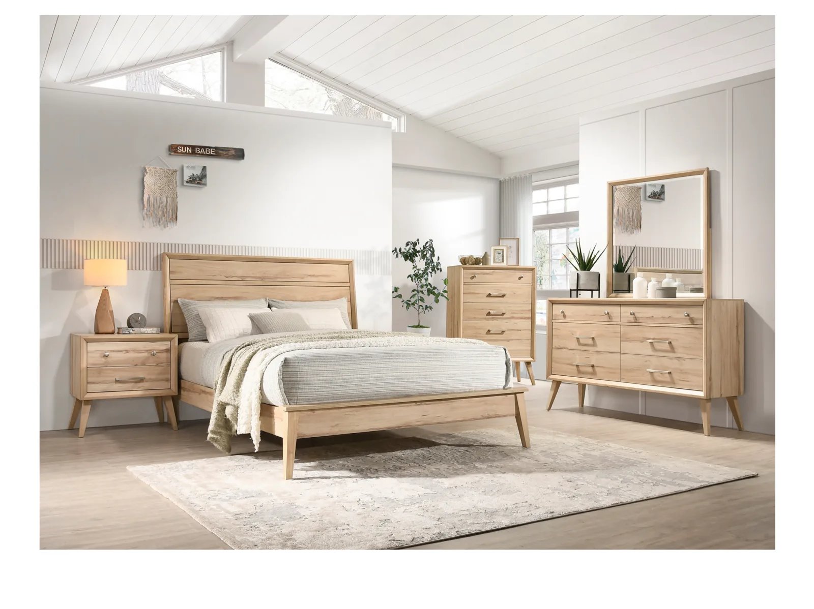 & Free ShippingThe Koloa Collection’s Mid-Century-inspired design lends timeless style to help you achieve the modern aesthetic you desire for your bedroom. The look of natural wood is presented in the form of the melamine that covers the collection, its natural hue providing neutral complement to your décor. The bed’s unfettered lines define the classic style, from the support legs to the framing, each element furthers the timeless design.