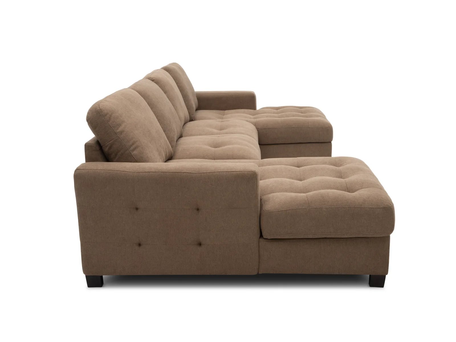 A reimagining of our virally-popular Caruso Sectional, the Krisha 3 Pc. Sleeper Double Chaise Sectional is ready to transform your living room. This impressive sectional features a generous U-shaped seating area, and it’s outfitted with two storage chaises, hidden storage compartments, and a pullout trundle bed to accommodate overnight guests. Refreshing touches like button tufting on its chaise cushions and along the sides of its sleek track arms ensure the Krisha is both stylish and versatile, plus it features hidden fabric loop pull-handles to make accessing the internal storage areas quick and easy. Available in your choice of Dove gray or Cafe brown performance upholstery, the Krisha’s lively personality makes for a great addition to any space. Get the iconic Krisha 3 Pc. Sleeper Double Chaise Sectional today!