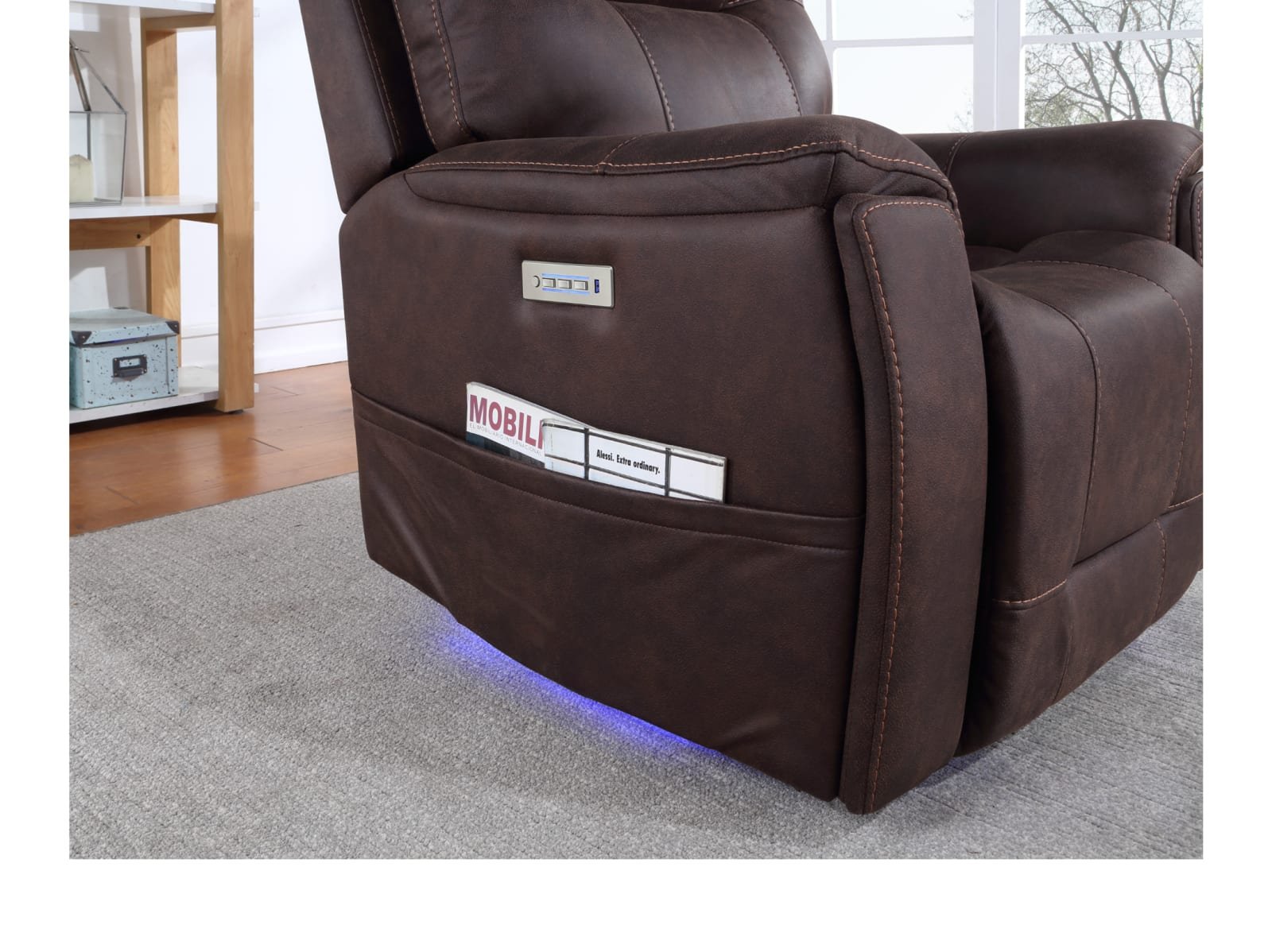 - Power headrest, power footrest and power lumbar