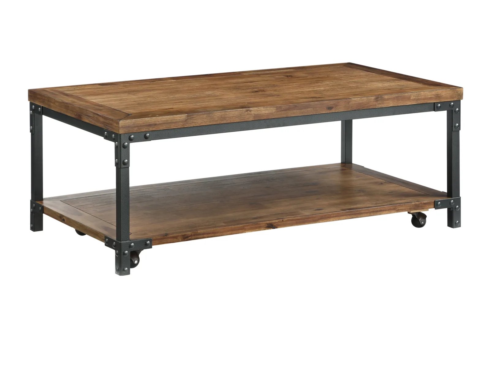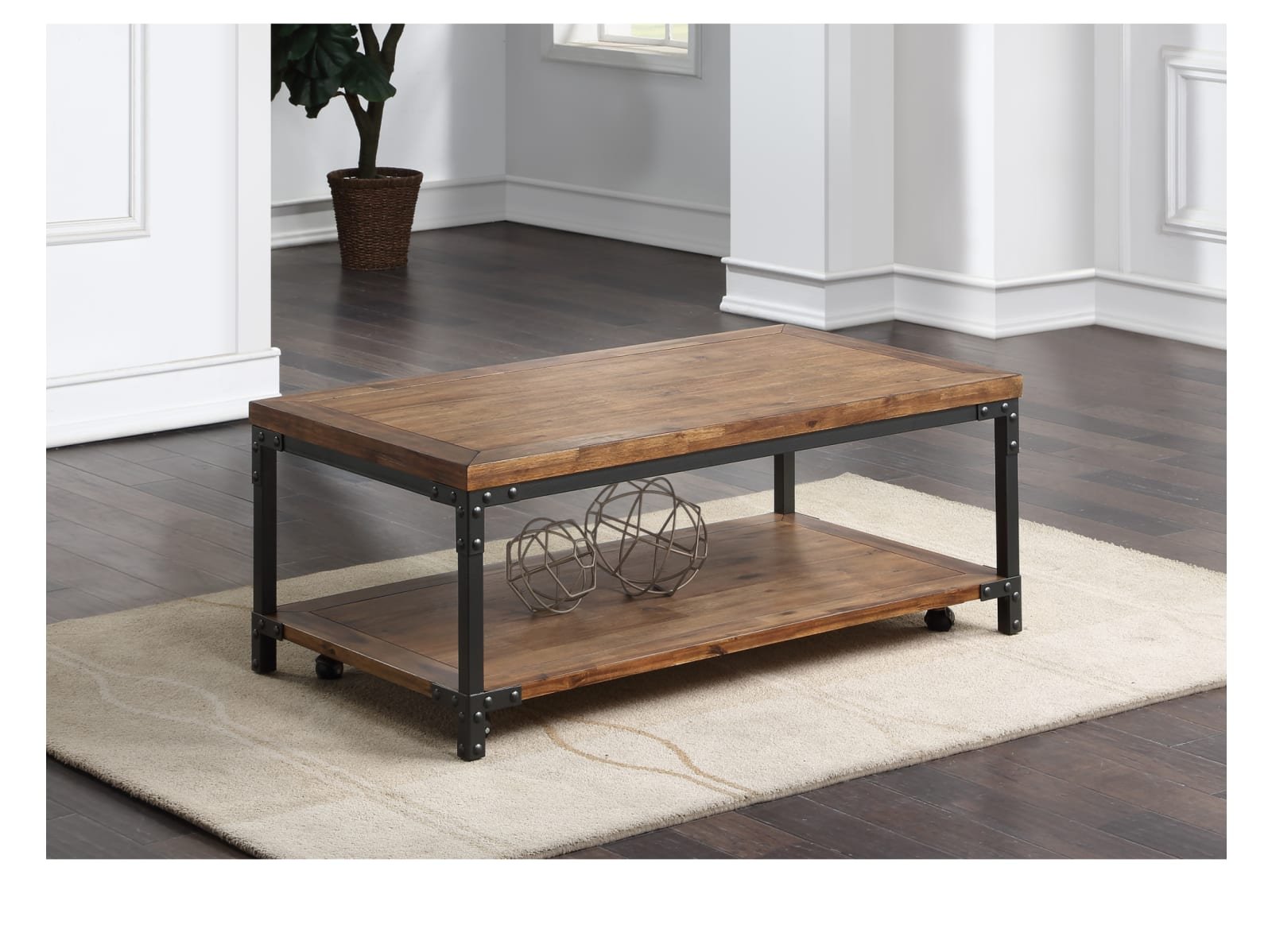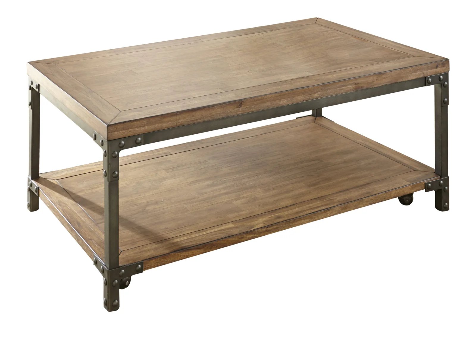 & Free ShippingThe best in mixed media styling combined with an antiqued honey finish and black metal frame make Lansing the perfect combination of rustic and industrial design. A great centerpiece, this Coffee Table adds a little attitude to any room plus it has a great bottom shelf to display additional article. Add the End Table for a great industrial look for today’s living areas.