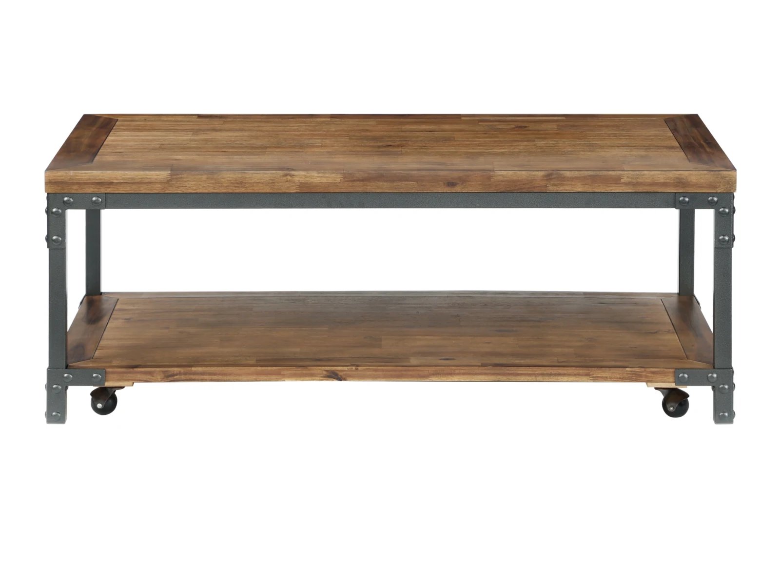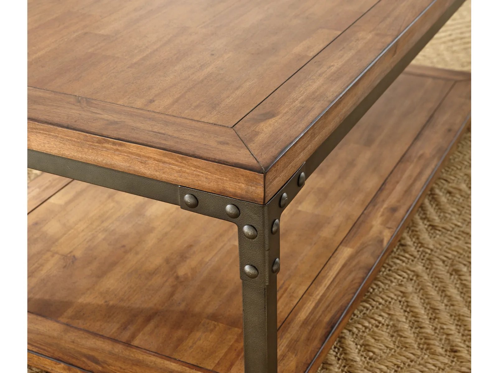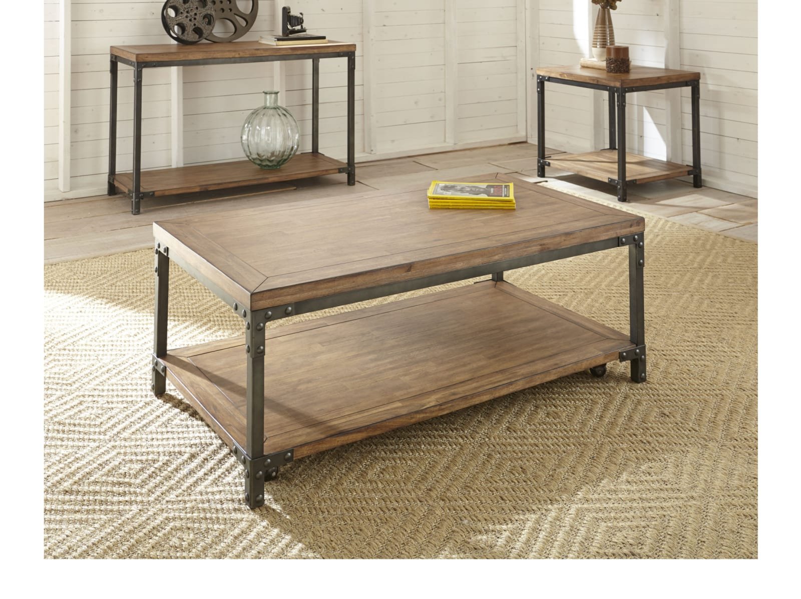 & Free ShippingThe best in mixed media styling combined with an antiqued honey finish and black metal frame make Lansing the perfect combination of rustic and industrial design. A great centerpiece, this Coffee Table adds a little attitude to any room plus it has a great bottom shelf to display additional article. Add the End Table for a great industrial look for today’s living areas.