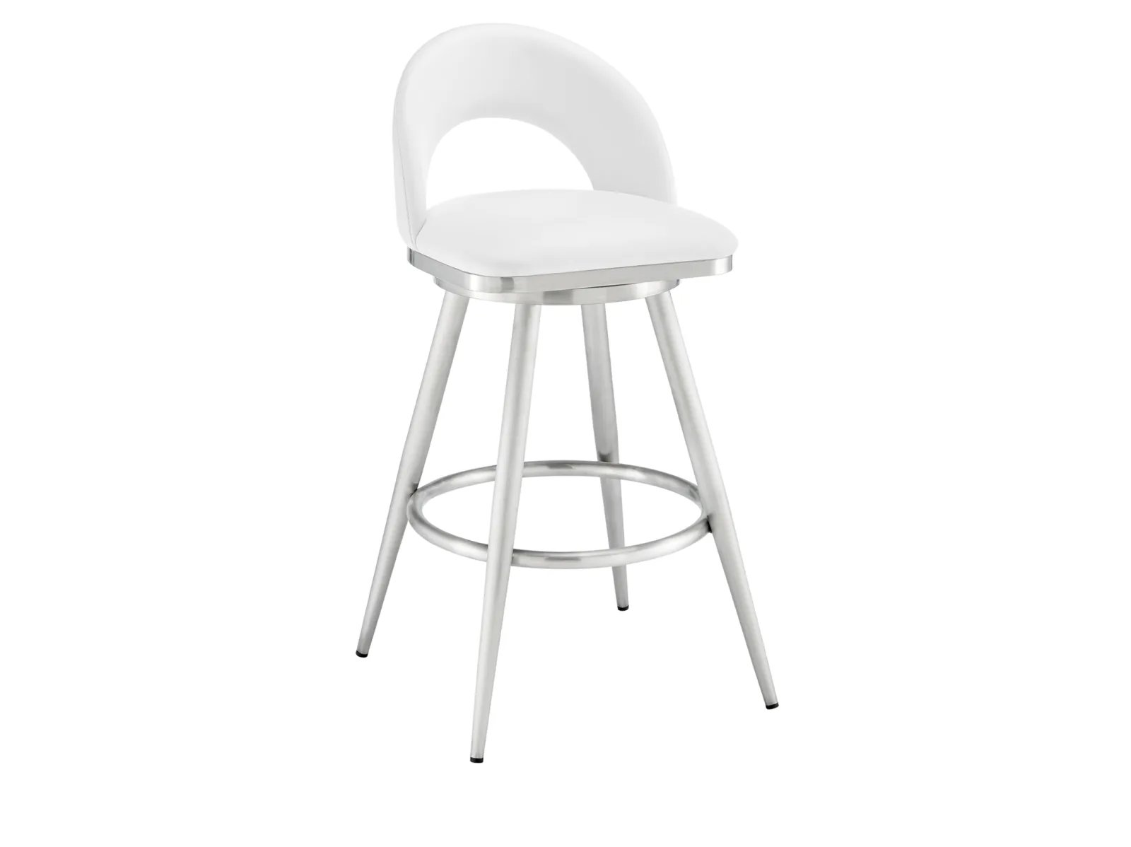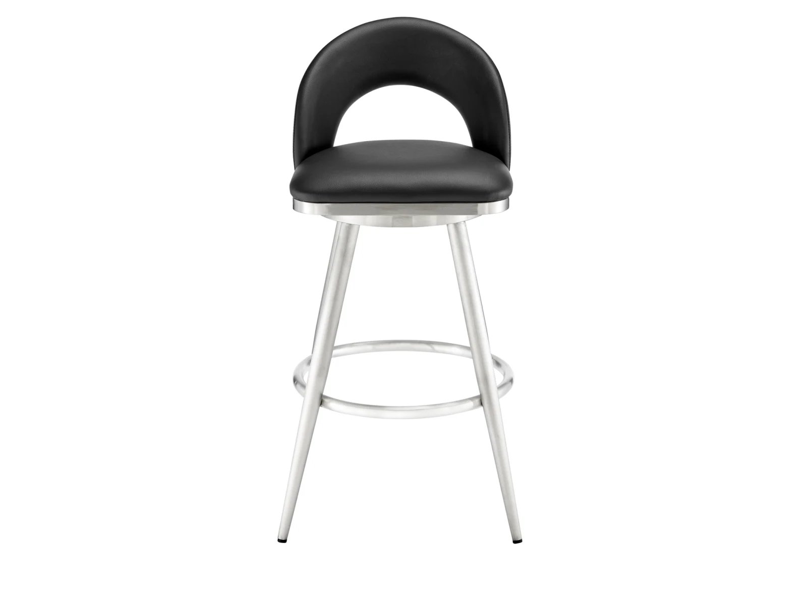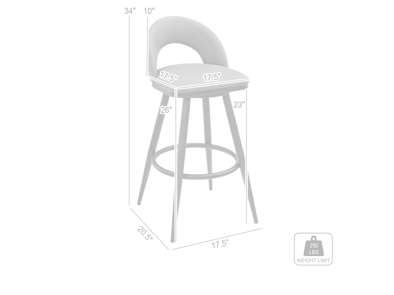 & Free ShippingEmbrace the refined style of the Latta swivel faux leather bar stool from Armen Living. This kitchen bar stool is available with a metal 4 leg base and faux leather upholstery. Faux leather does not crack easily and is stain resistant, does not fade easily and is also UV resistant. Counter or bar height stools that feature a swivel mechanism tend to be much more convenient for everyday use or when entertaining. The wonderful full 360-degree swivel function allows for maximum mobility. The smooth glide swivel function allows you to change directions with ease, making this your new favorite seat in your home. This modern bar stool has an open back that creates a breathable seat, allowing you to sit comfortably for extended periods. The Latta stylish bar stools are available in a black finish with grey, or coffee upholstery, or a brushed stainless-steel finish with black, grey, or white faux leather upholstery. The Latta comes in 26-inch counter height, or 30-inch bar height options.