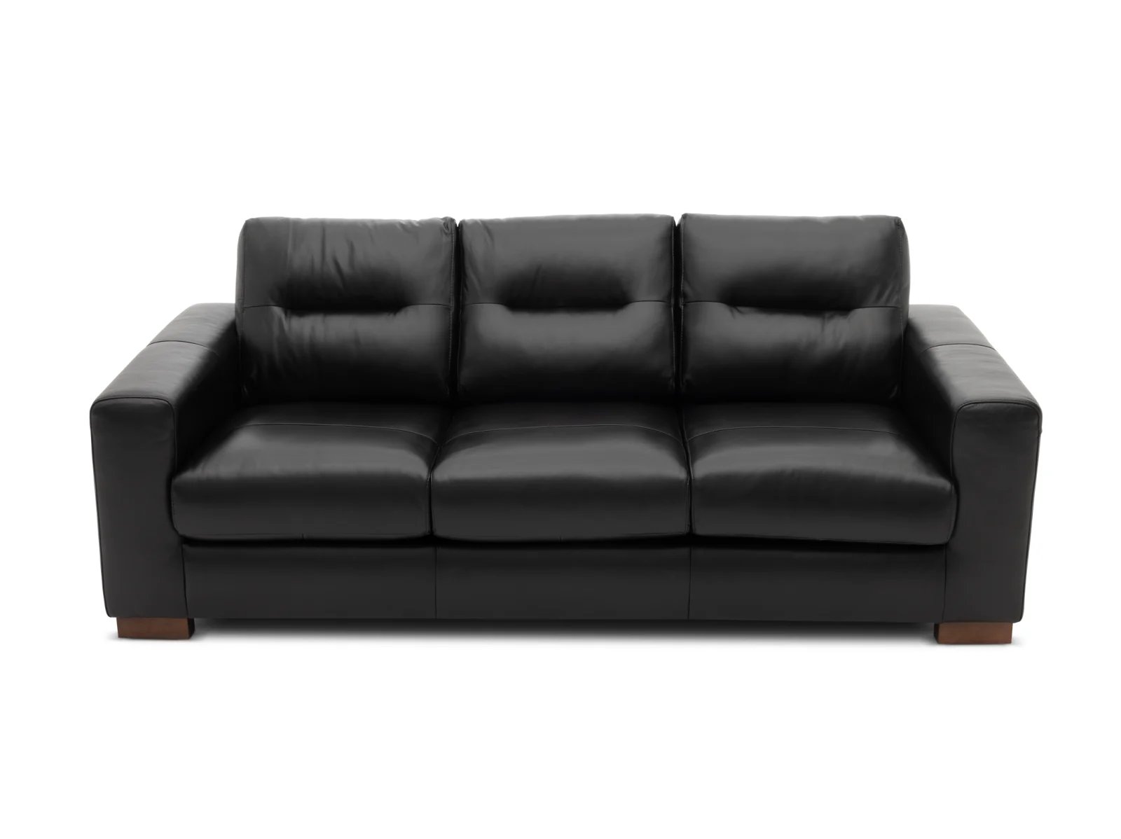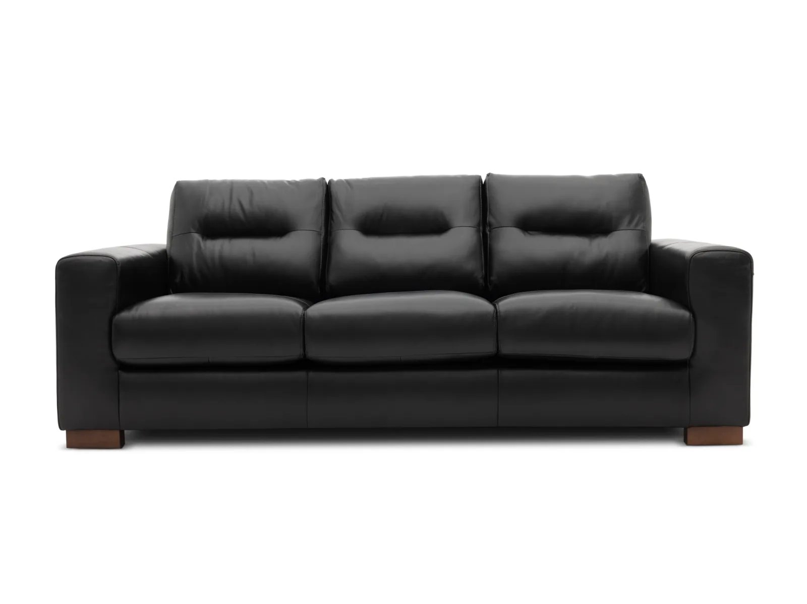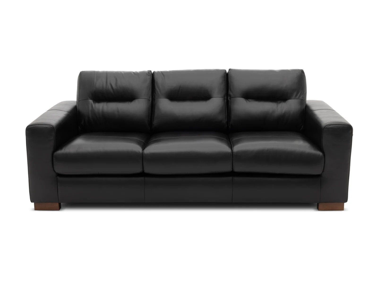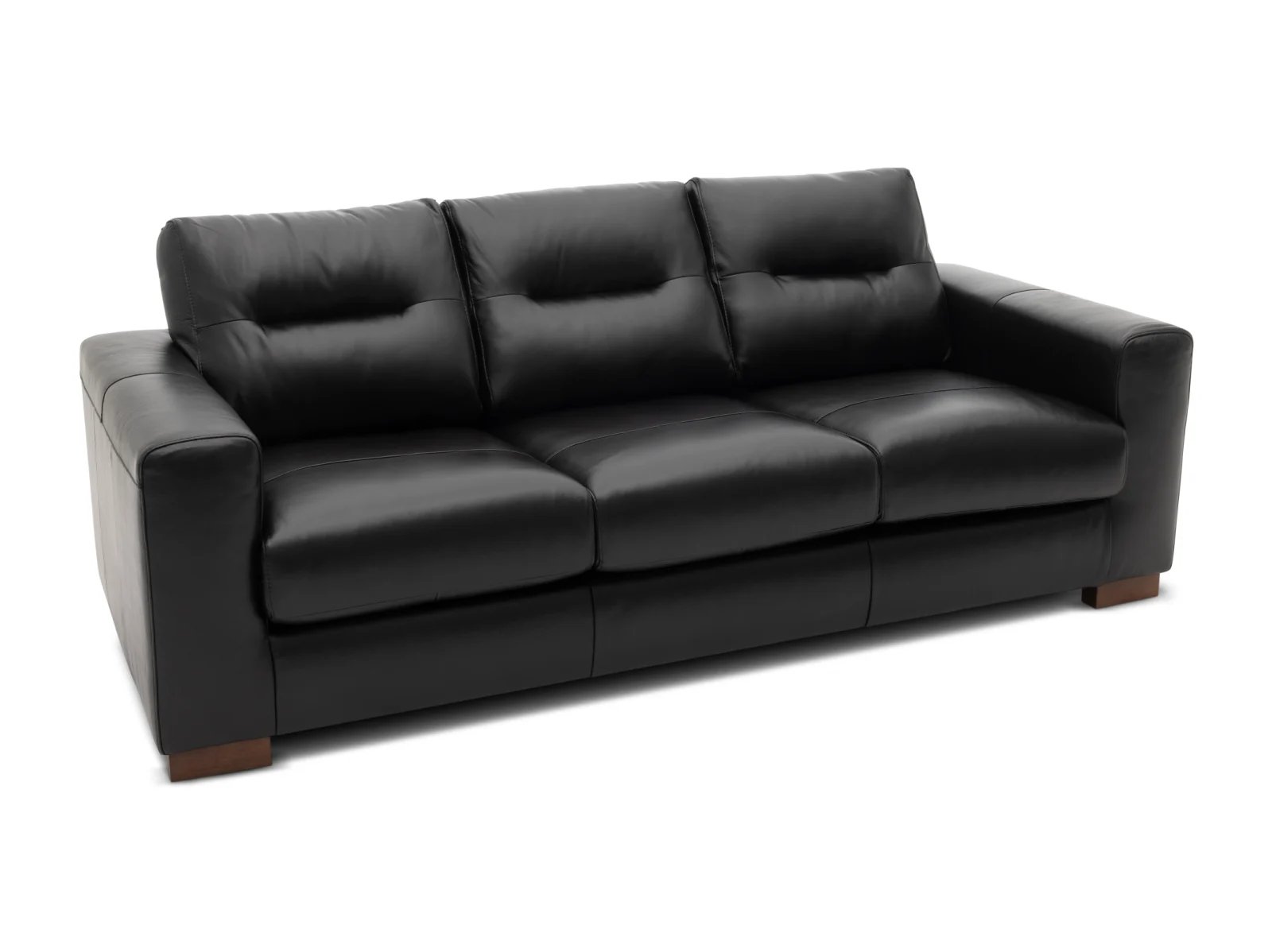 Ledger Leather Sofa The Ledger Leather Sofa offers fantastic seating space in a stylish throwback design. Its size is ideal for studios, apartments, or city living and is full of eye-catching details, from the decorative tufted back cushions to the elegant track arms. The Ledger’s supportive seats feature individually-wrapped coils, foam, and a Dacron fiber wrap for a comfortable feel and easy maintenance. Upholstered in supple Italian leather, you can make a statement with the Ledger in stylish olive green, or keep it classic in cool, sophisticated black. Level up your lounging with the Ledger Sofa today.