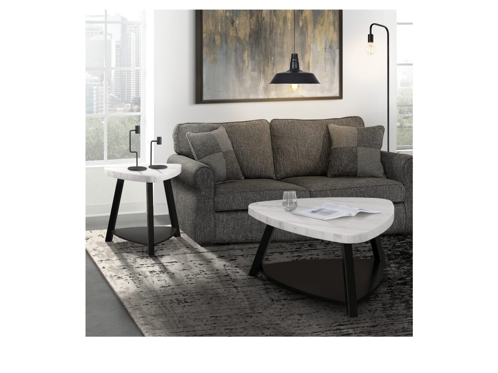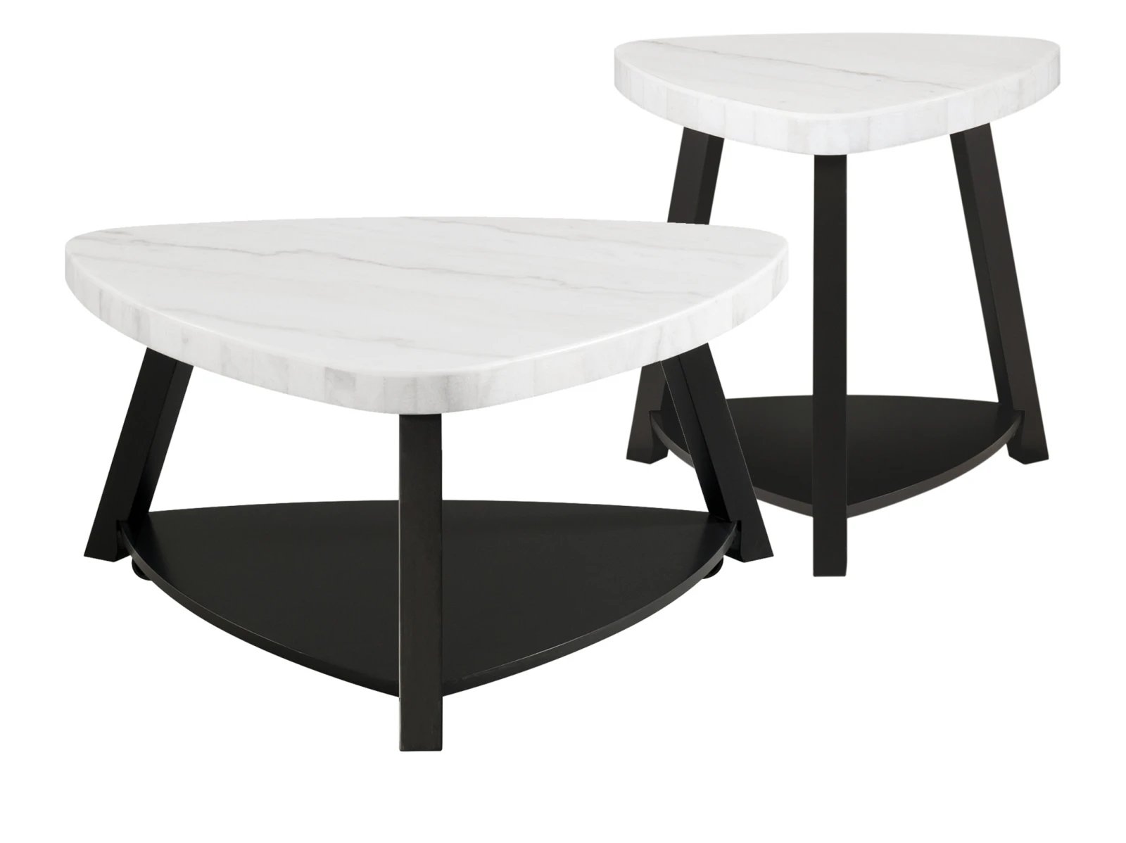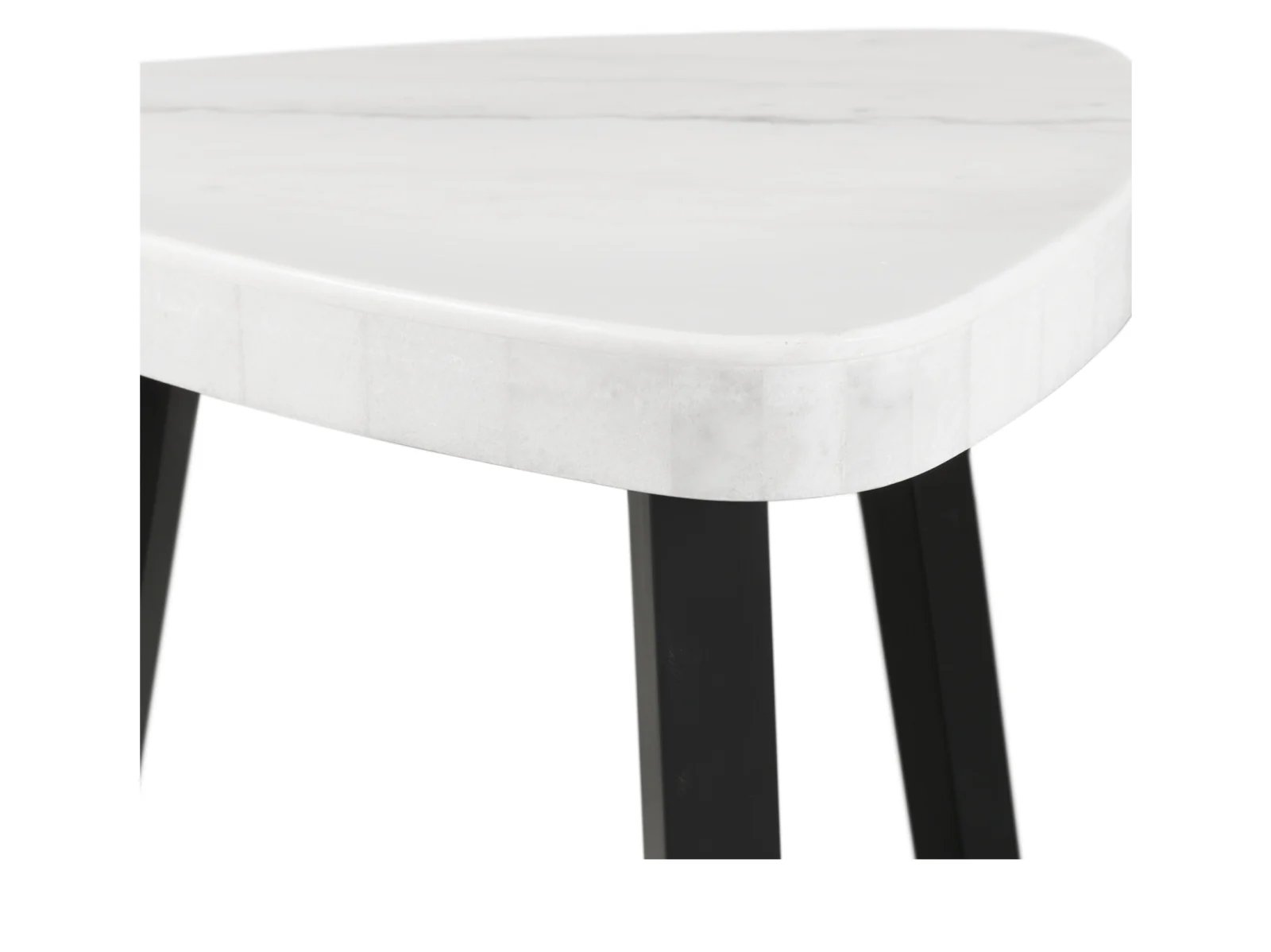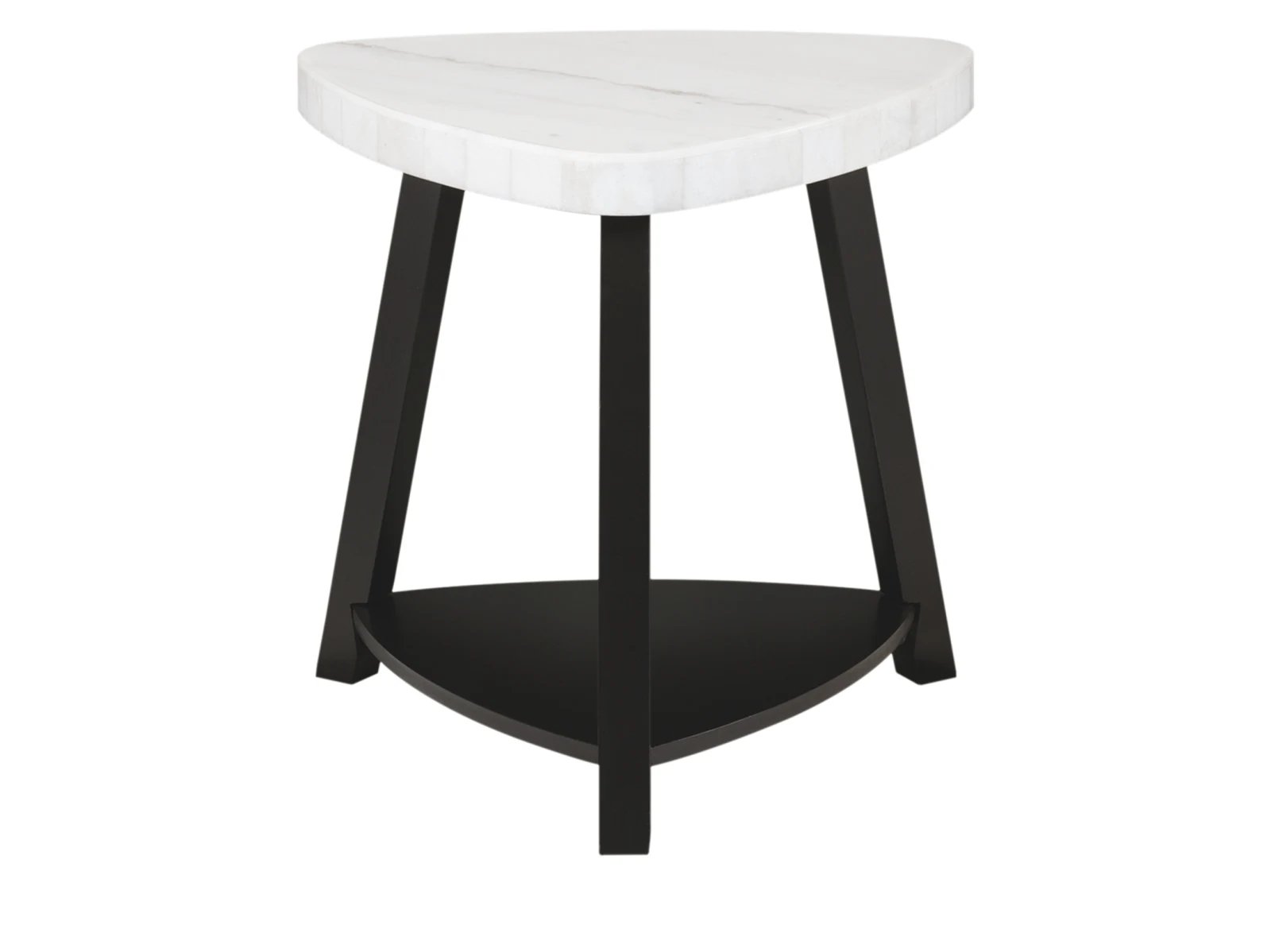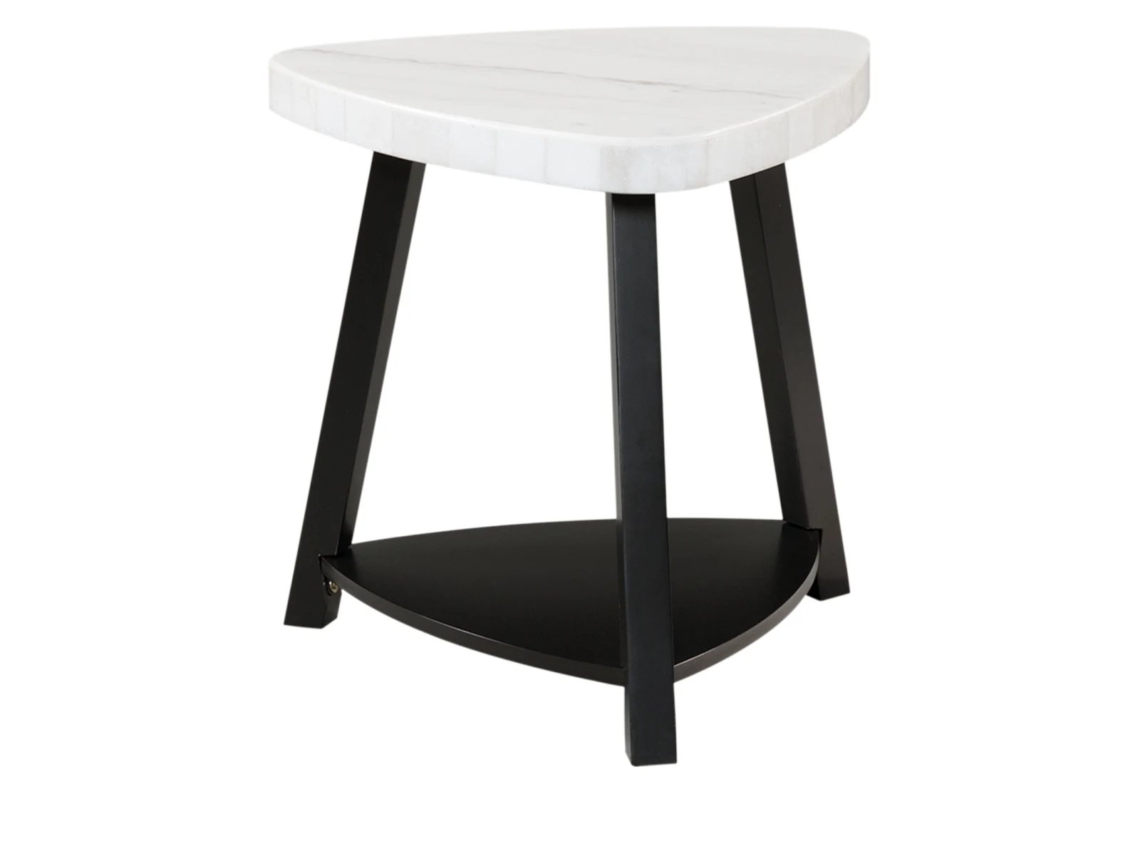 & Free ShippingThe Lena White Marble Top End Table is begging to be added to your living room! This table features a guitar-pick shaped design, making it super easy to fit any space in your home. The white marble top, contrasts perfectly with the black, wooden base. This table serves a dual purpose thanks to its bottom shelf; display your favorite décor. Add this accent table to your home today for a look that will never go out of style.