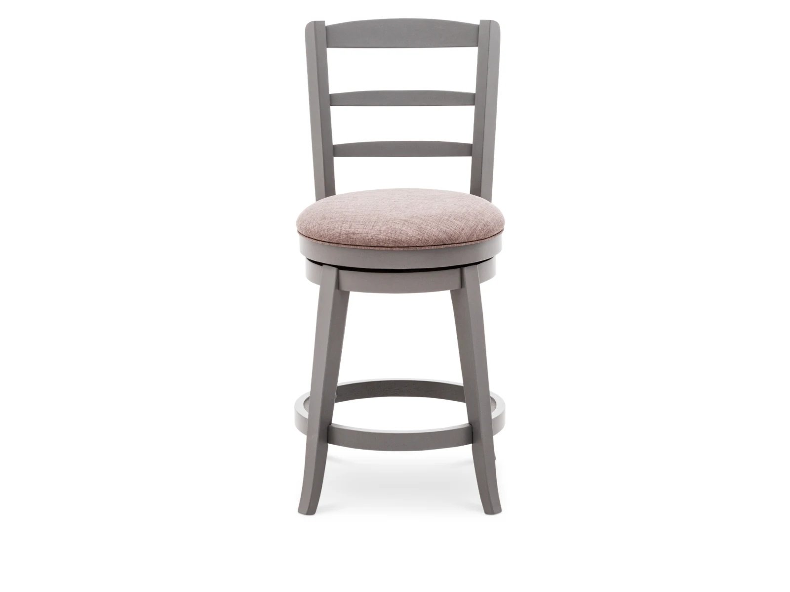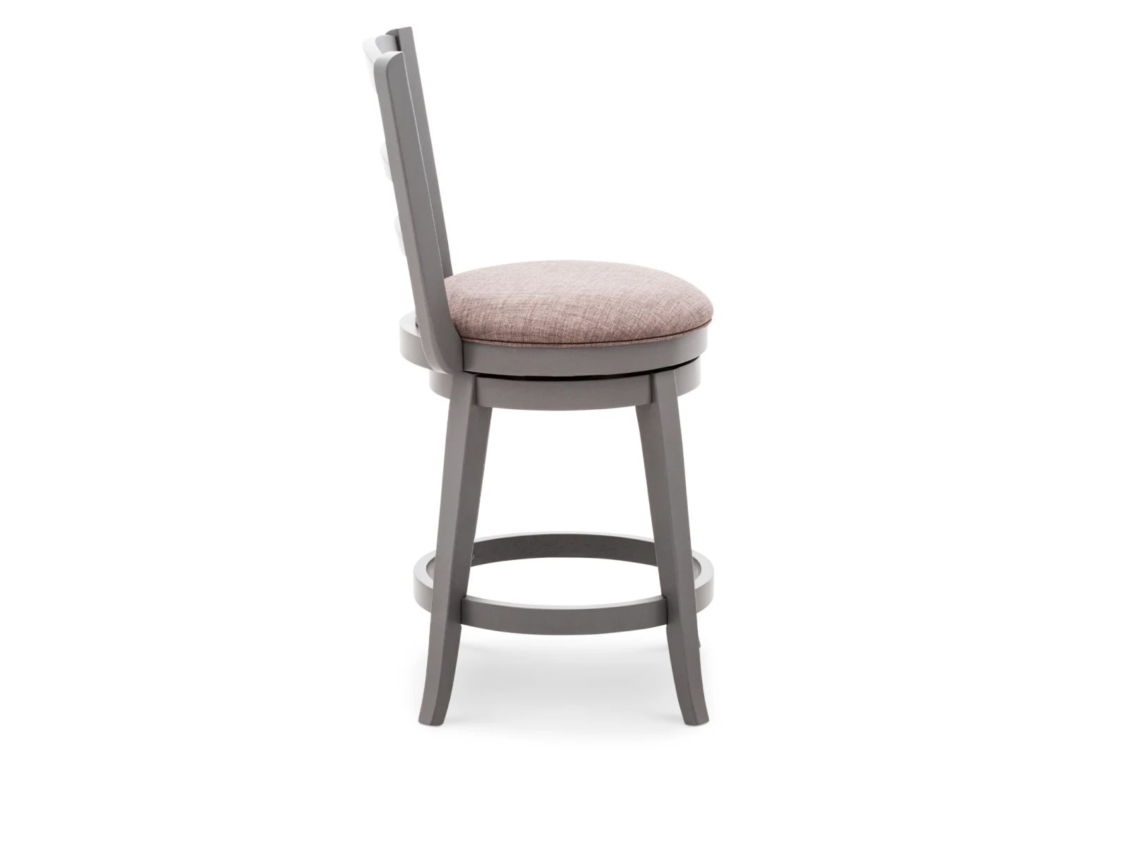Clean lines and a modern grey color are the definition of style, and the swivel Levi Bar Stool, available in two heights (24" or 30"), has plenty of it. Built to last of solid rubber wood legs and back uprights, the all–metal swivel mechanism also ensures years of durability. Finished in a grey and with a comfortable seat also upholstered in grey cloth, the low–back Levi Bar Stool will make a beautiful addition to any kitchen or bar. All legs feature plastic bottoms to protect your floors from scratches and scrapes.