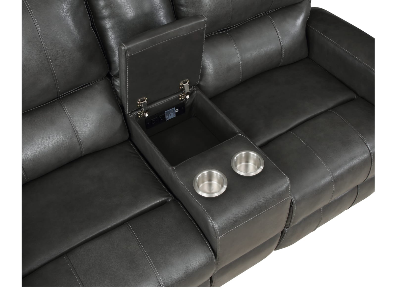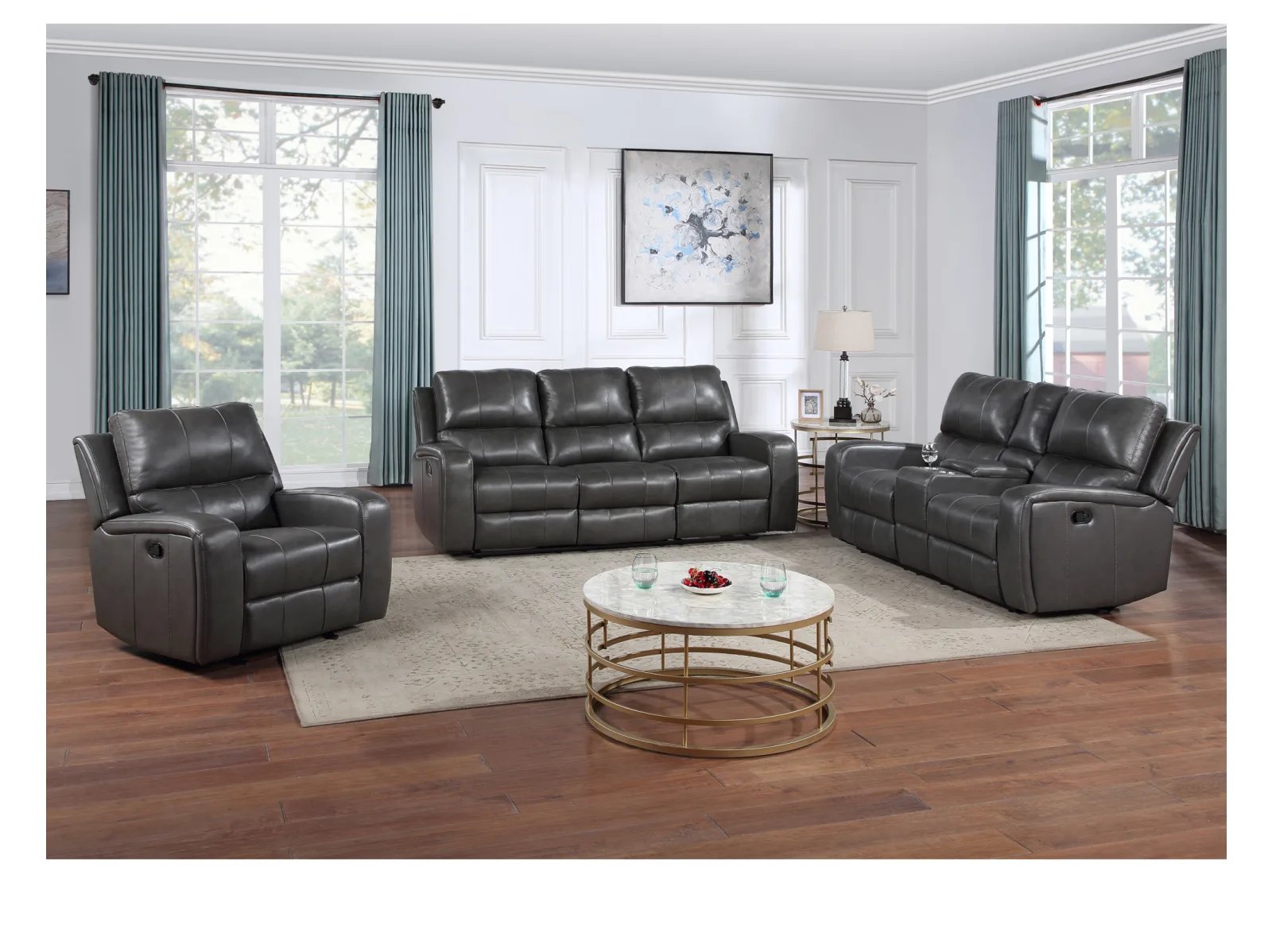 The Lorwick Leather Motion Collection brings comfort and sophistication to any living room. With a focus on relaxation, this collection includes a sofa with dual recliners, a console loveseat with dual recliners, and a glider recliner. Featuring a coil cushion and a hardwood/plywood frame, these pieces are built to last. The full leather front, match back and sides give these pieces a luxurious feel. The console loveseat comes equipped with a USB port and a storage box, providing even more convenience and organization. Overall, the Lorwick Leather Motion Collection is a comfortable and stylish choice for any home. Its sophisticated design and high-quality materials make it a perfect choice for anyone looking to add a touch of luxury to their living room.