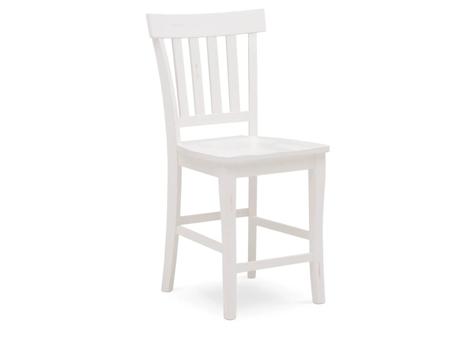 A posh white finish over reclaimed pine highlights one of the most on-trend pieces, the Madaket Bar Stool. A beefy silhouette, solid construction, and a rustic finish paint a beautiful picture in any home. With a contoured seat, slat-back design, multi-tiered stretchers, and a footrest, this dining seat boasts farmhouse-styled function and countryside charm. You will love this chair in your home.