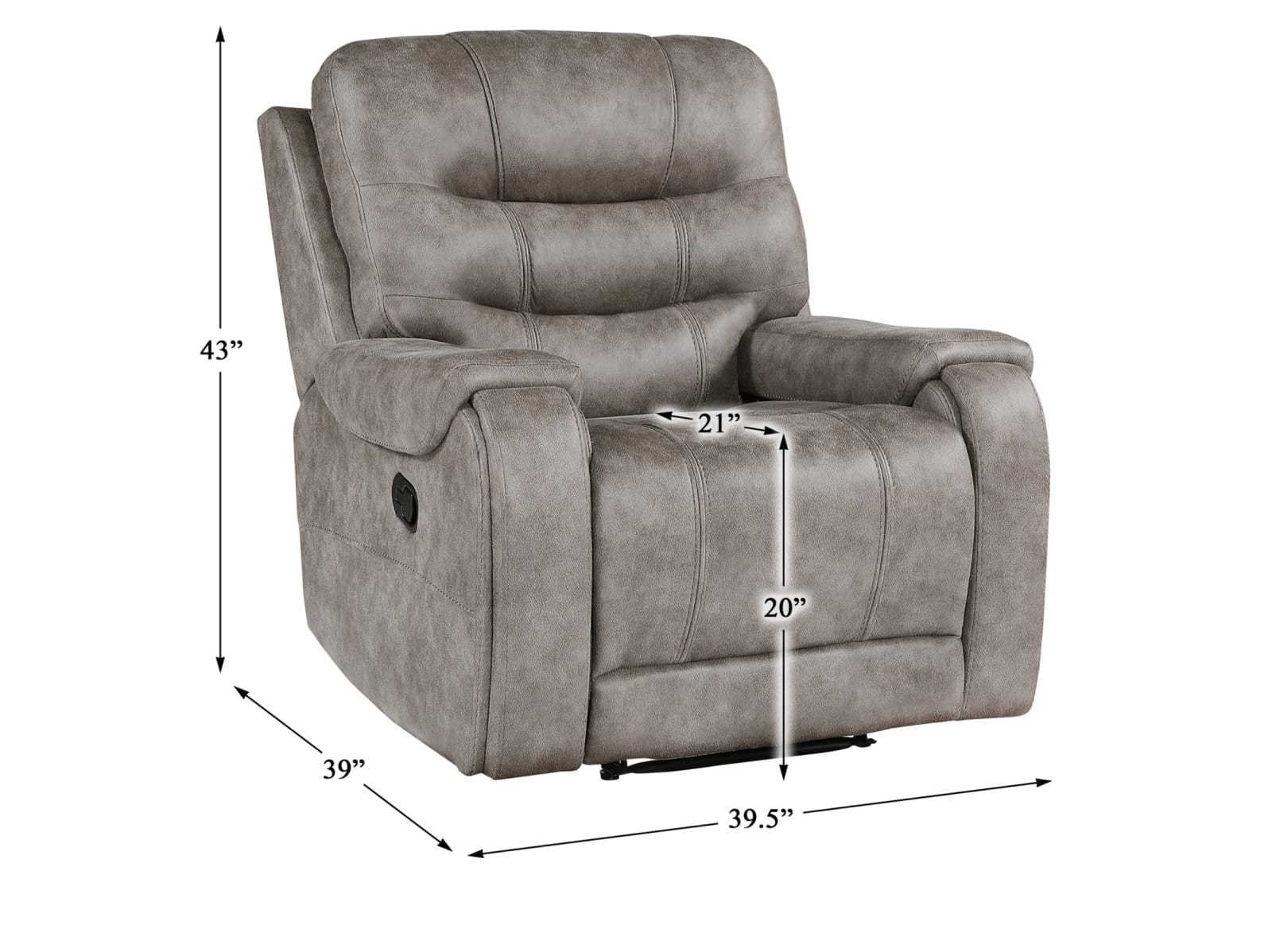 You’ll look forward to alone time in the Madyson Recliner. Its high-density seat and back cushions are enveloped in soft taupe polished microfiber for a luxuriously inviting feel. The subtly sloped track arms and low-profile back create a sleek, contemporary silhouette, and the easy-to-use side-tab recline mechanism lets you shift from upright to fully reclined in seconds. A sturdy hardwood frame and sinuous spring base deliver dependable support, making this chair perfect for reading nooks, home offices, or cozy corners.