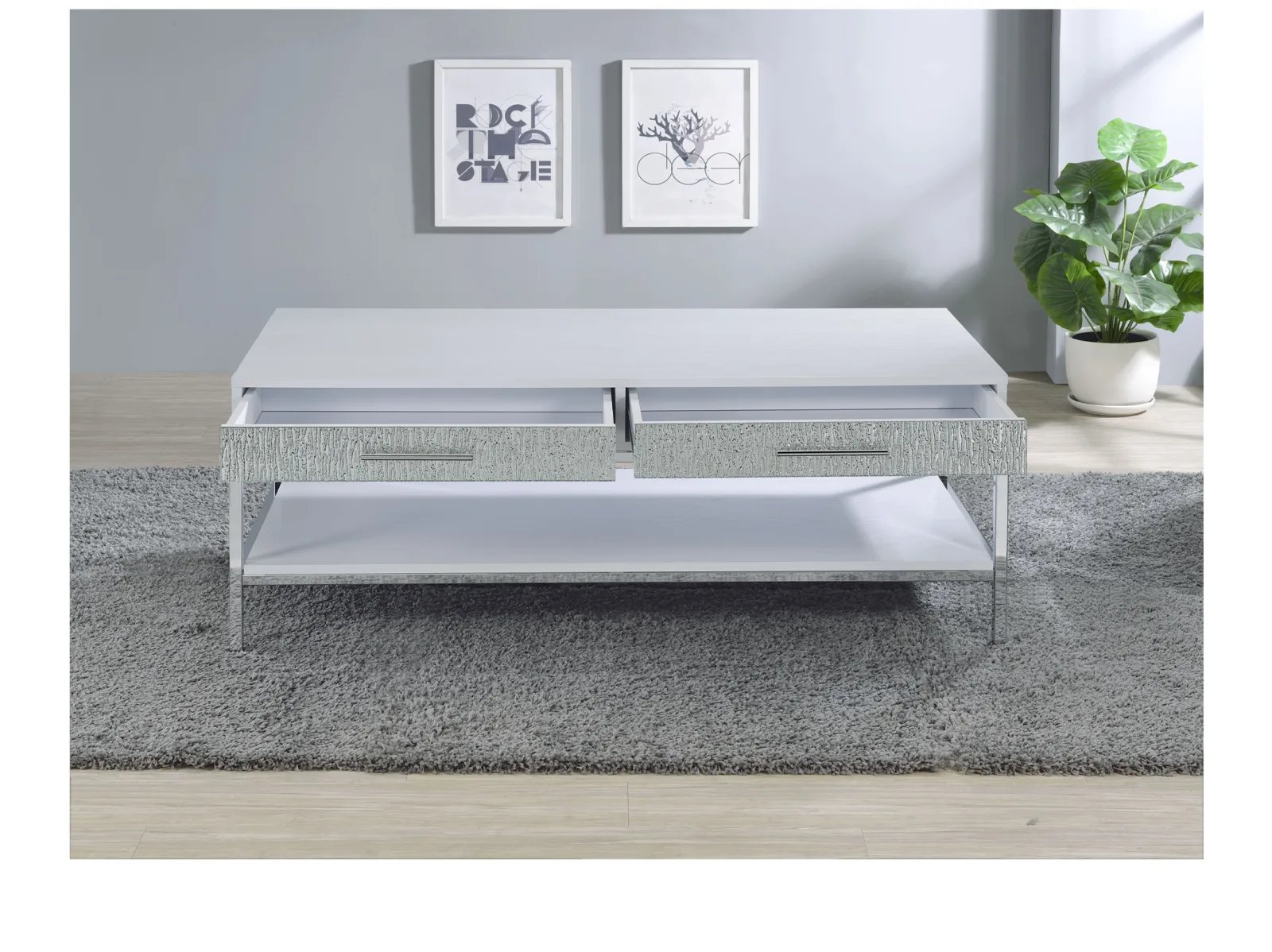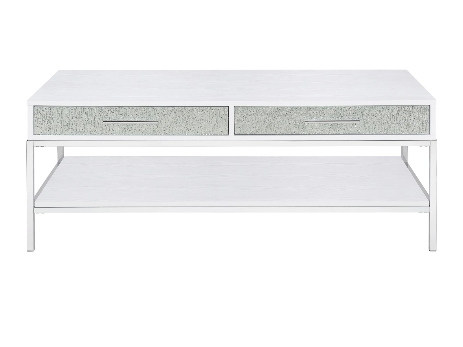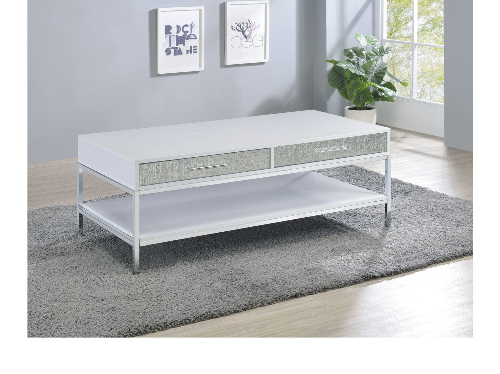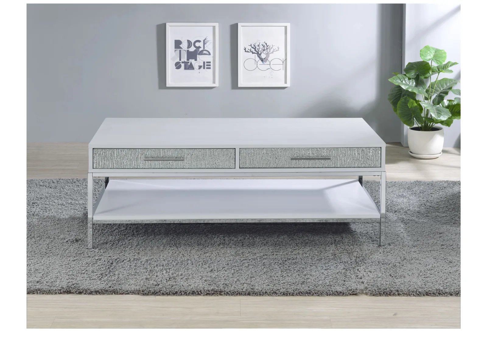 & Free ShippingContemporary glam styling in a beautiful centerpiece to a living room. Maisie combines a white finish with mirrored drawer fronts and chrome legs in a dazzling table that will sparkle with the available light. Function is also important and the Maisie Coffee Table has two drawers and a bottom shelf to help keep everything organized.