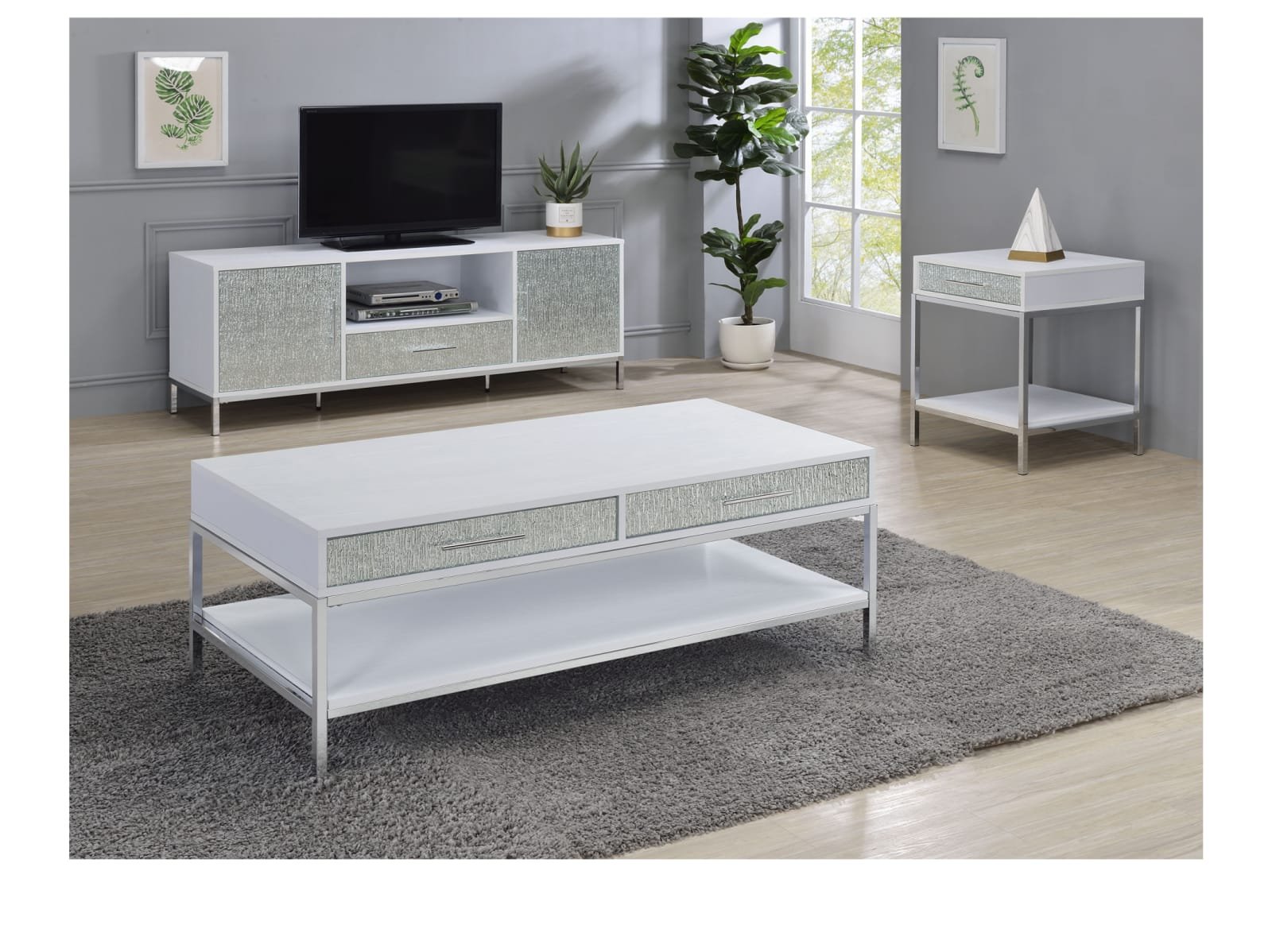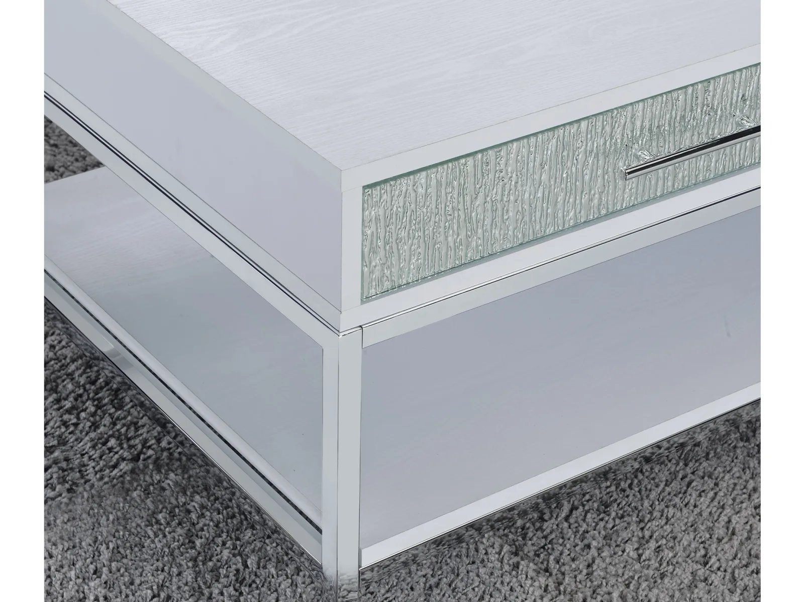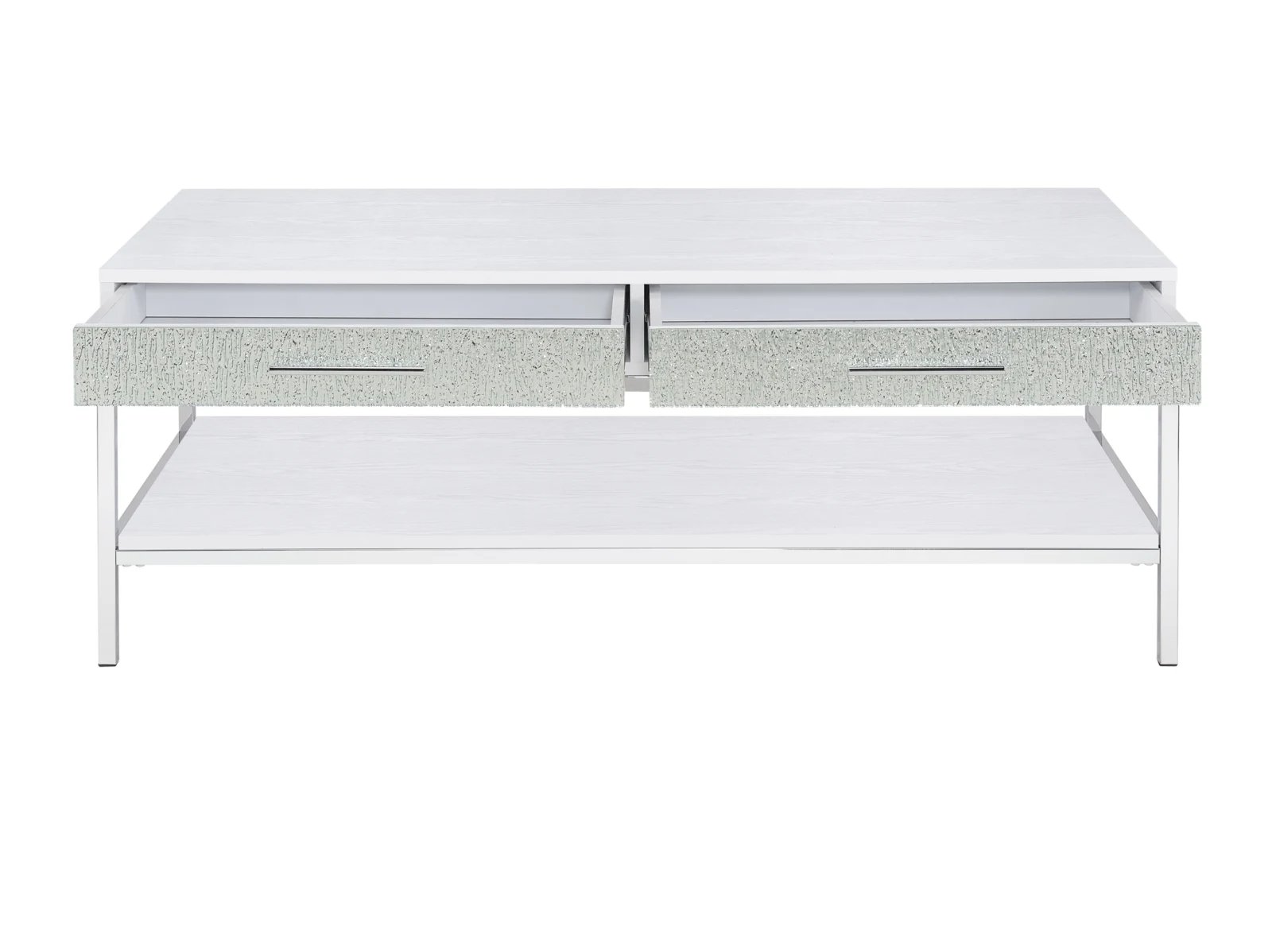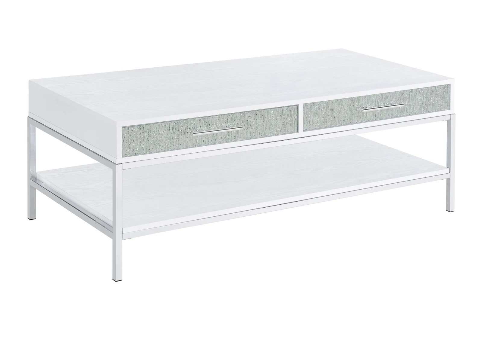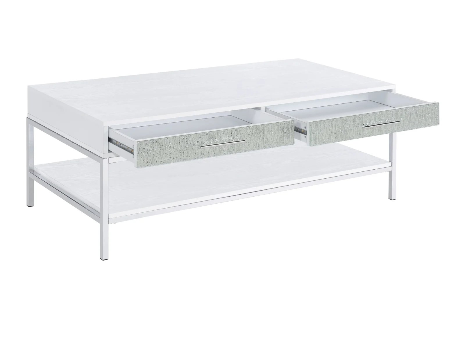 & Free ShippingContemporary glam styling in a beautiful centerpiece to a living room. Maisie combines a white finish with mirrored drawer fronts and chrome legs in a dazzling table that will sparkle with the available light. Function is also important and the Maisie Coffee Table has two drawers and a bottom shelf to help keep everything organized.